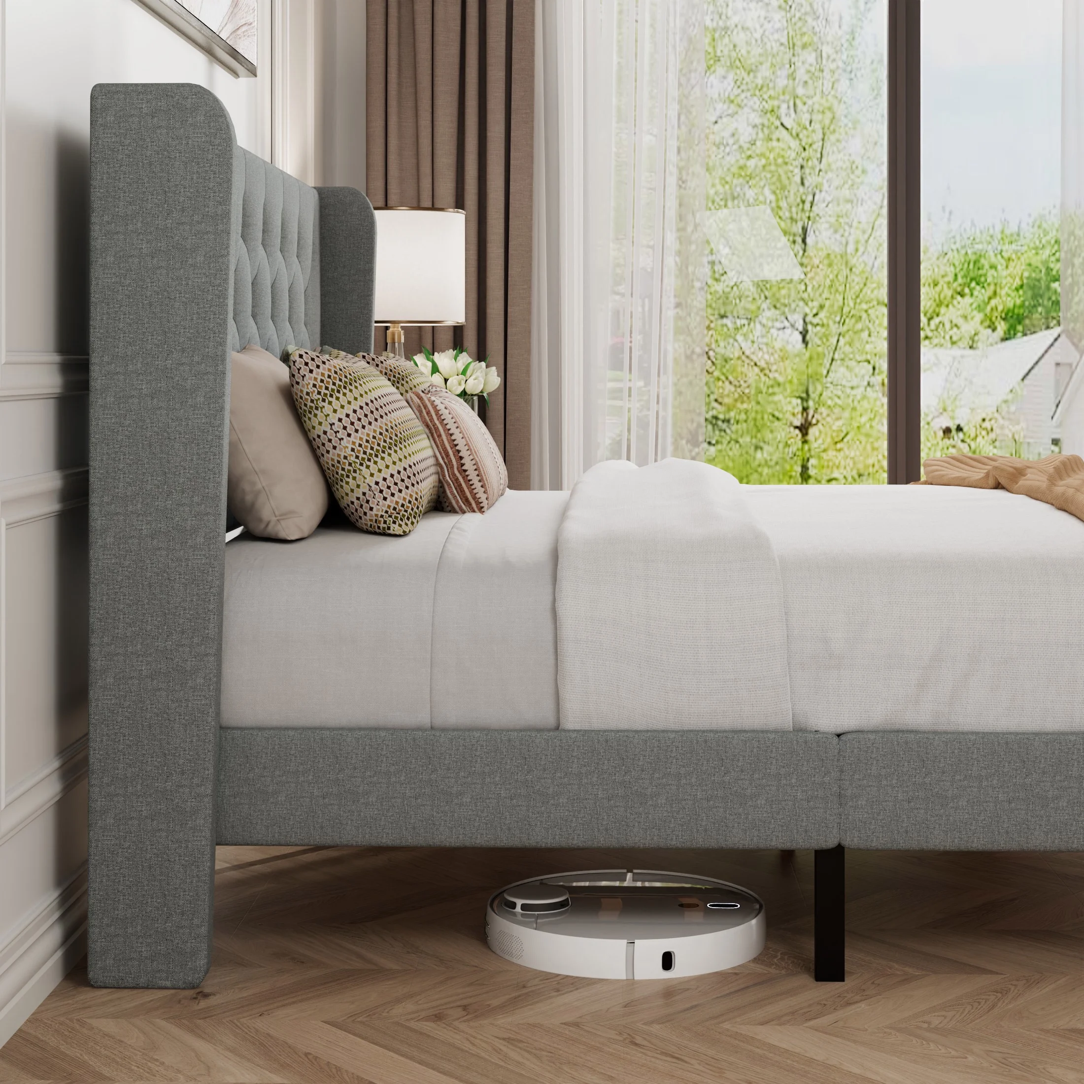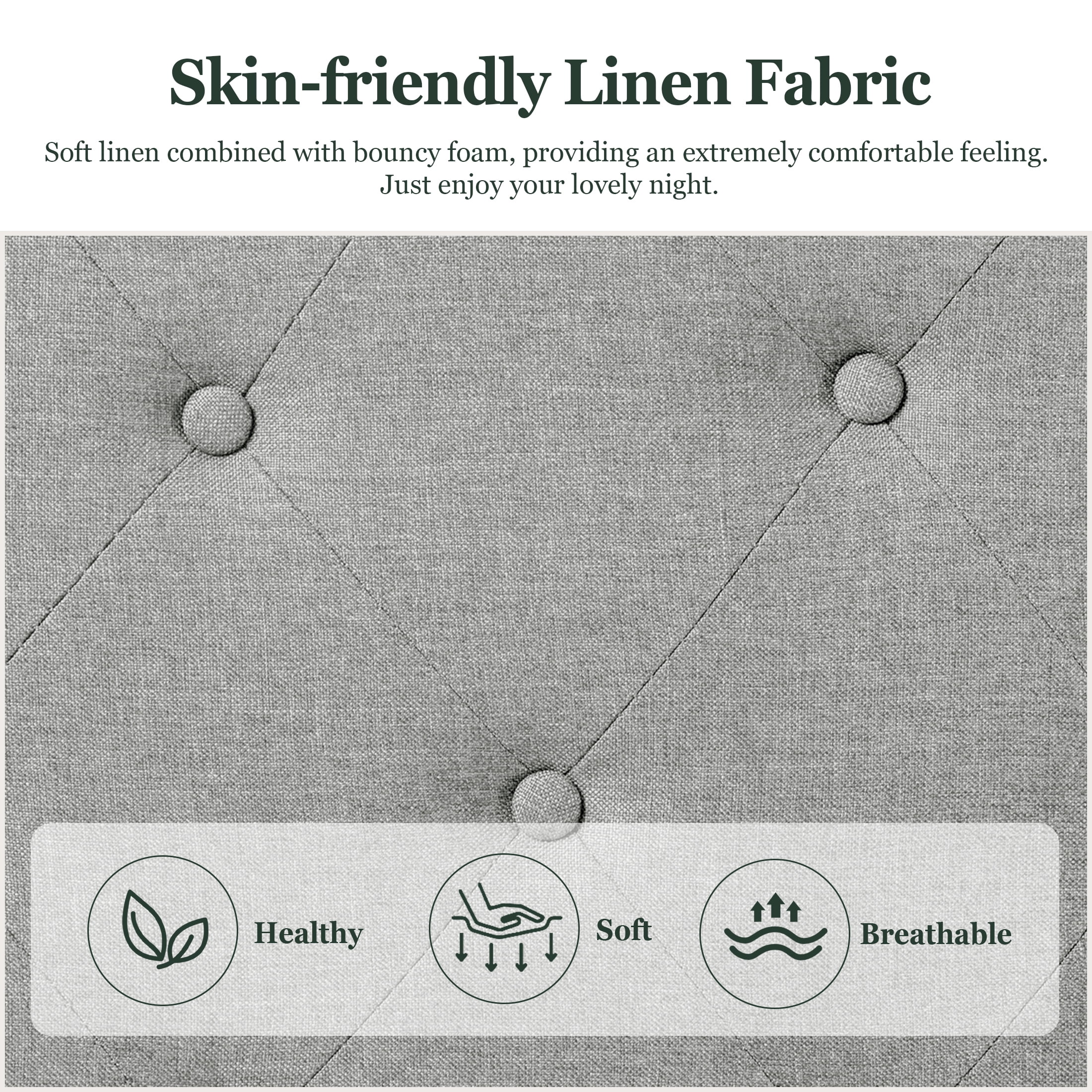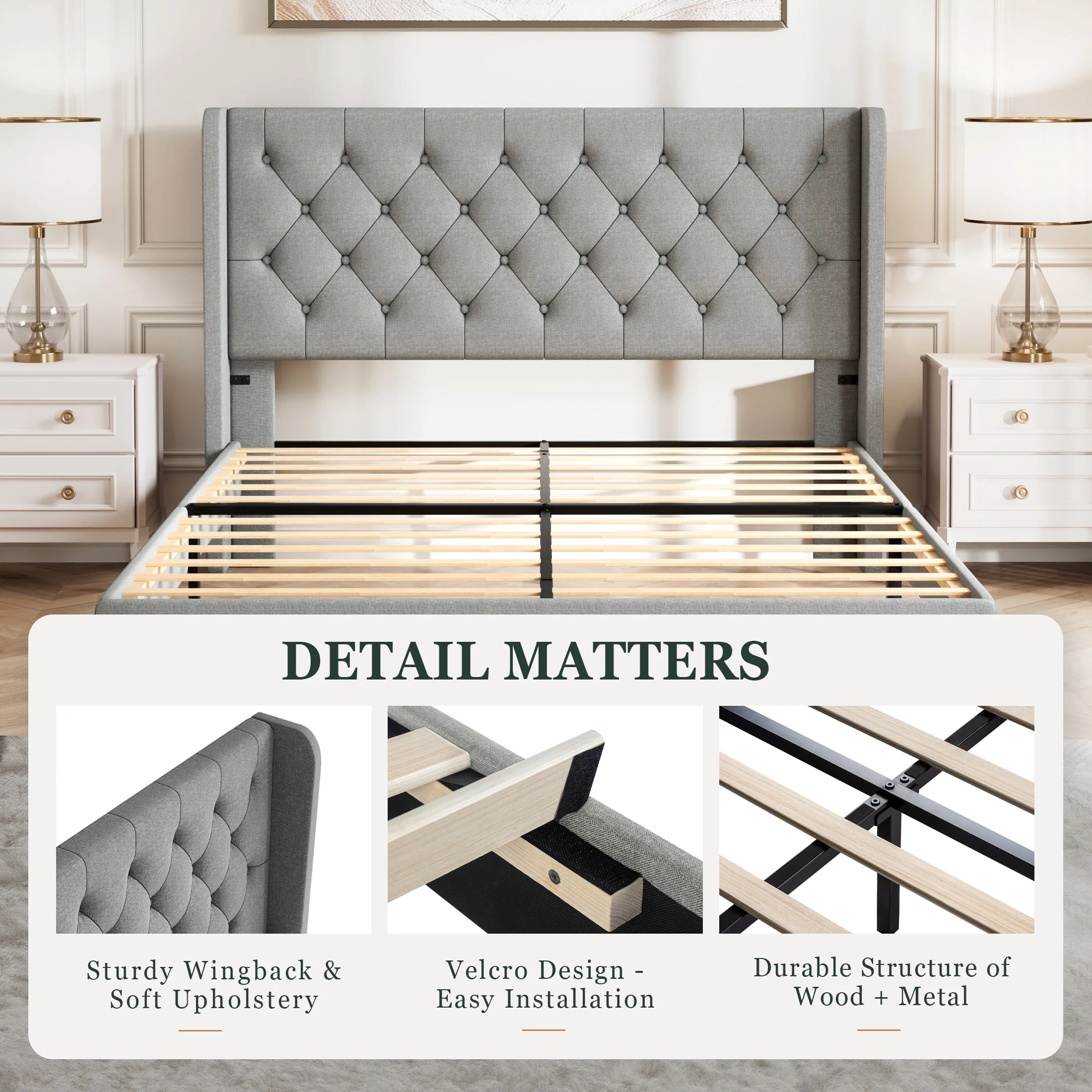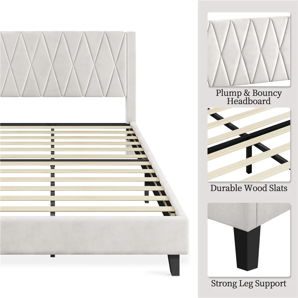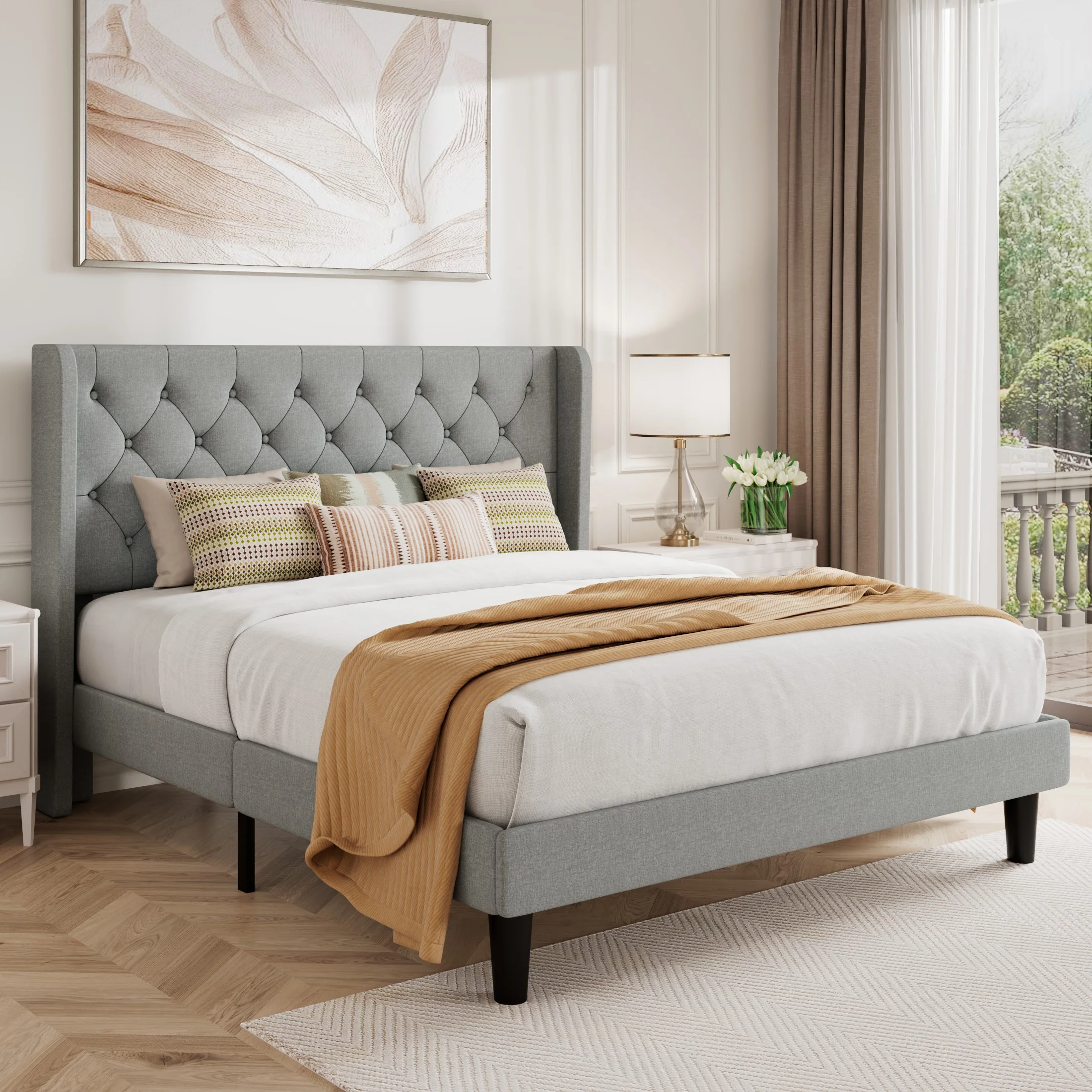 Amolife Full Size Fabric Diamond Upholstered Platform Bed Frame with Deluxe Wingback, Light Grey