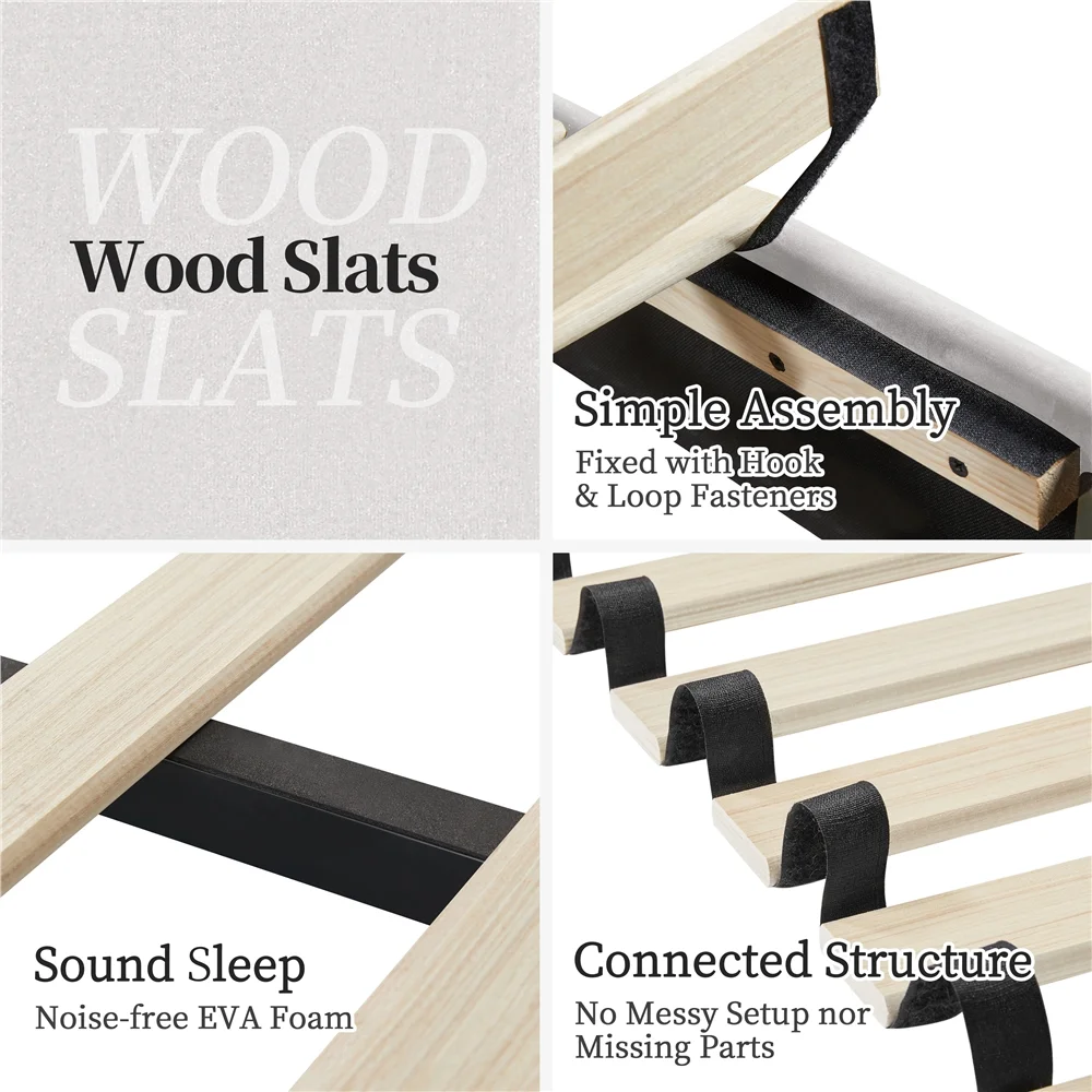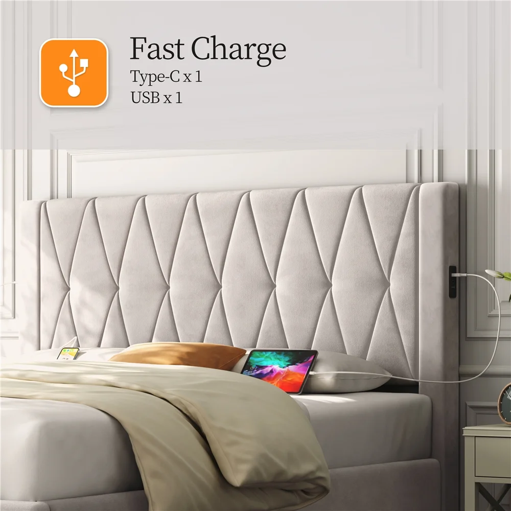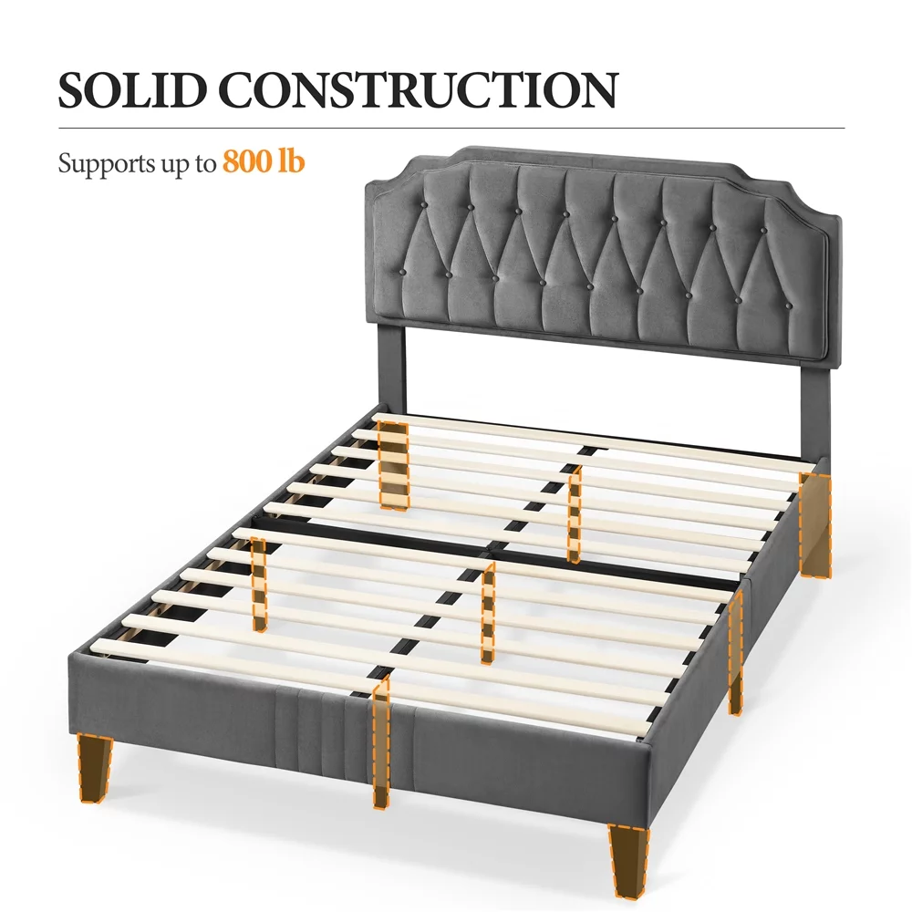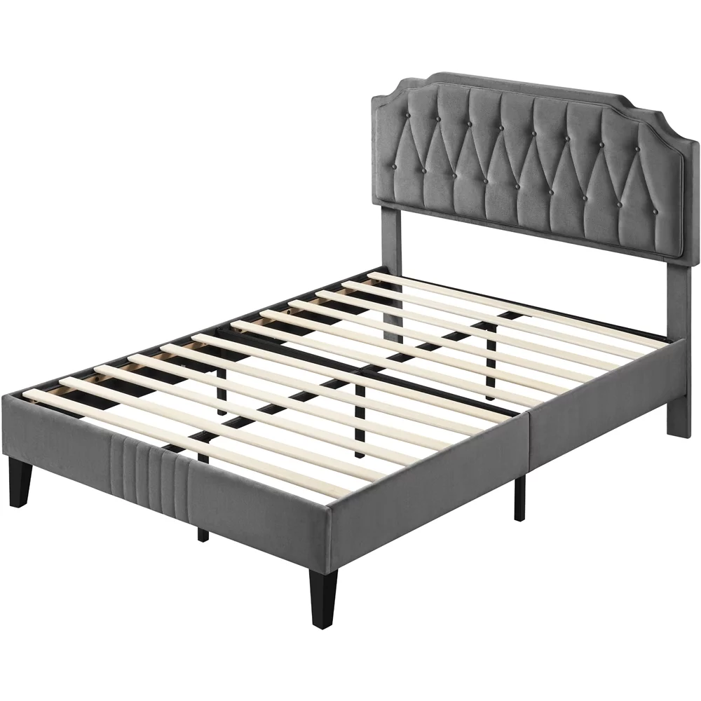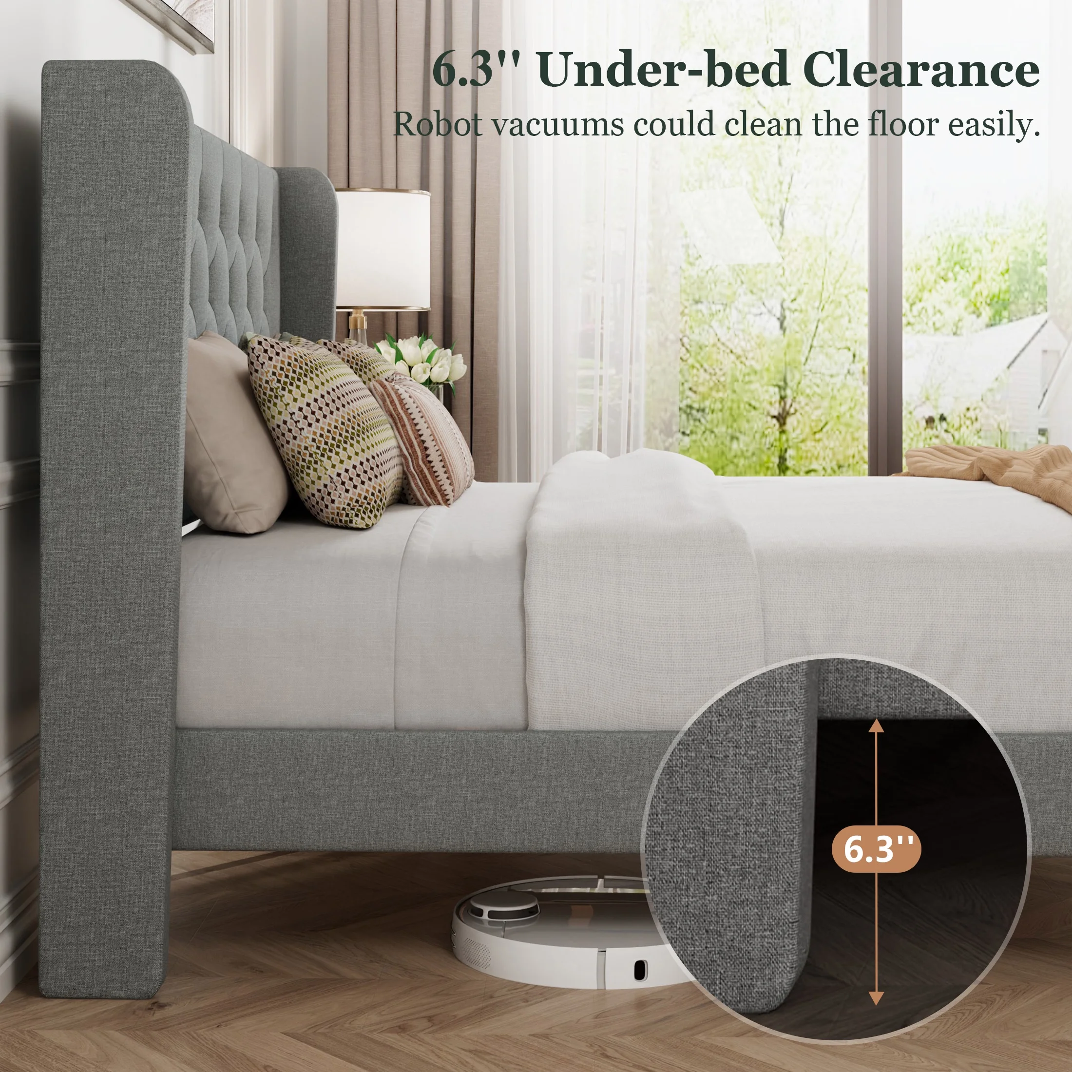 Amolife Full Size Fabric Diamond Upholstered Platform Bed Frame with Deluxe Wingback, Light Grey