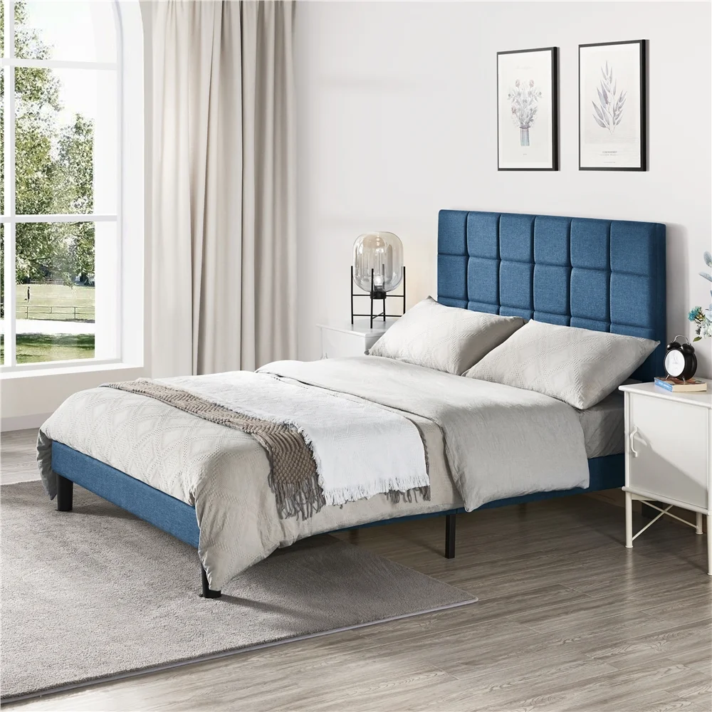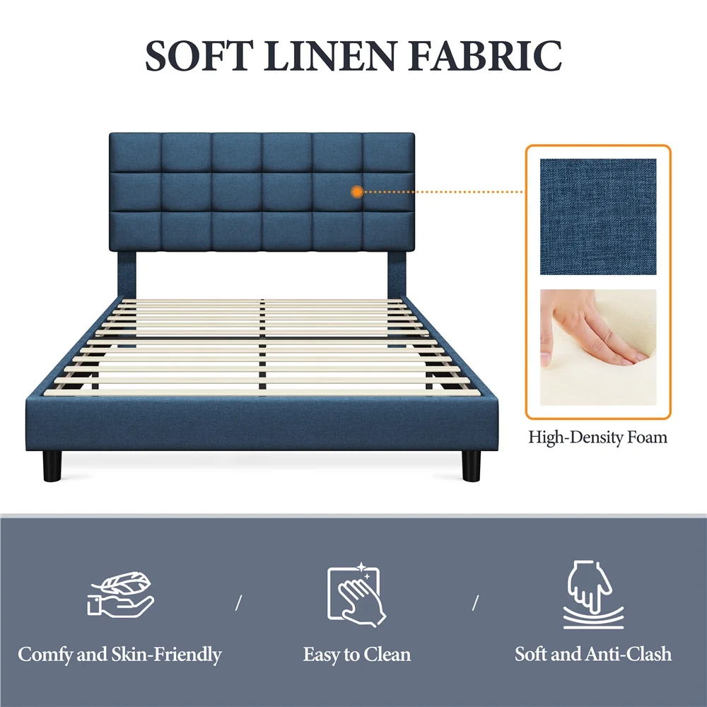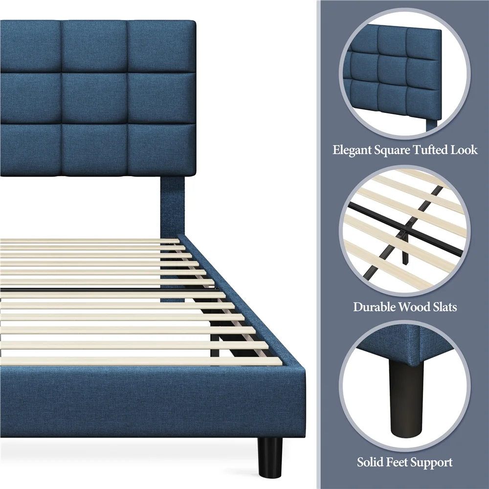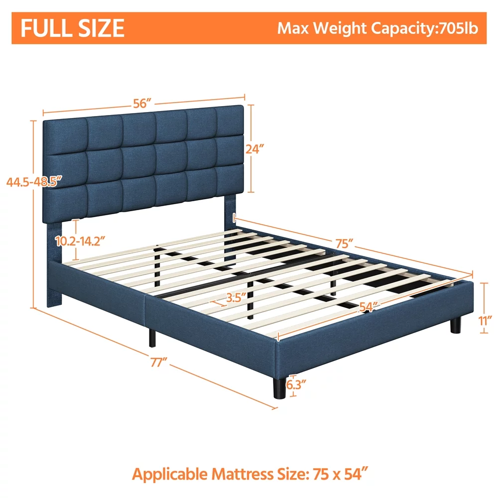 Yaheetech Modern Upholstered Platform Bed with Adjustable Tufted Headboard, Full Size, Navy Blue