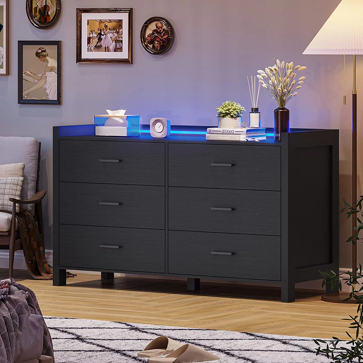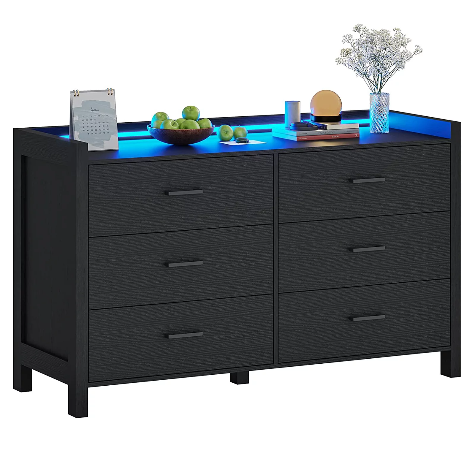 Afuhokles 5 Drawers Dresser with LED Light, Tall Wood Dresser for Bedroom, Large Capacity Storage Cabinet, Black