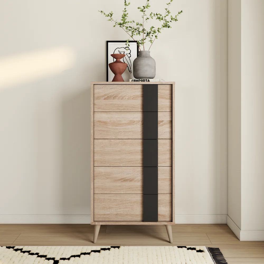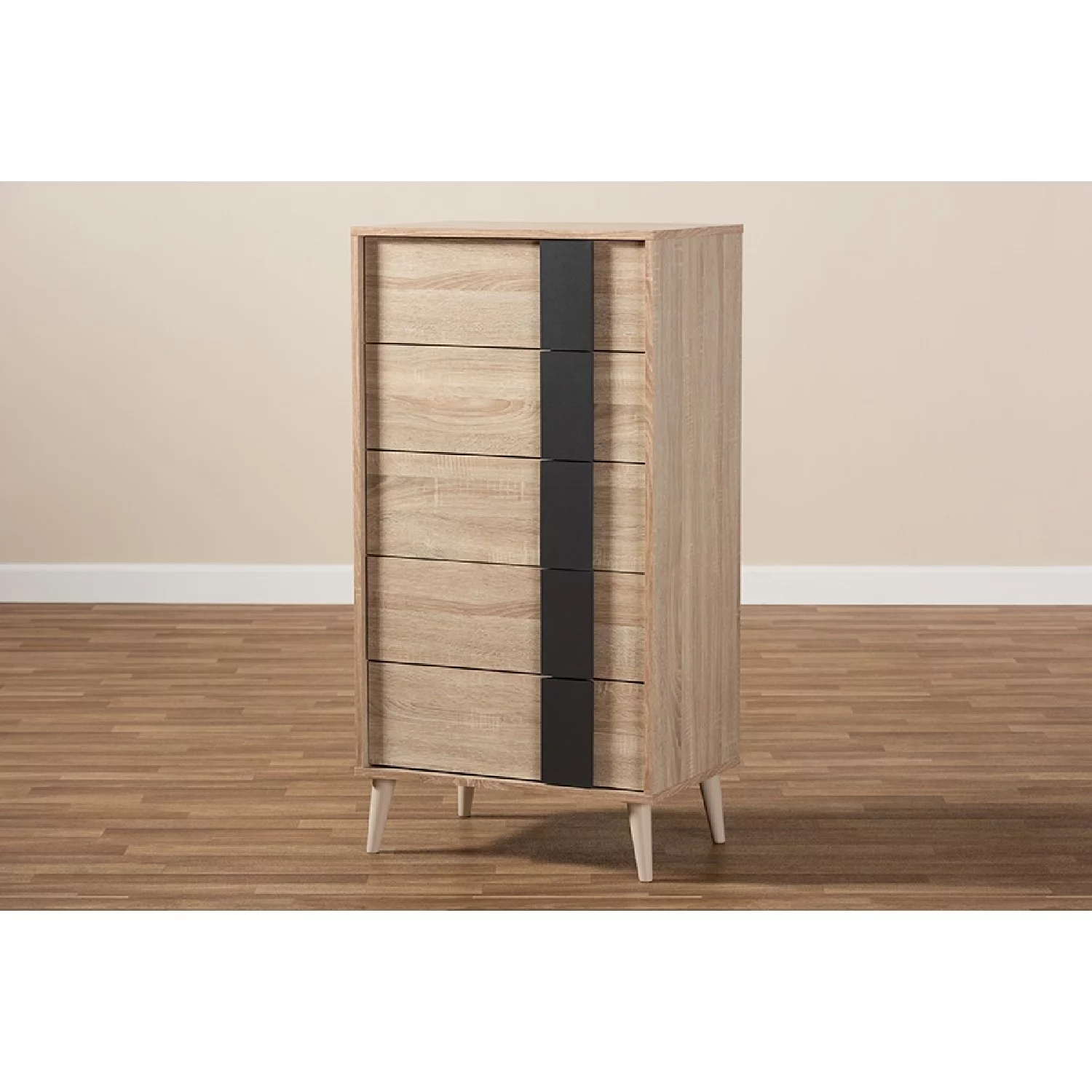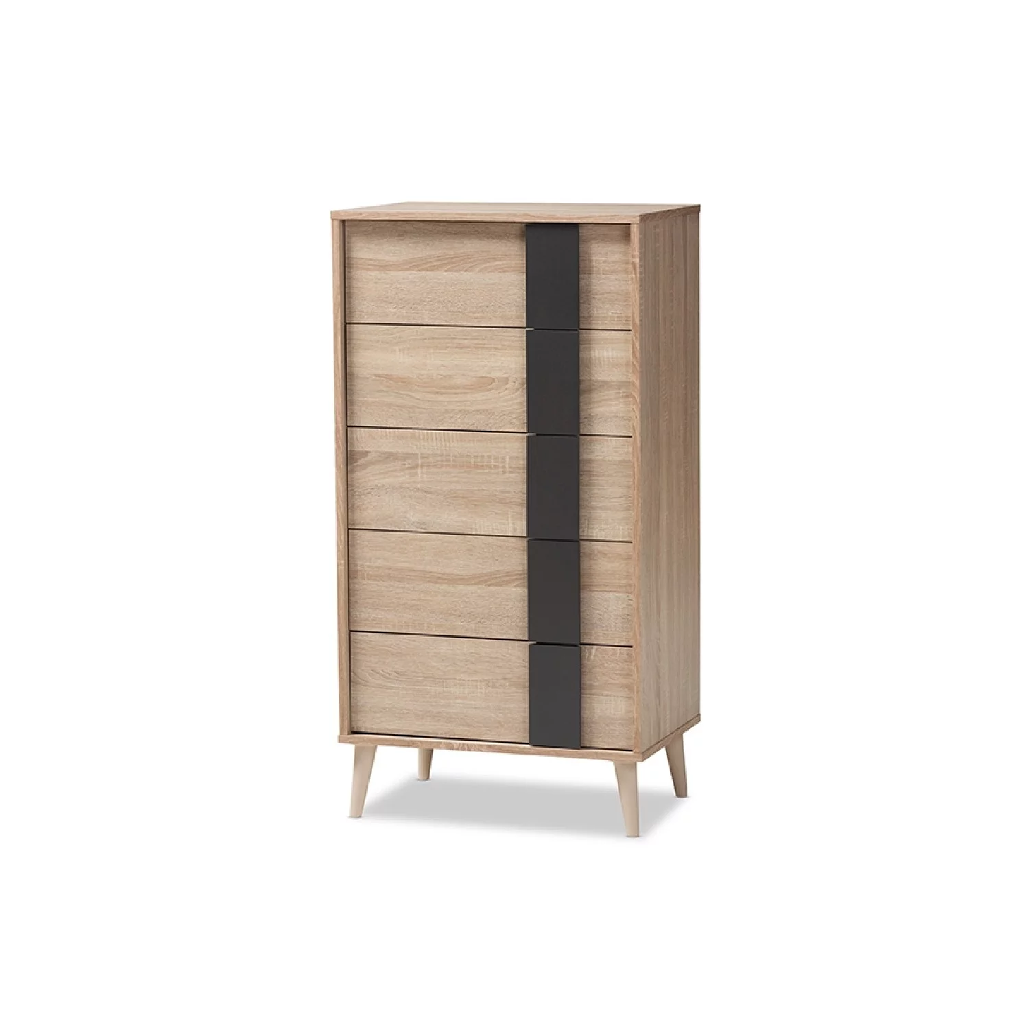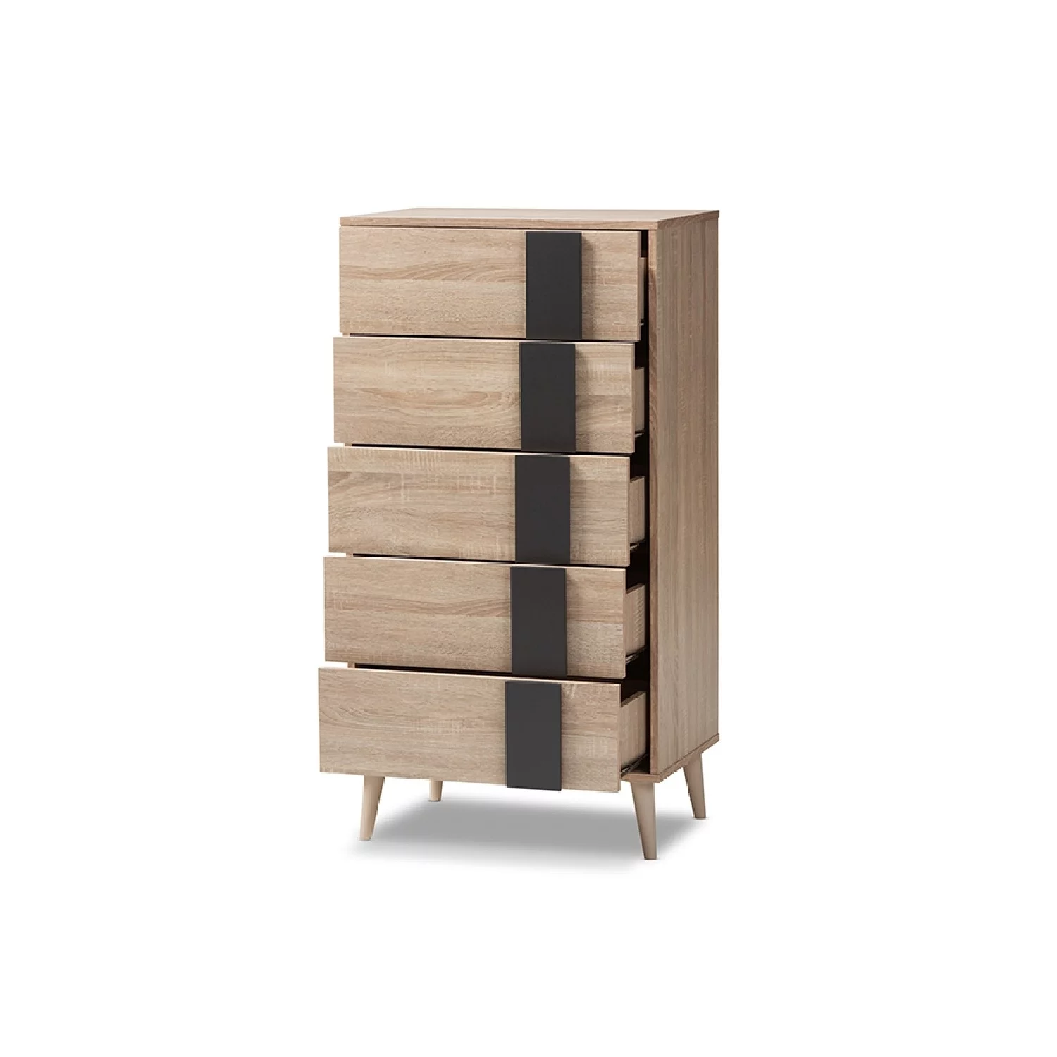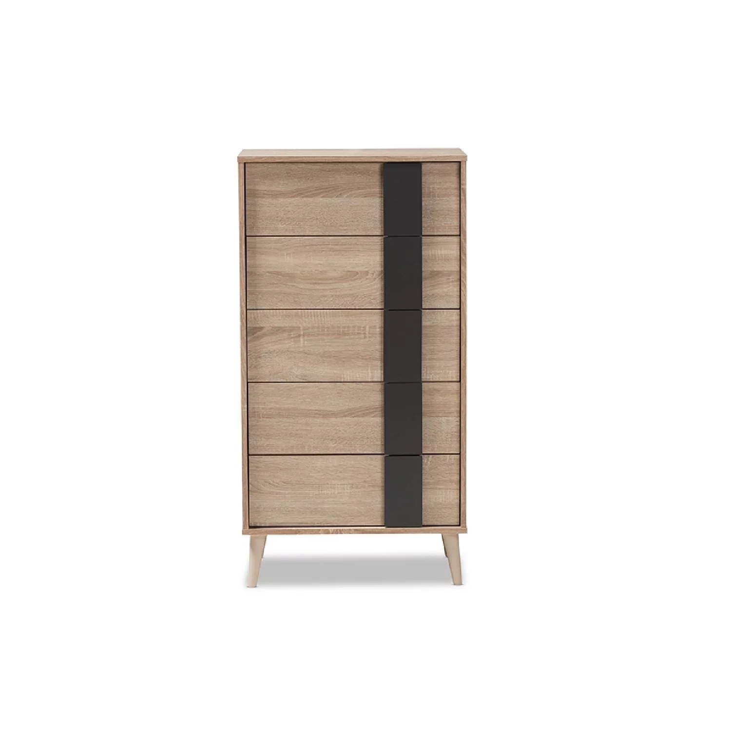 Baxton Studio Lisen Mid-Century Modern Light Oak and Grey 5-Drawer Chest