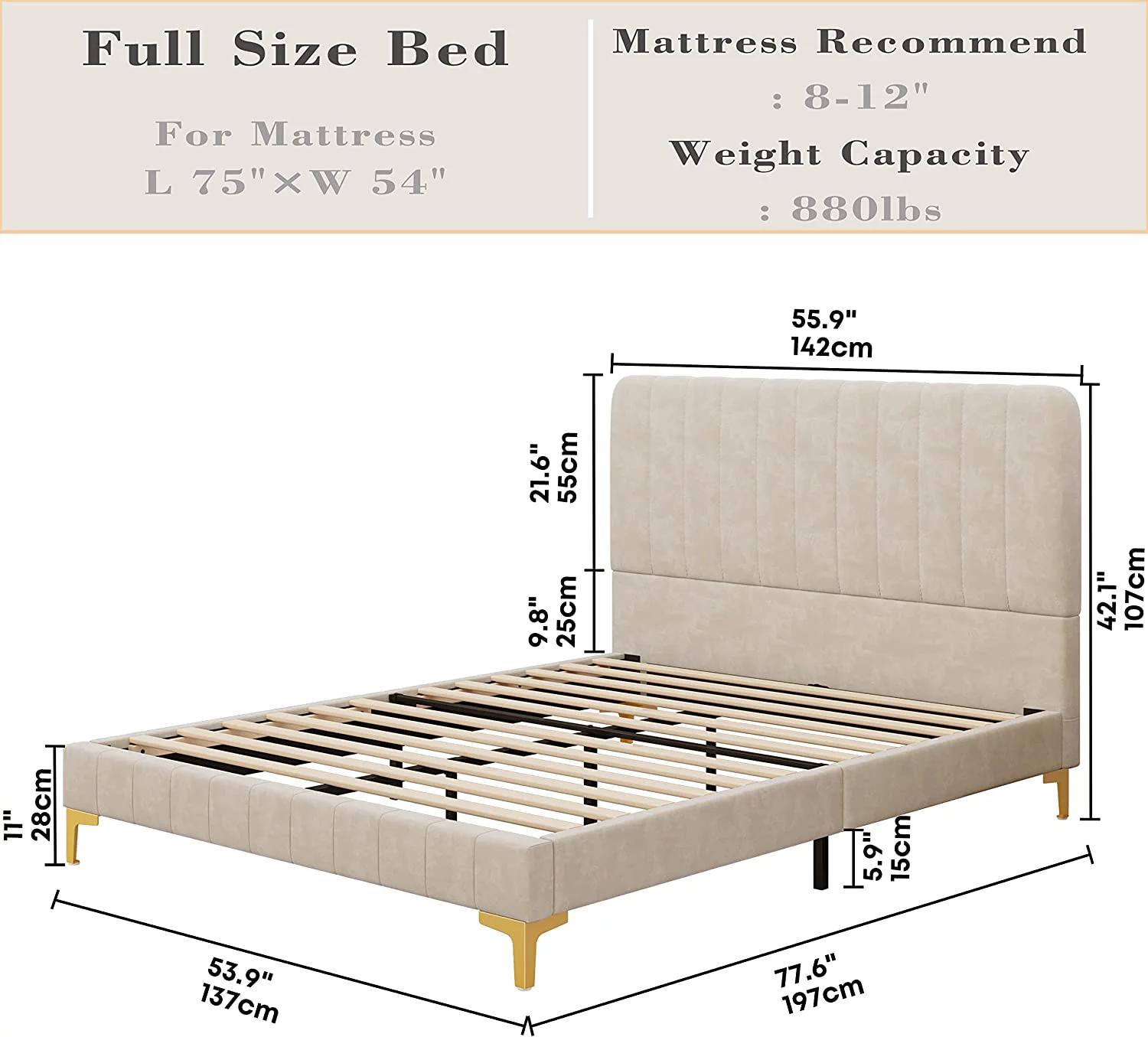 Yoneston Platform Metal Bed Foundation Headboard Furniture Bedroom Full Size