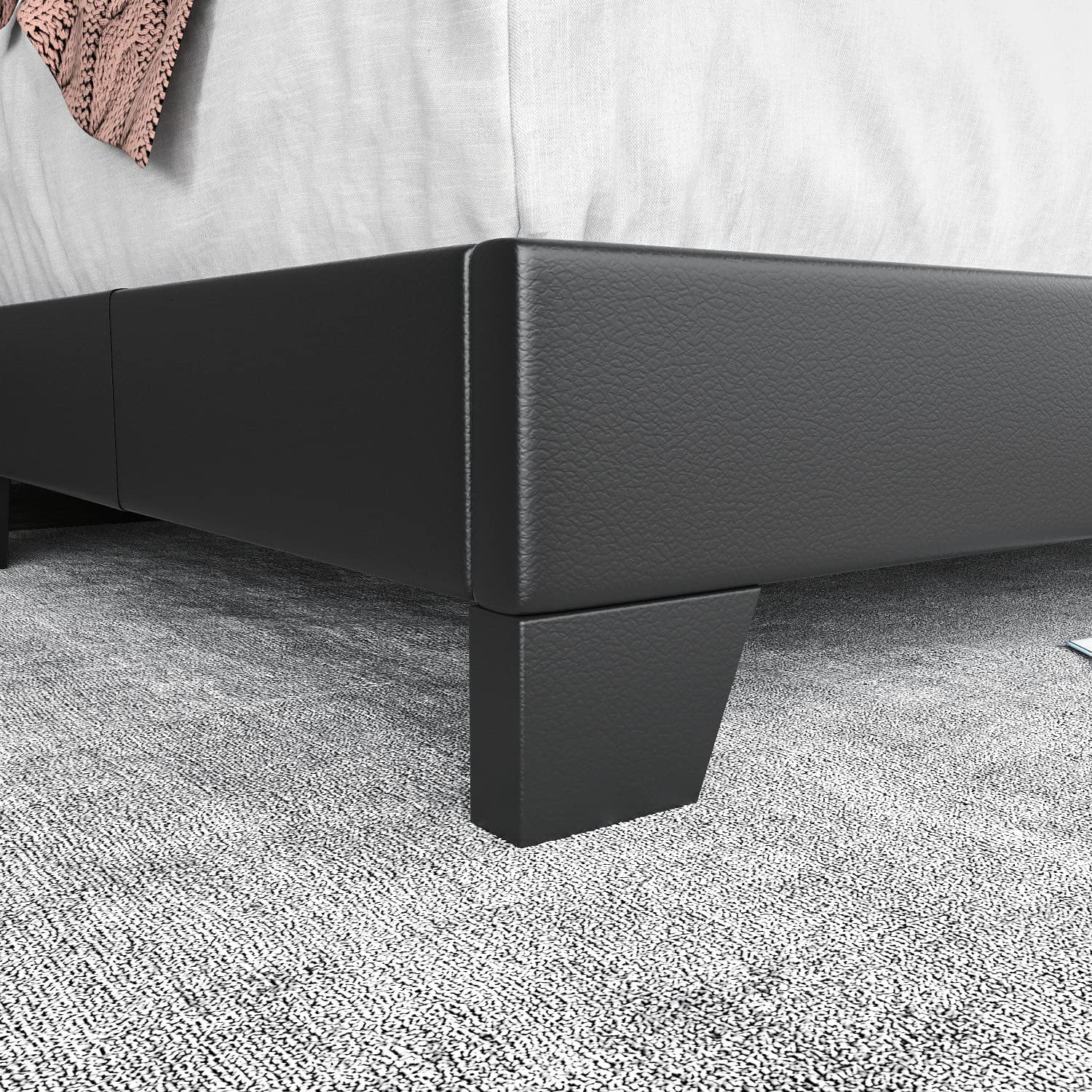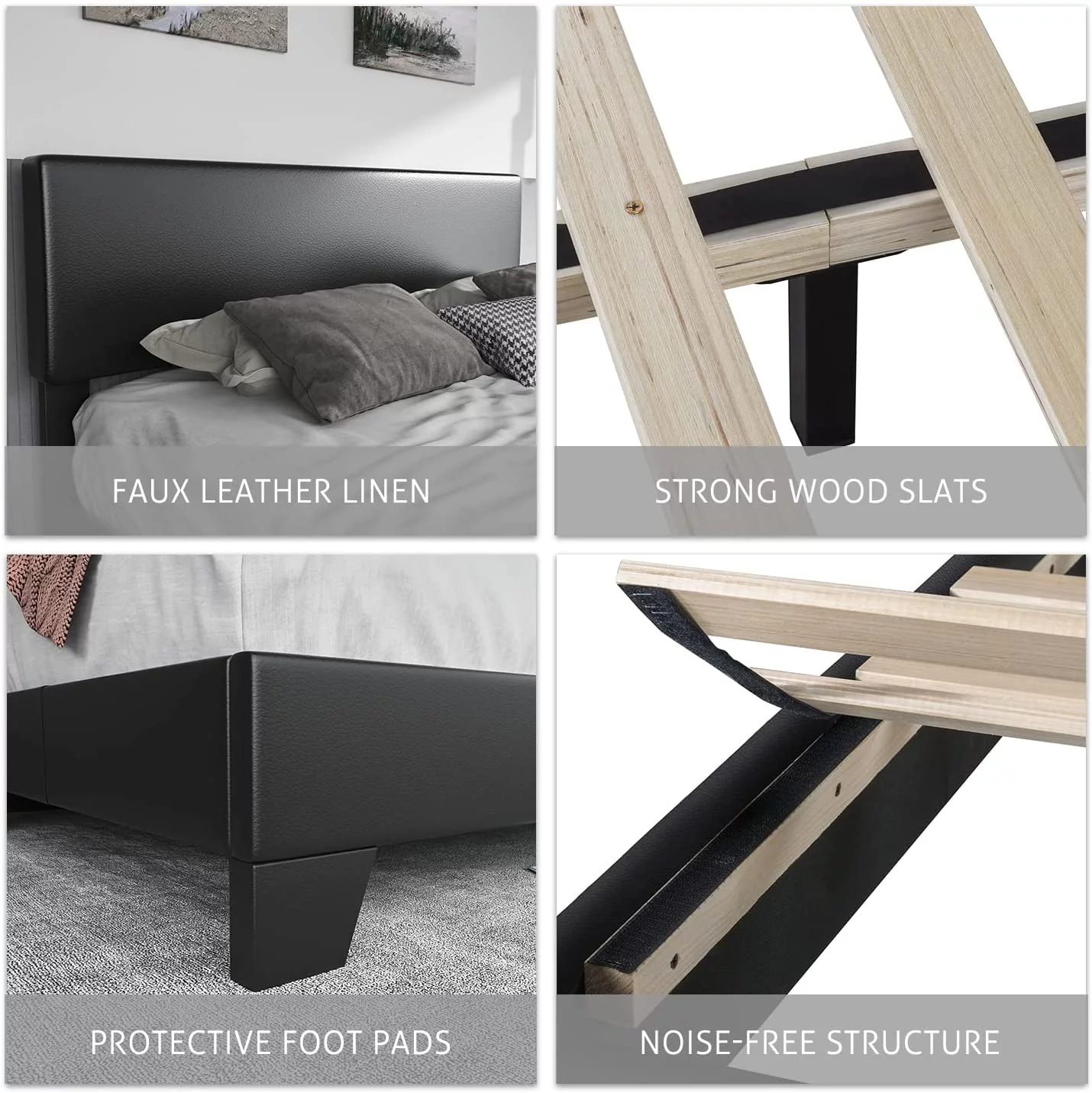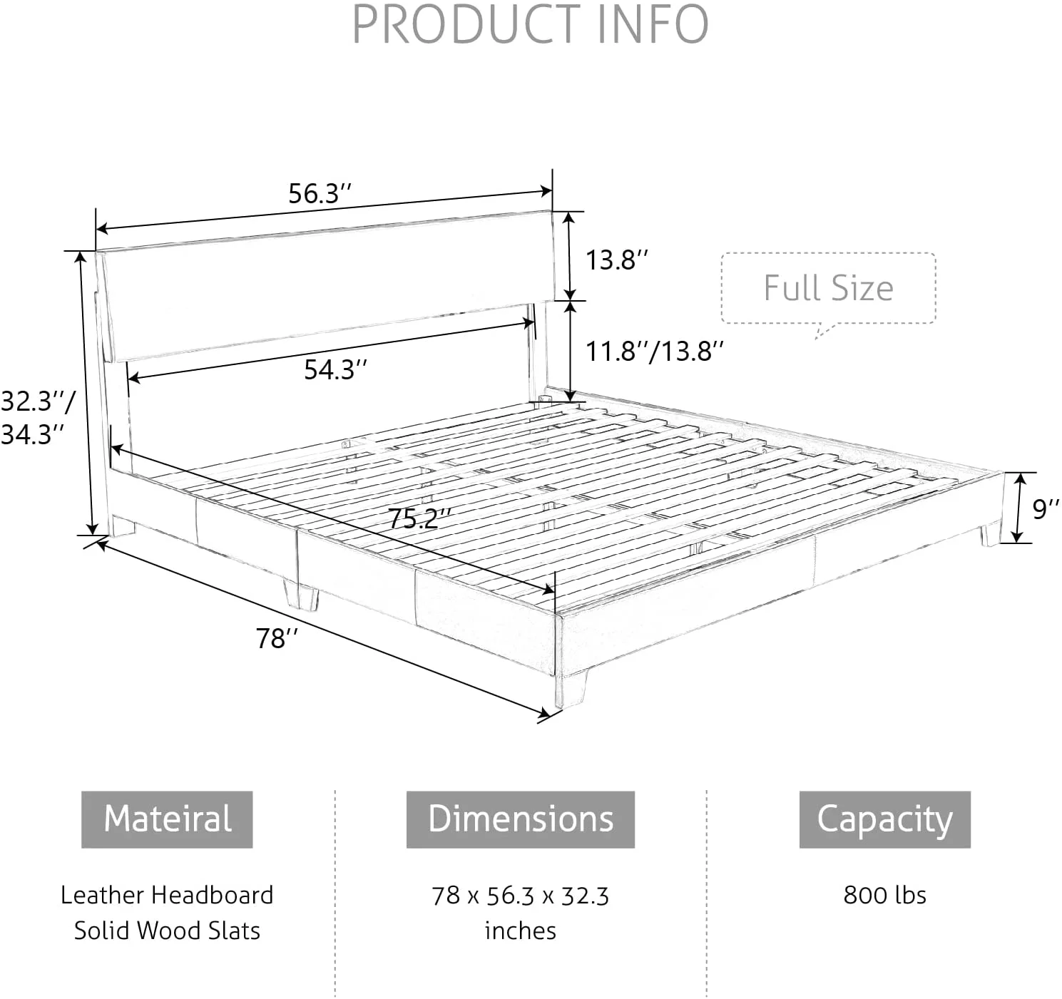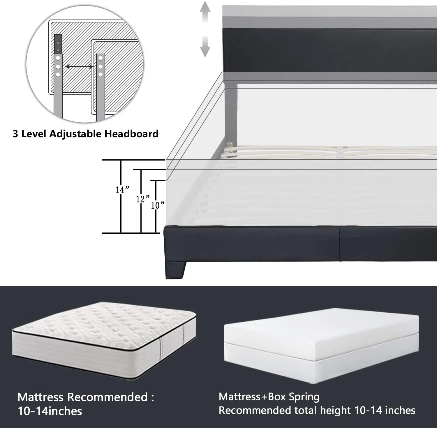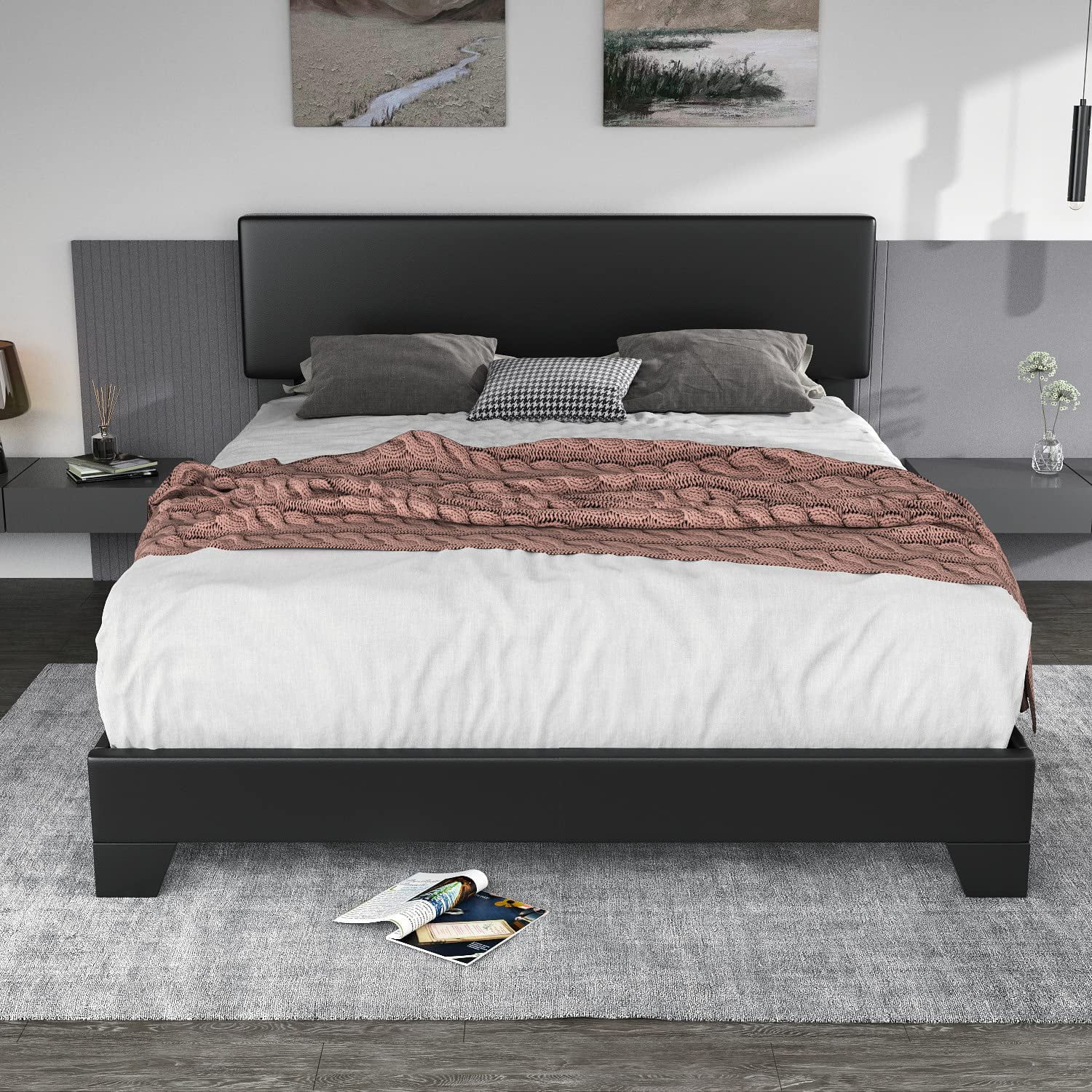 Sha Cerlin Full Size Upholstered Platform Bed Fame with Adjustable Leather Headboard, Wood Slat Support, Black