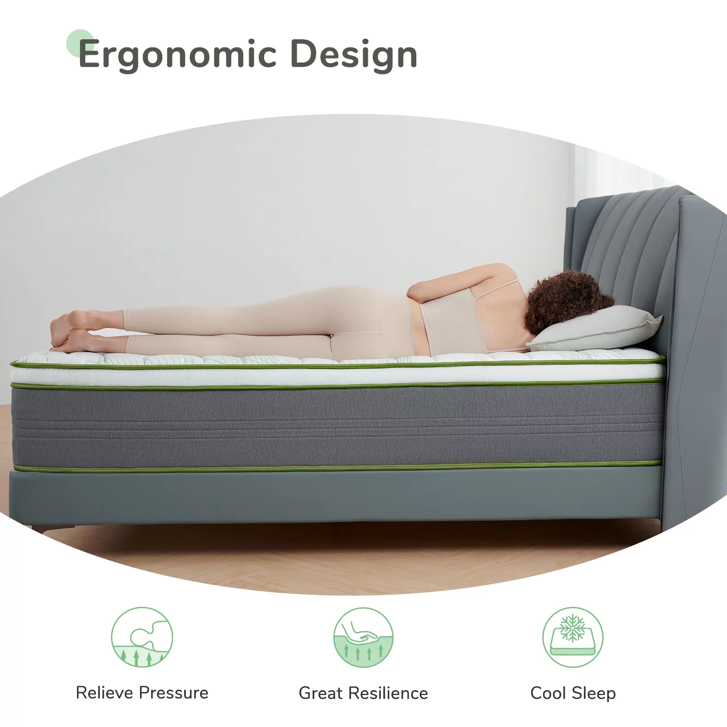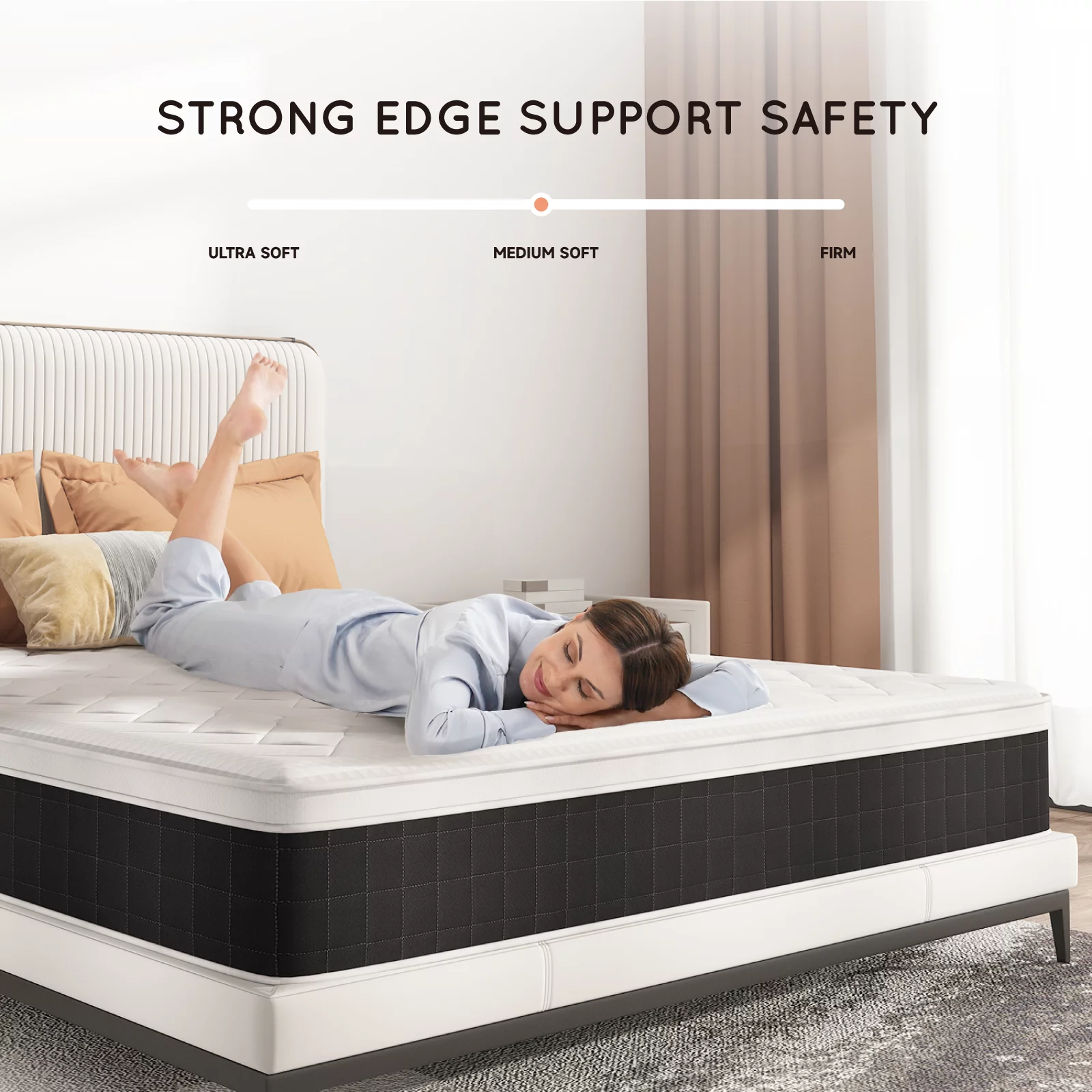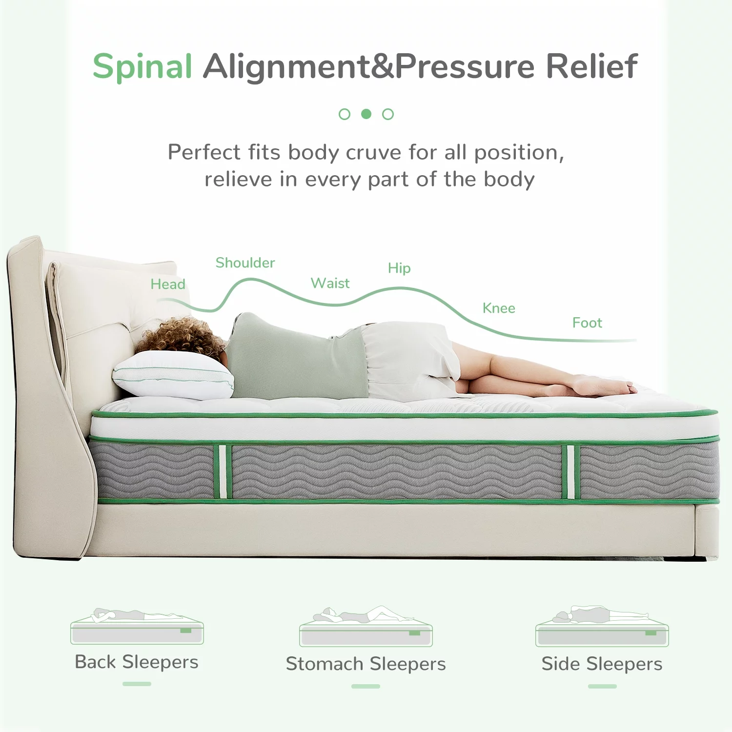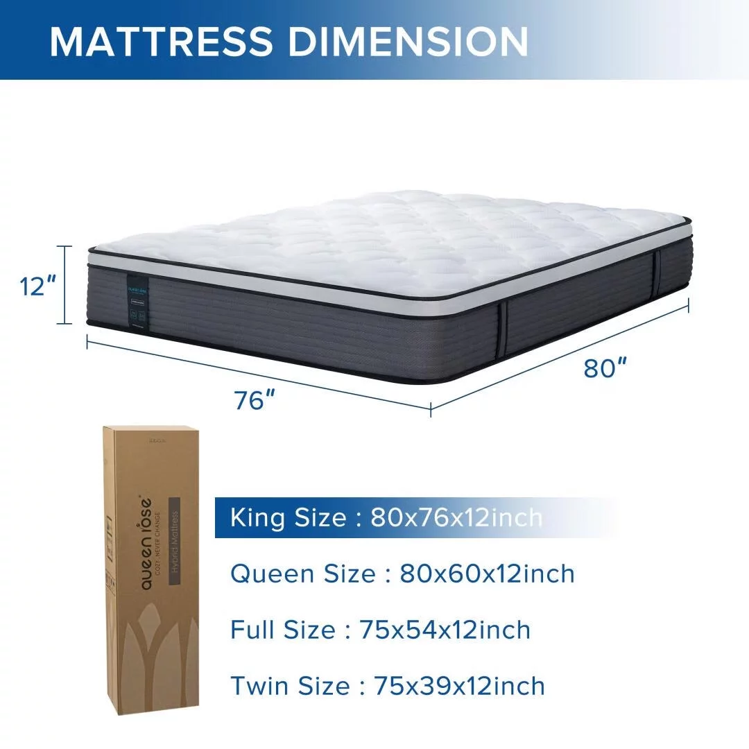 King Size Mattress Potctz 14" Plush Hybrid Innerspring Mattress and Gel Memory Foam Mattress in a Box,King