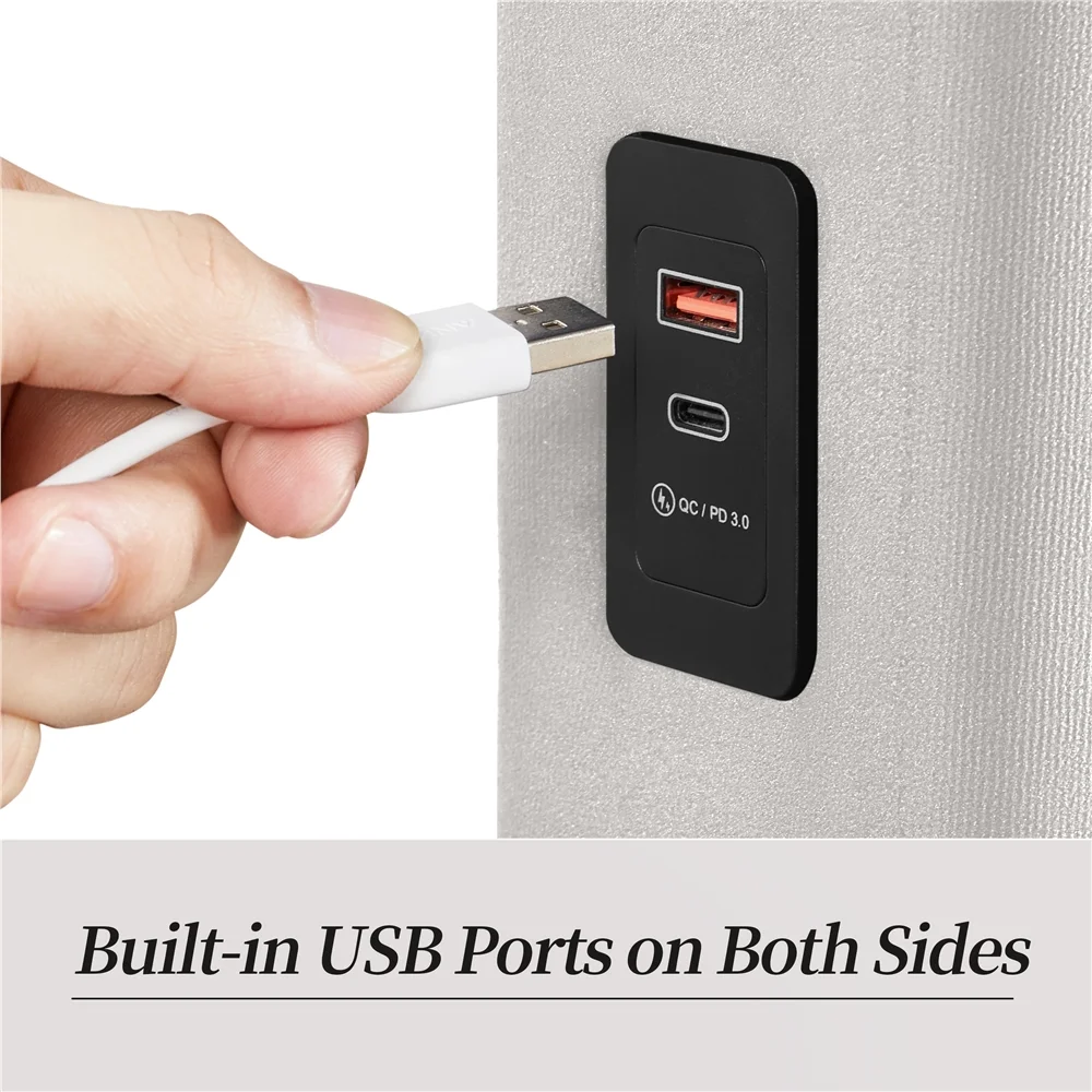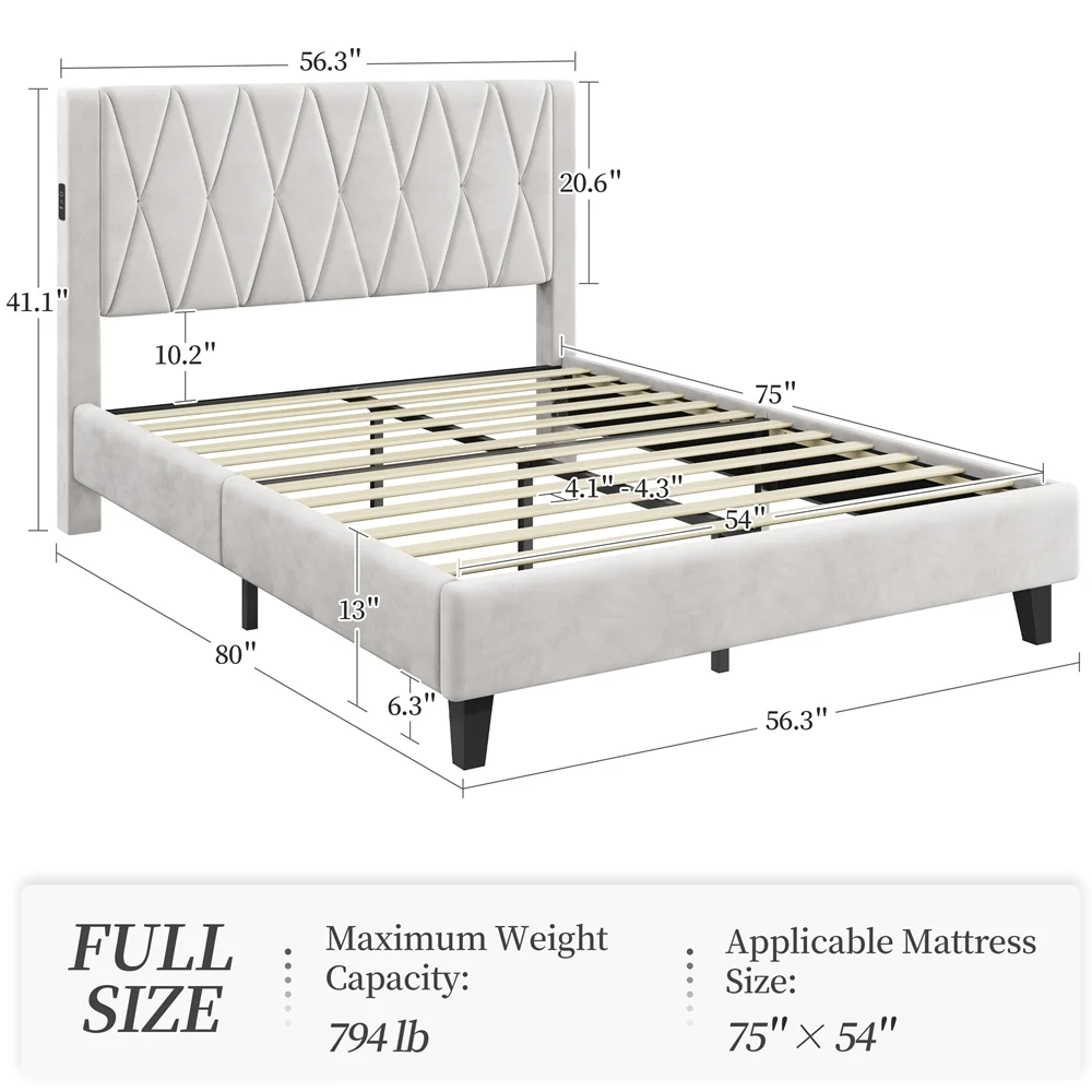 Topeakmart Full Size Upholstered Platform Bed with Built-In USB Ports & Tufted Headboard, Beige
