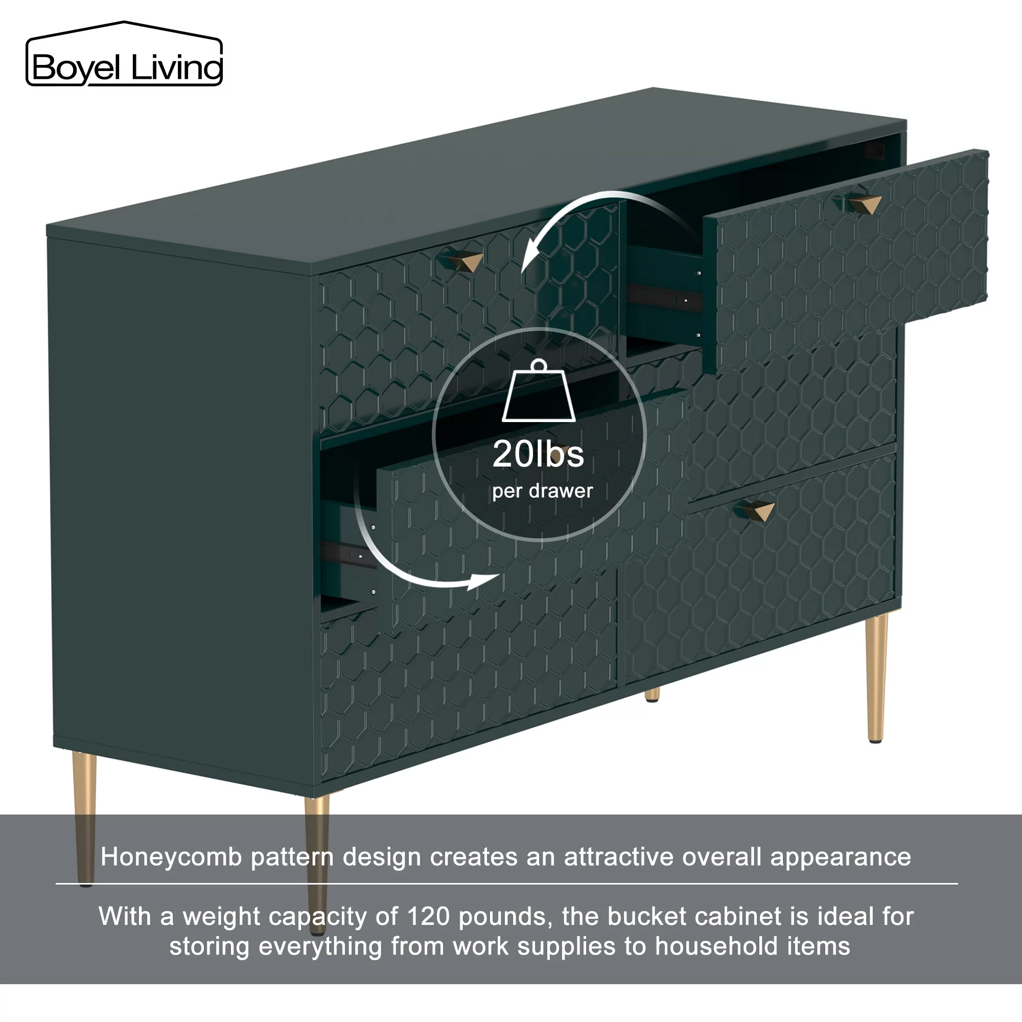 GDF Studio OkiOki Coastal Acacia Wood 5 Drawer Dresser, Light Brown Glaze