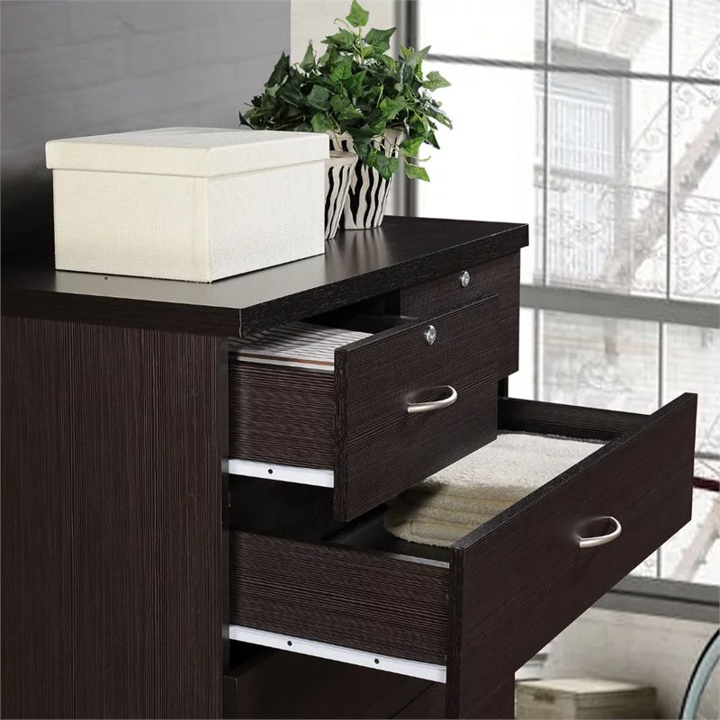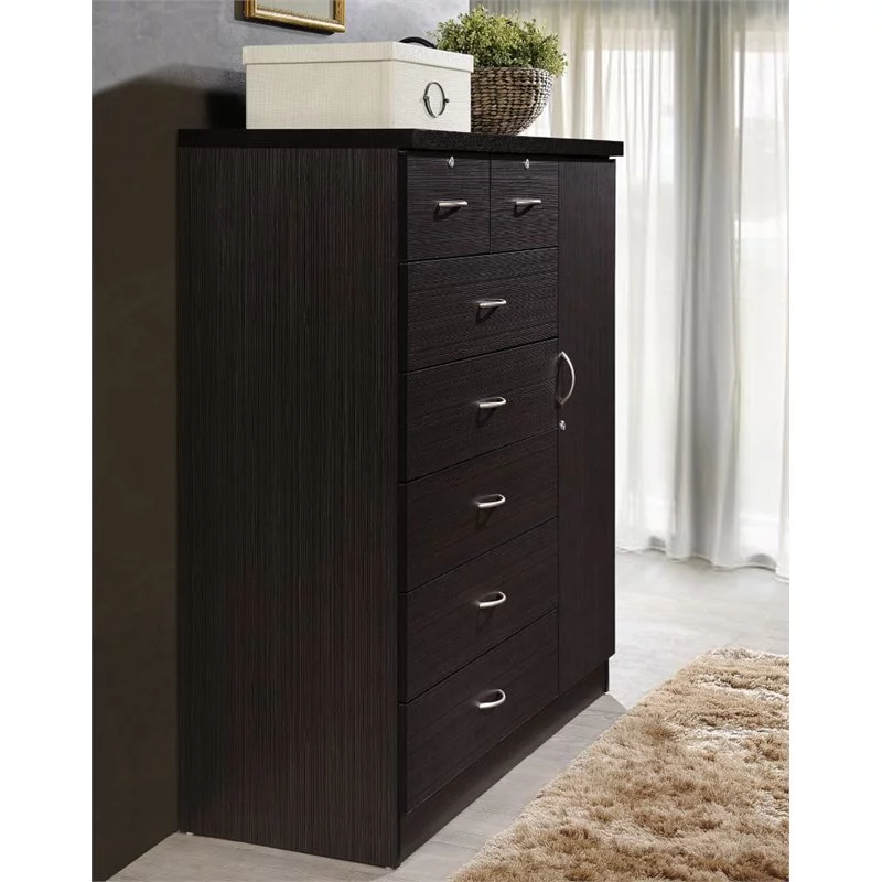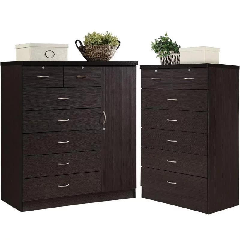 Home Square Hodedah 2 Piece 7 Drawer Wood Chest Set with Locks in Chocolate