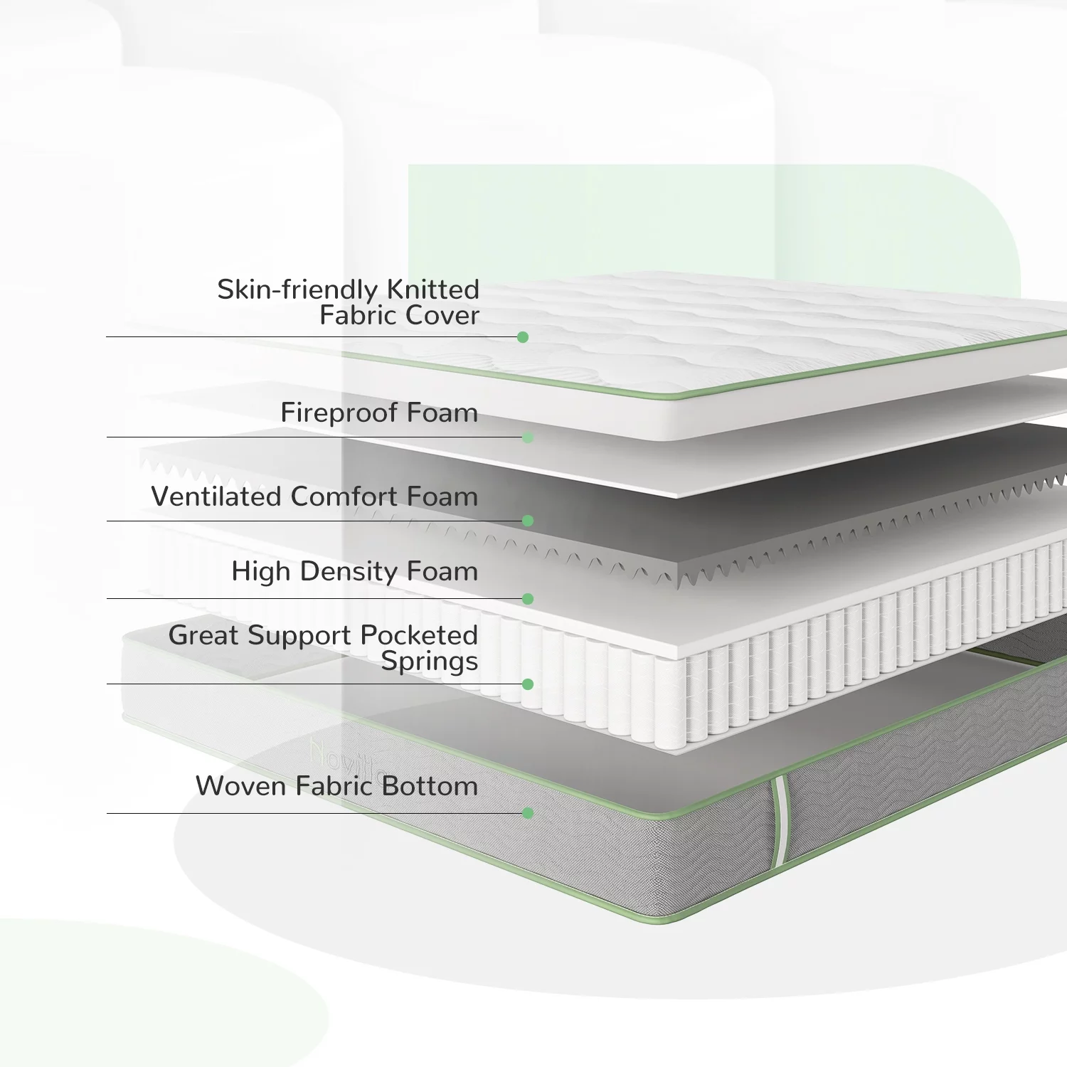 Novilla AwakePro 12" Adult Individual Pocket Spring Memory Foam Hybrid Mattress in a Box, King Size