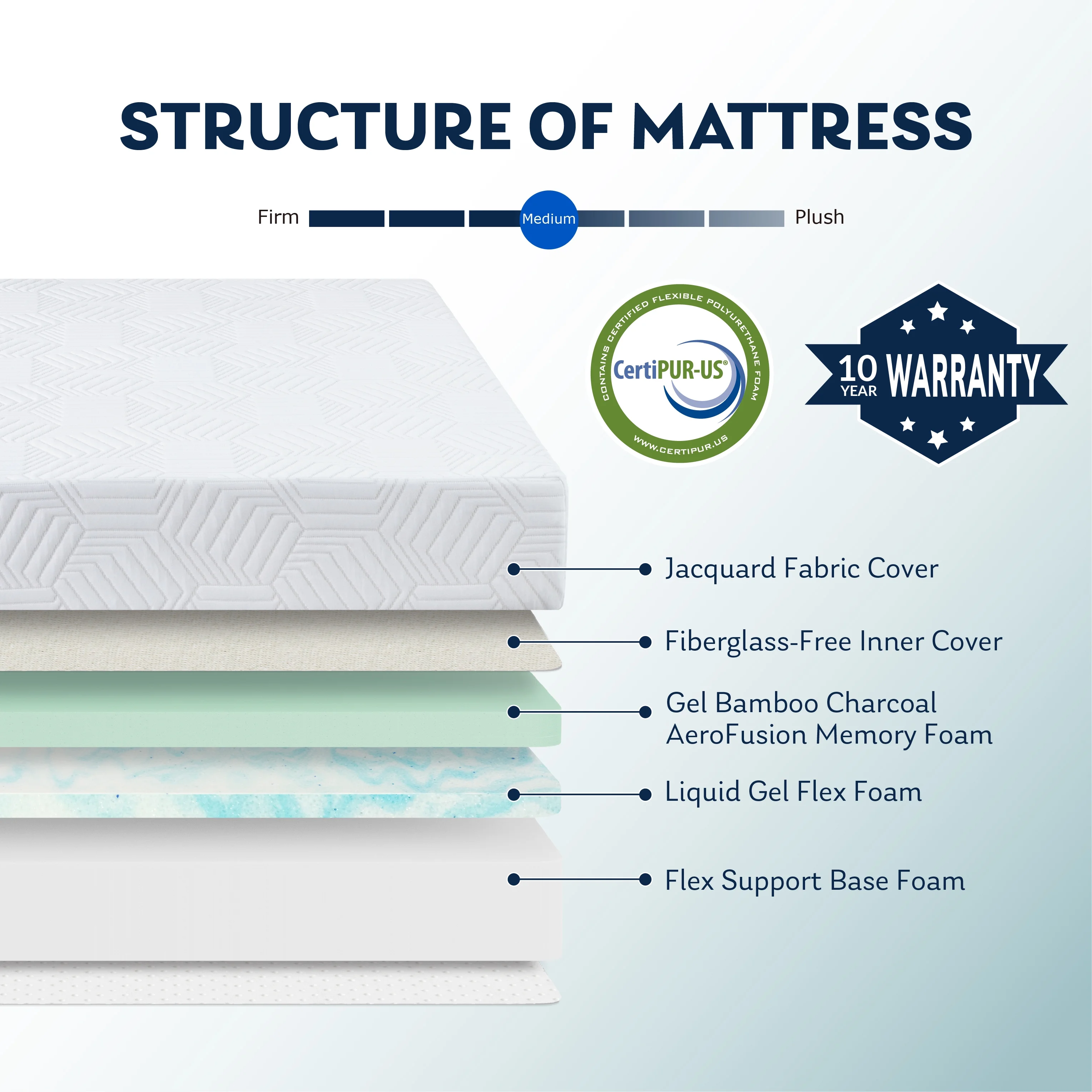 MLILY Ego Blue 10 inch King Size Mattress, Cooling Gel Memory Foam Mattress in a Box, Medium