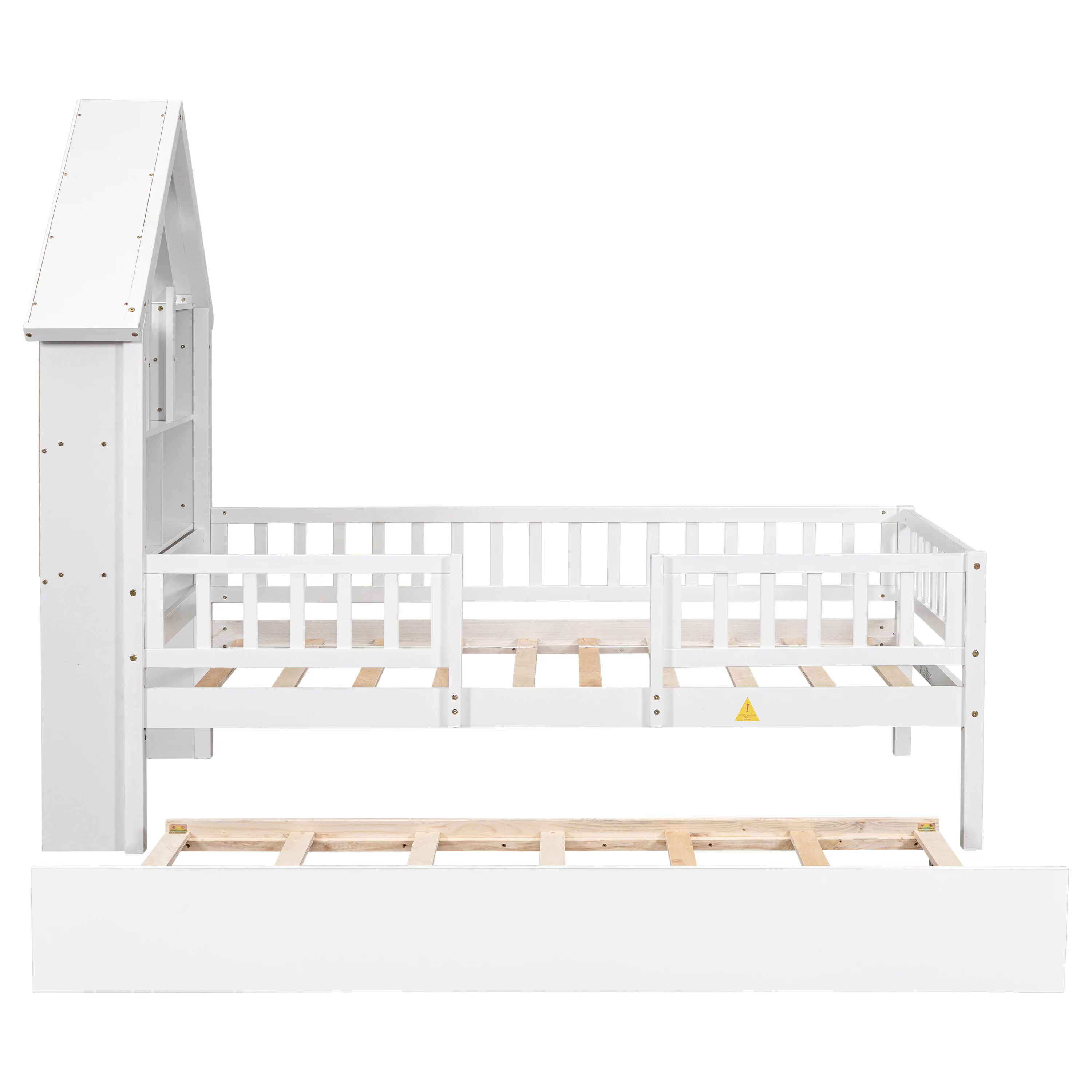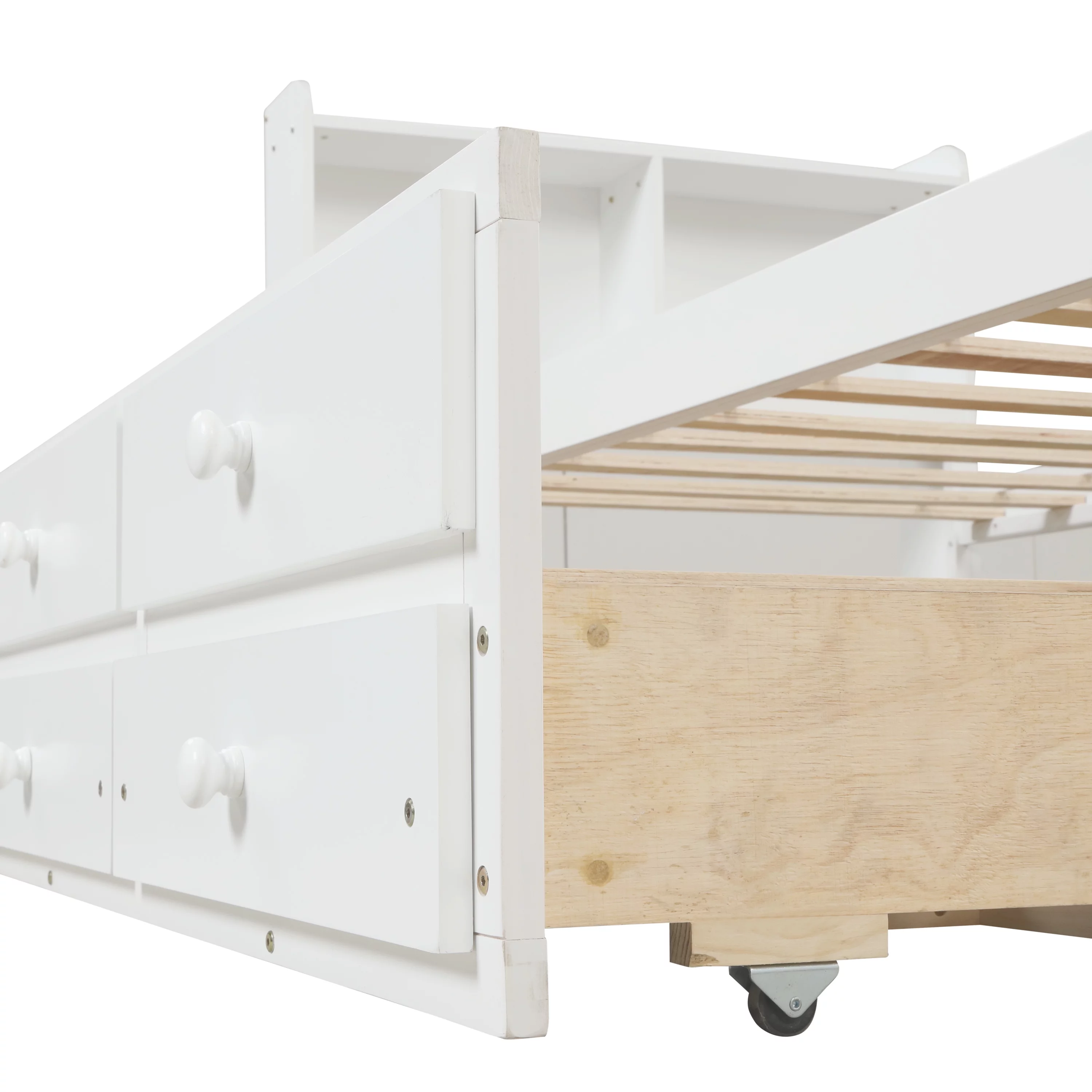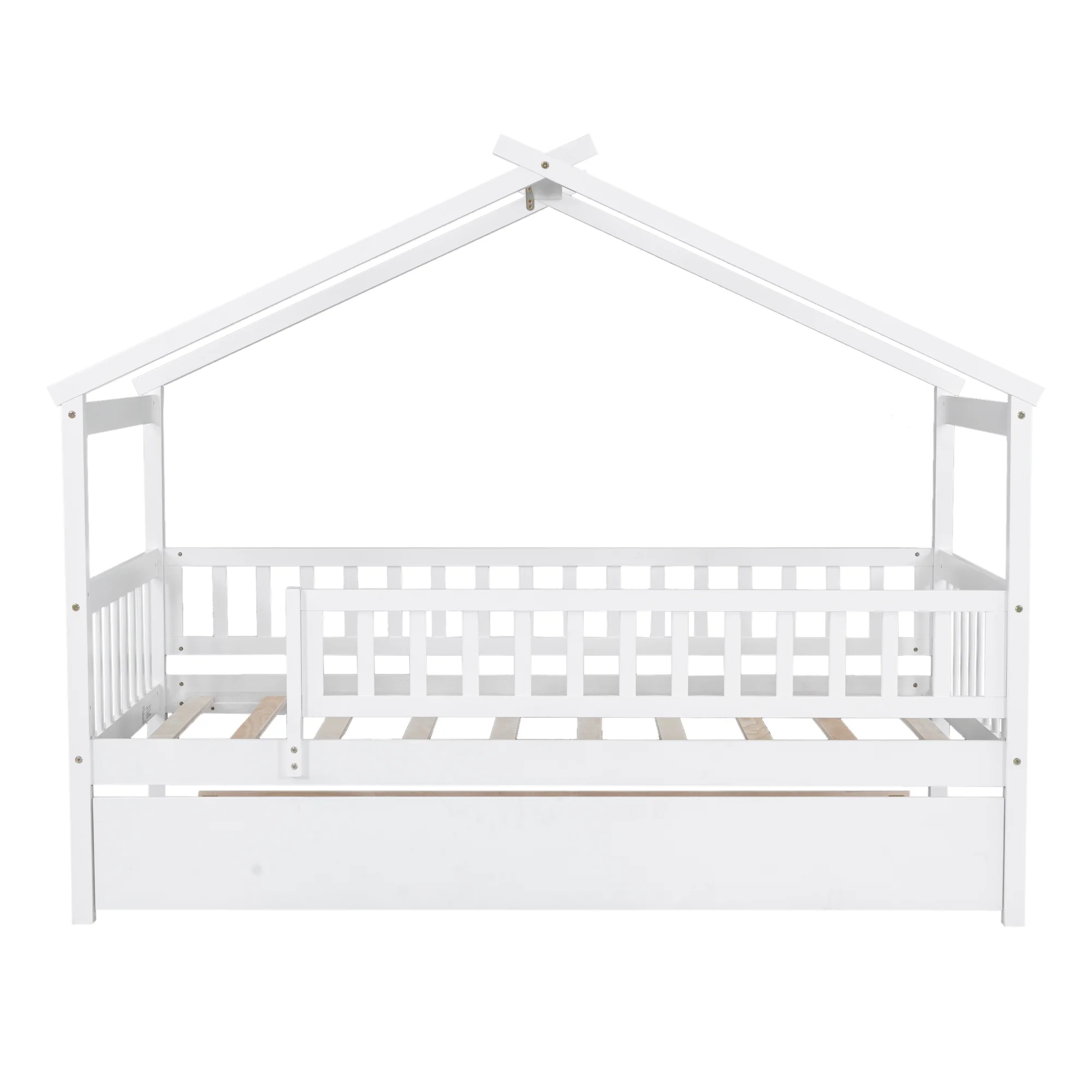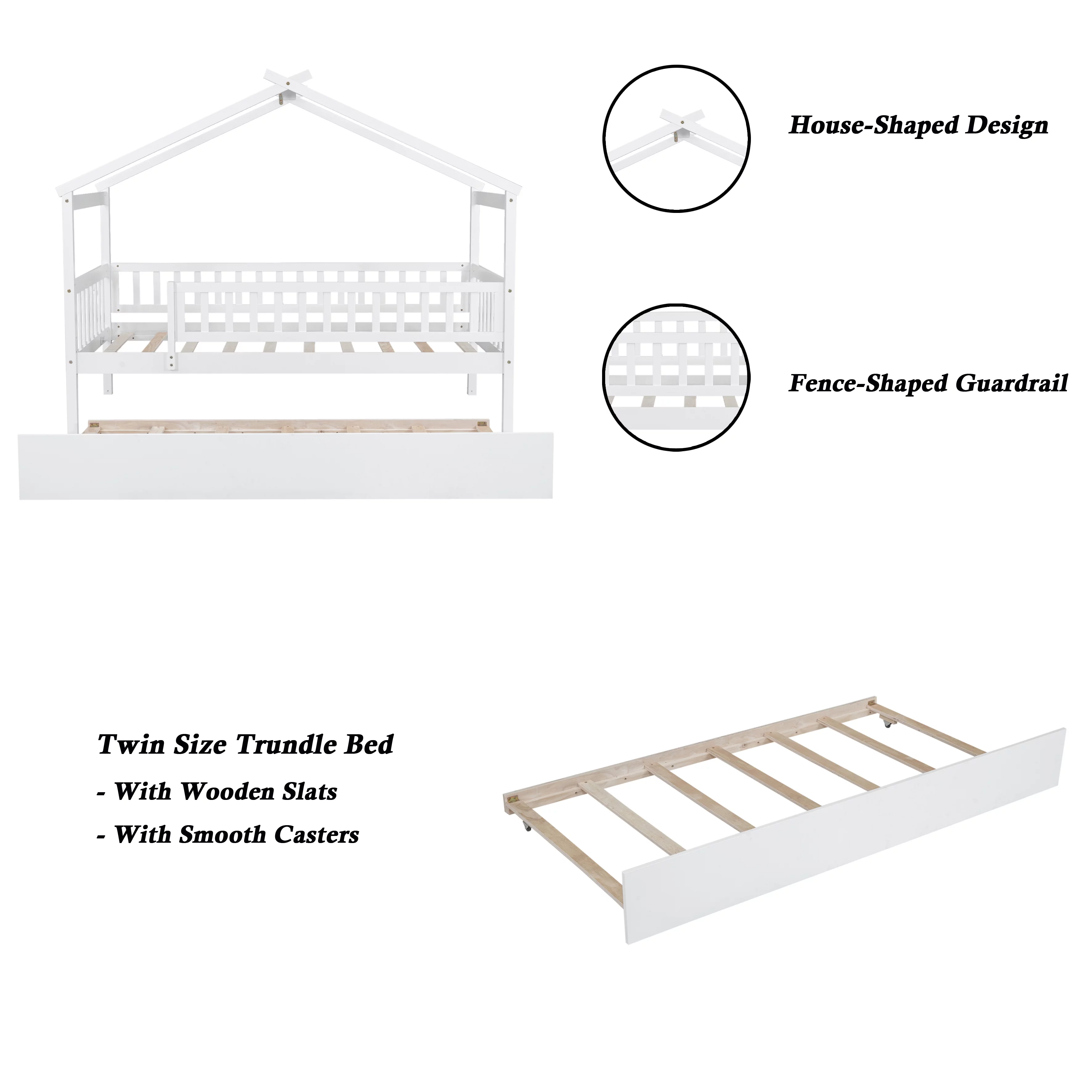 Euroco Upholstery Twin Size Platform Bed, Bunny-Shaped Bed with Twin Size Trundle for Kids, White