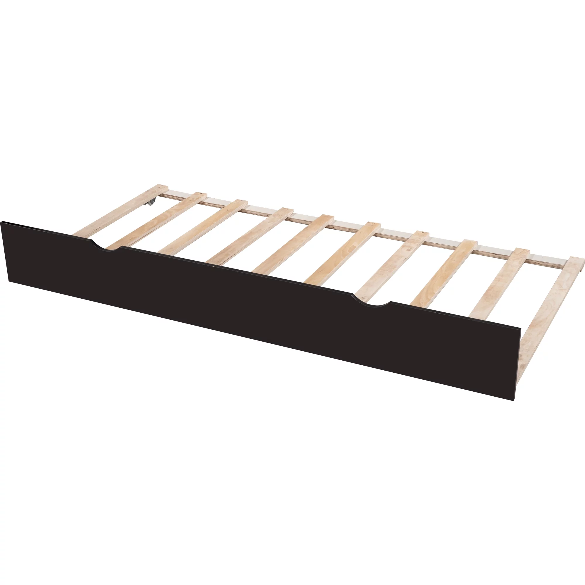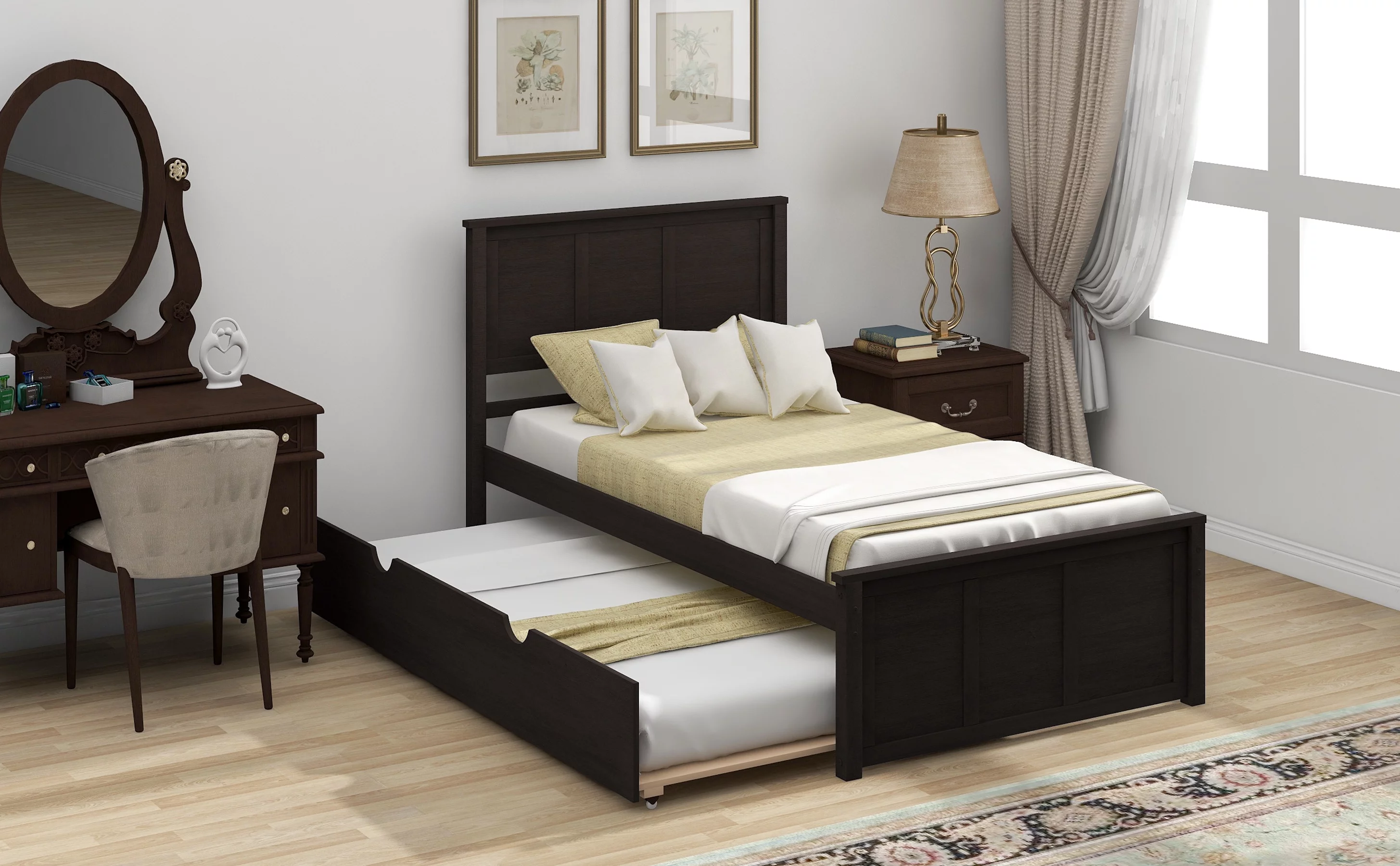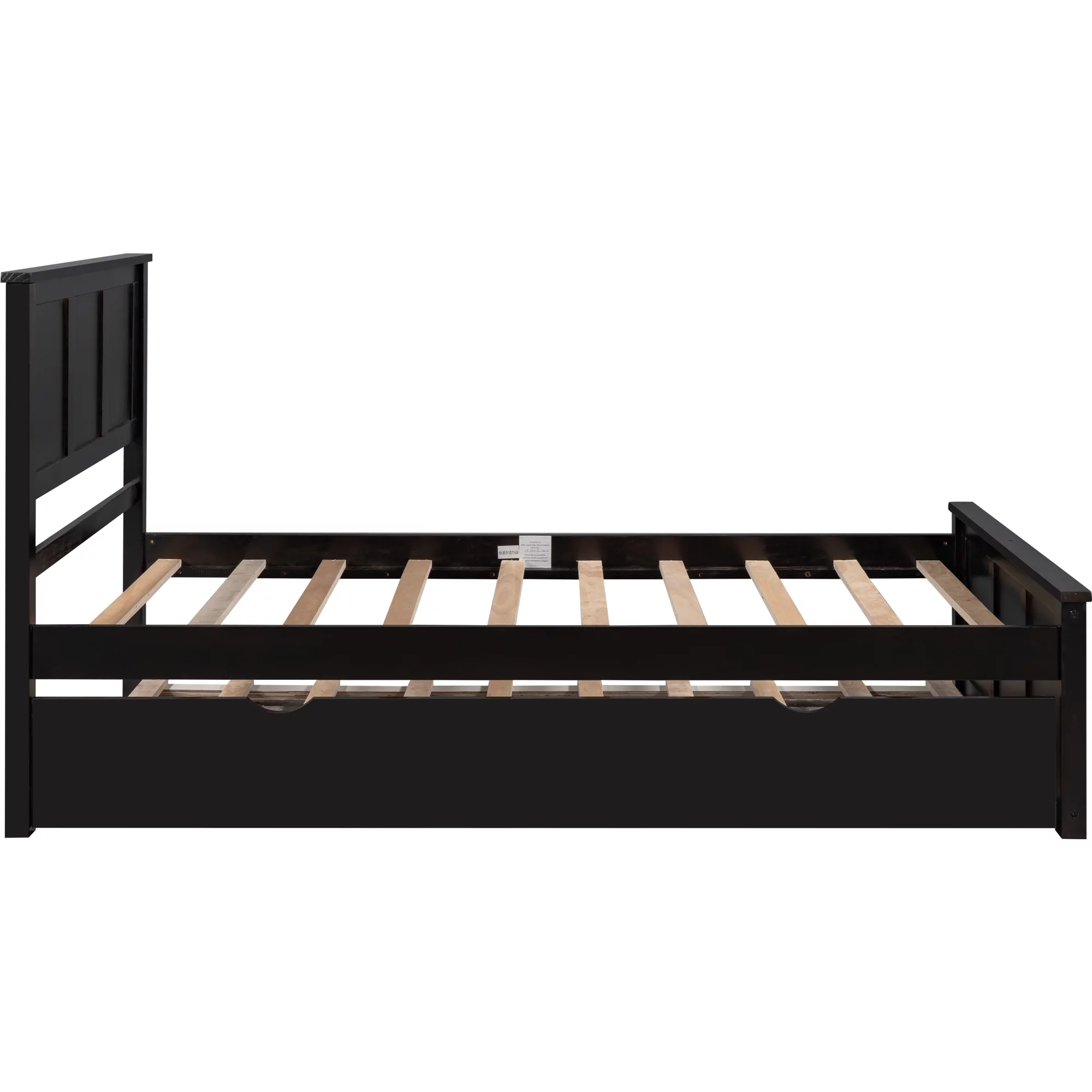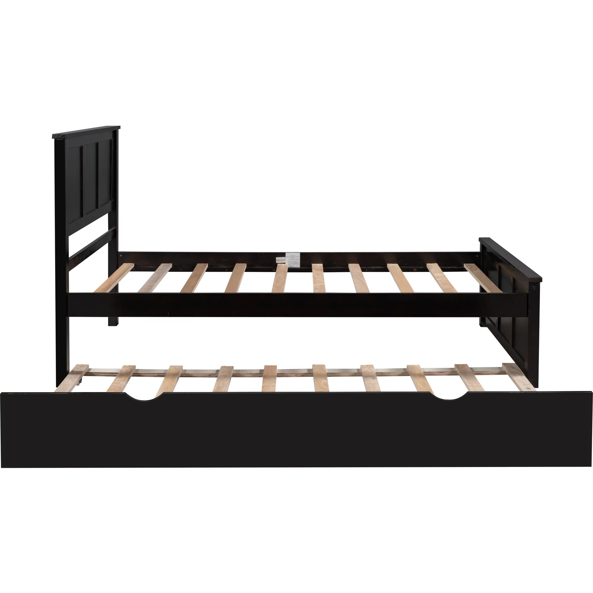Euroco Wood Twin Platform Bed with Headboard & Trundle for Child, Espresso