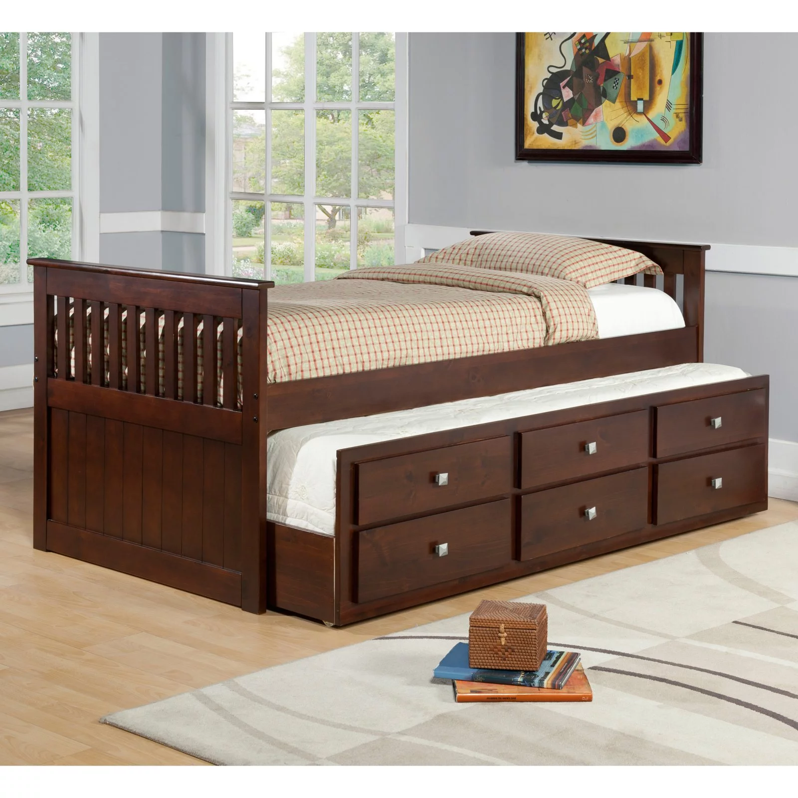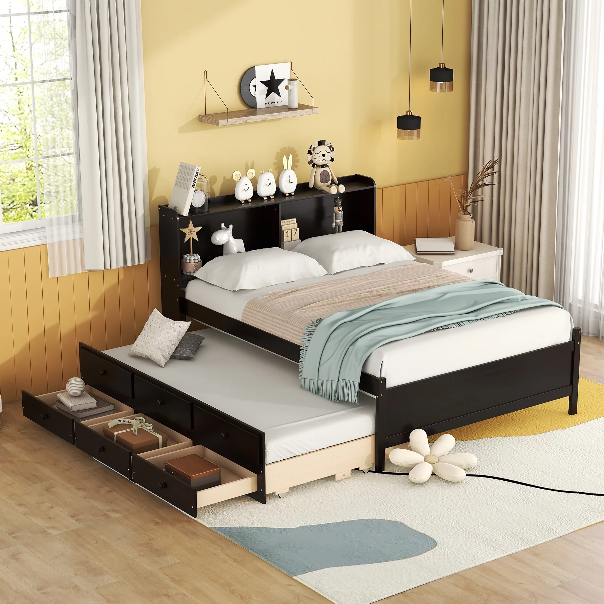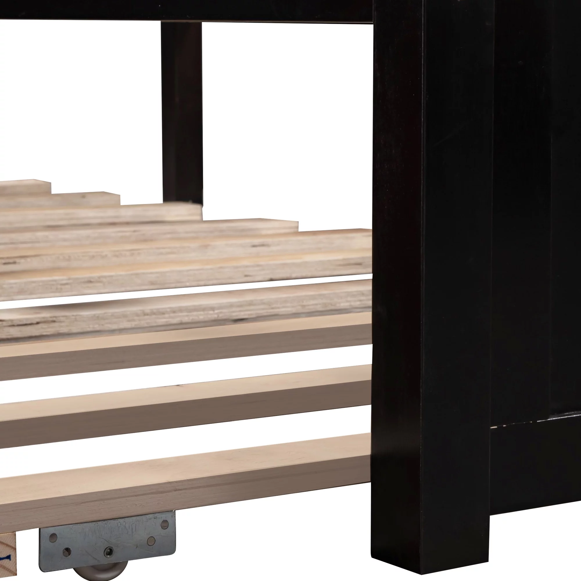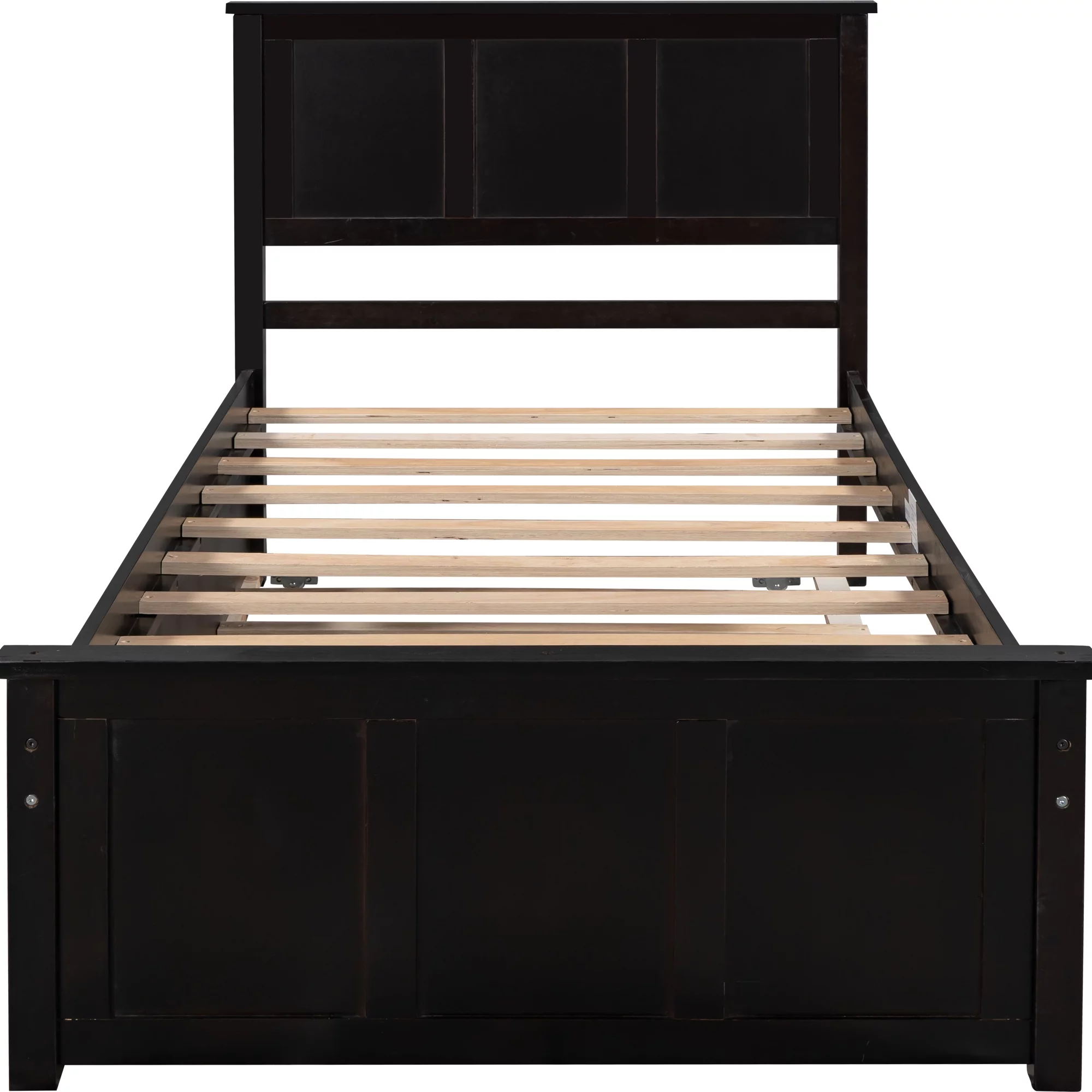 Euroco Wood Twin Platform Bed with Headboard & Trundle for Child, Espresso