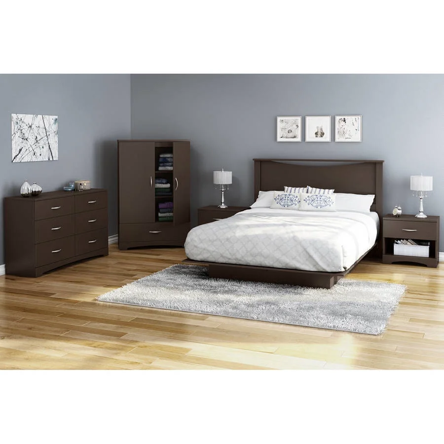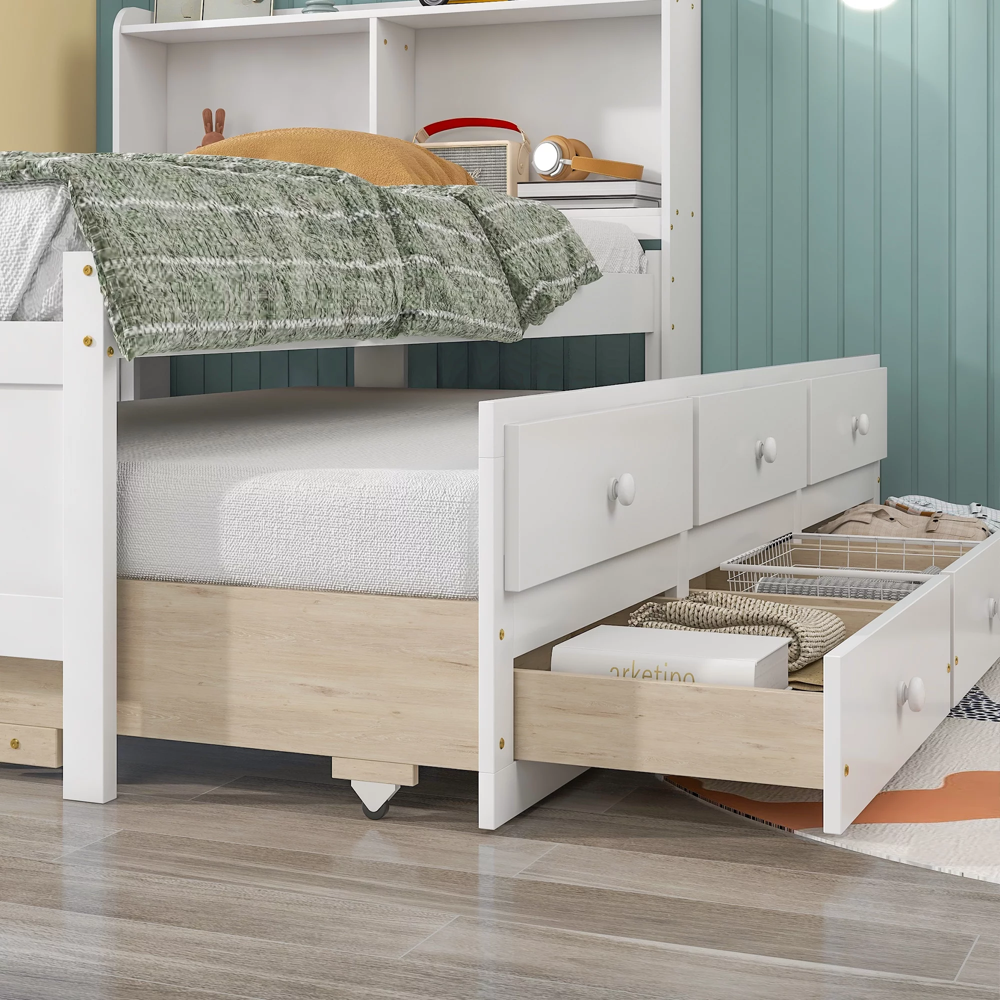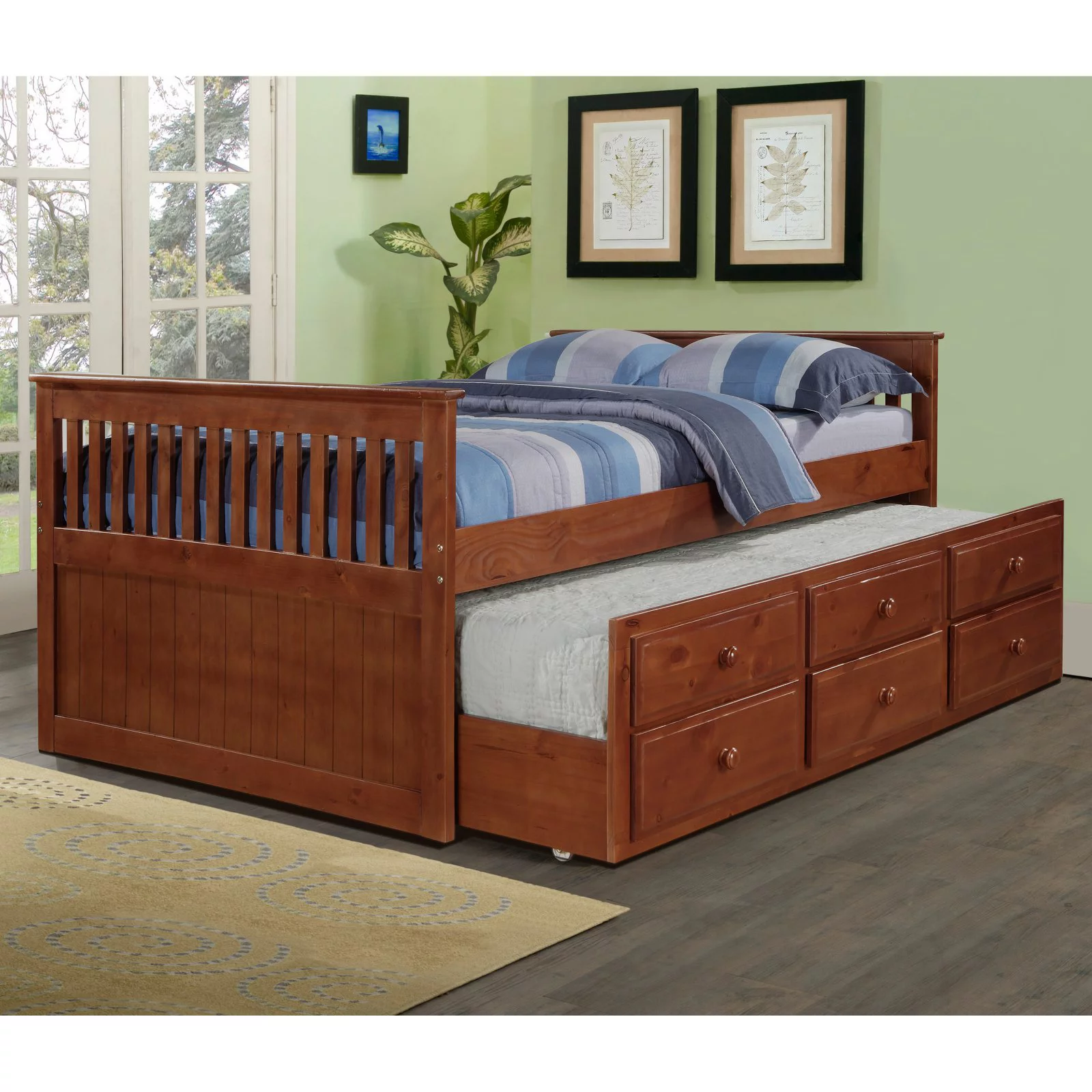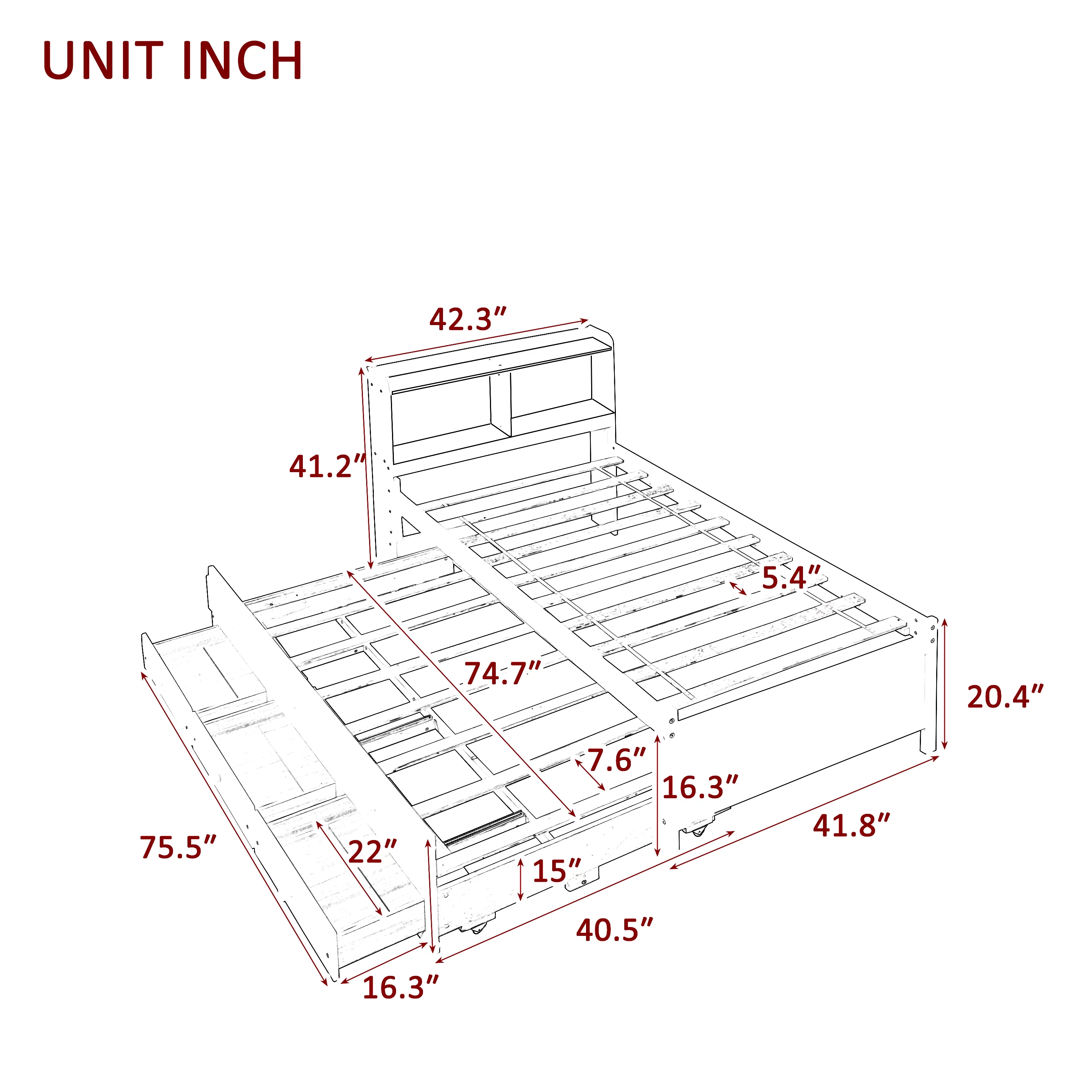 Euroco Wood Twin Platform Bed with Headboard & Trundle for Child, Espresso