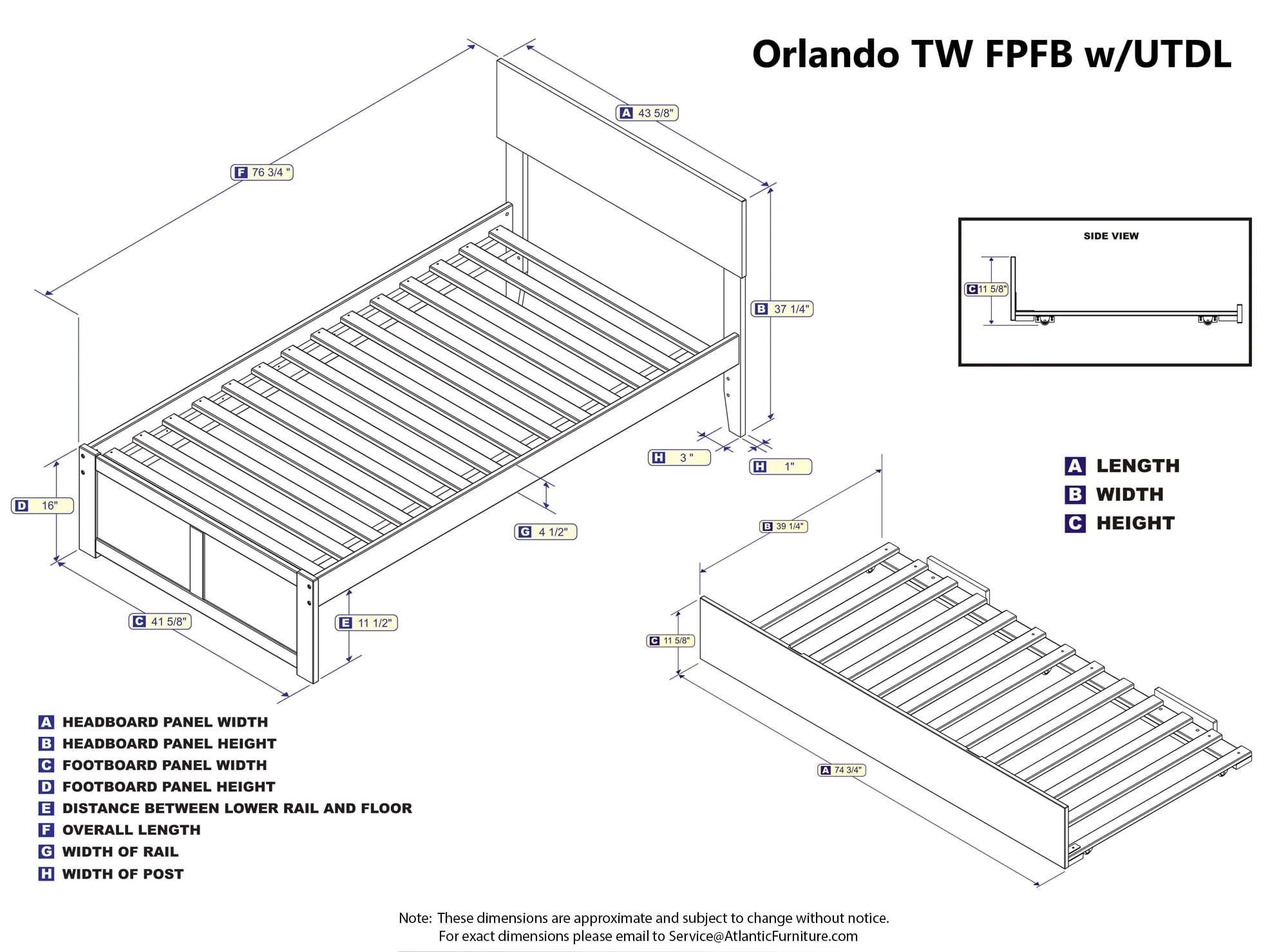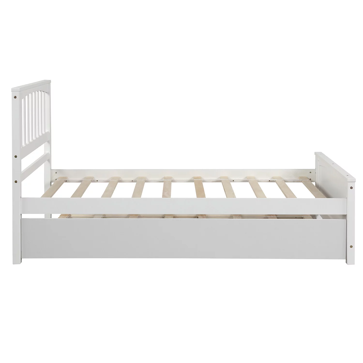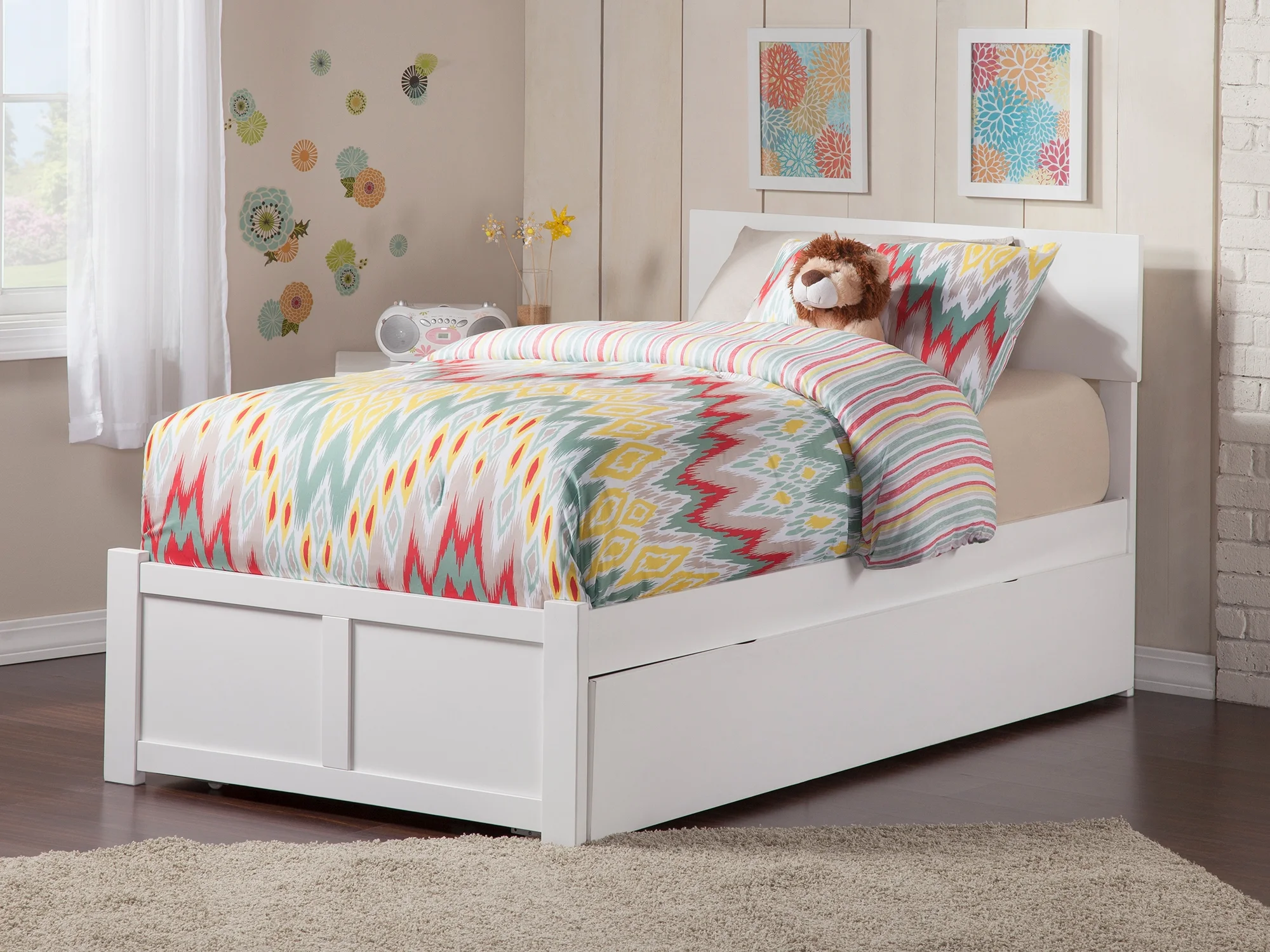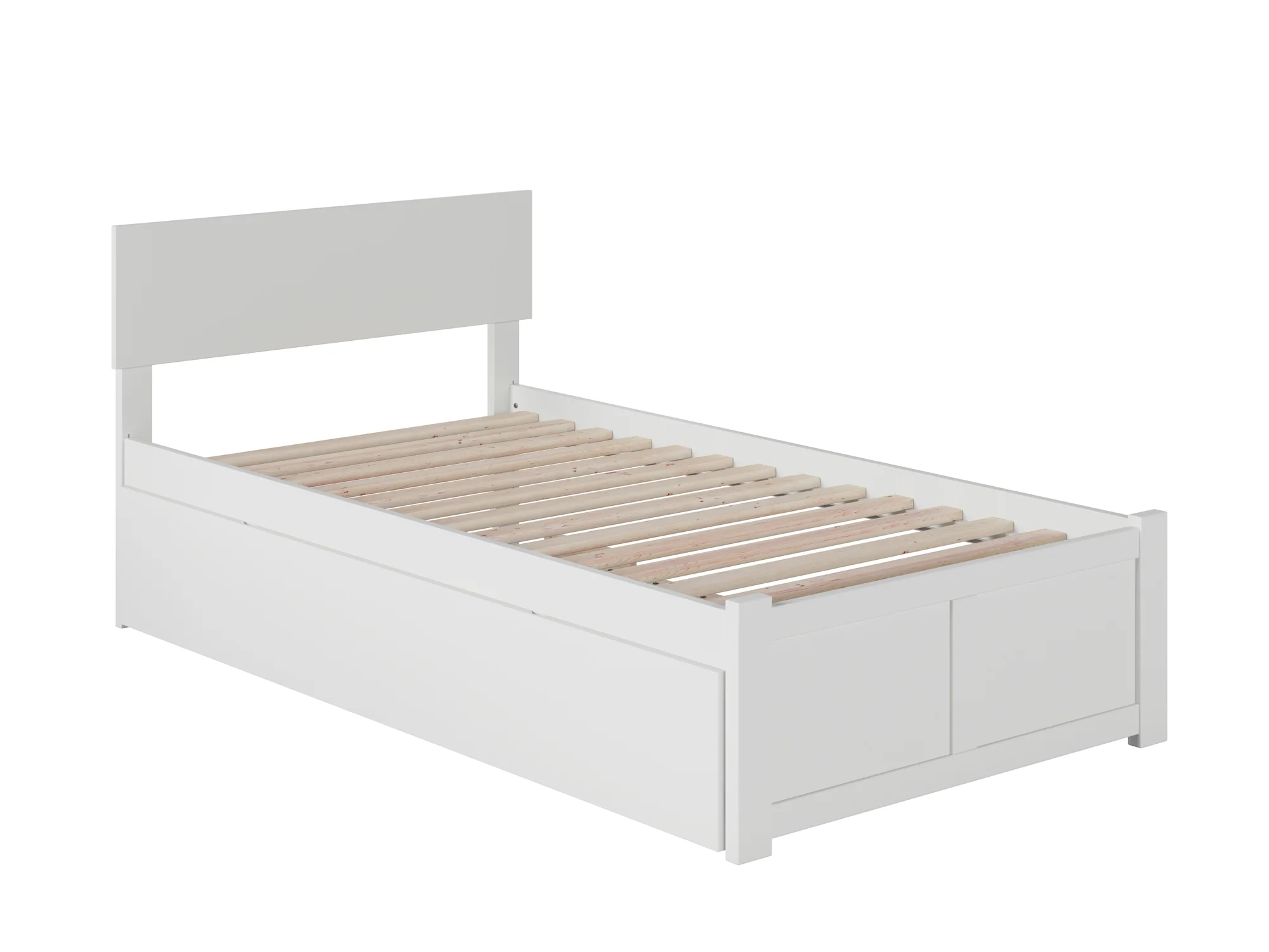 Orlando Twin Platform Bed with Flat Panel Foot Board and Twin Size Urban Trundle Bed in White