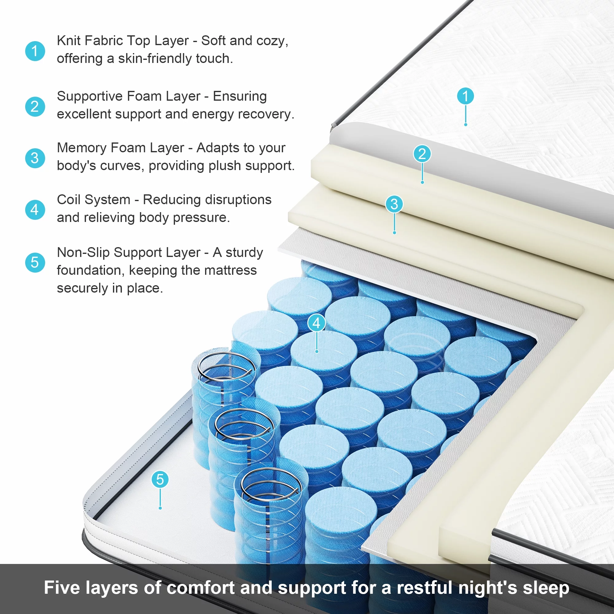 CHEVNI 12 inch Mattress King Bed Size Mattress in a Box Hybrid Mattress