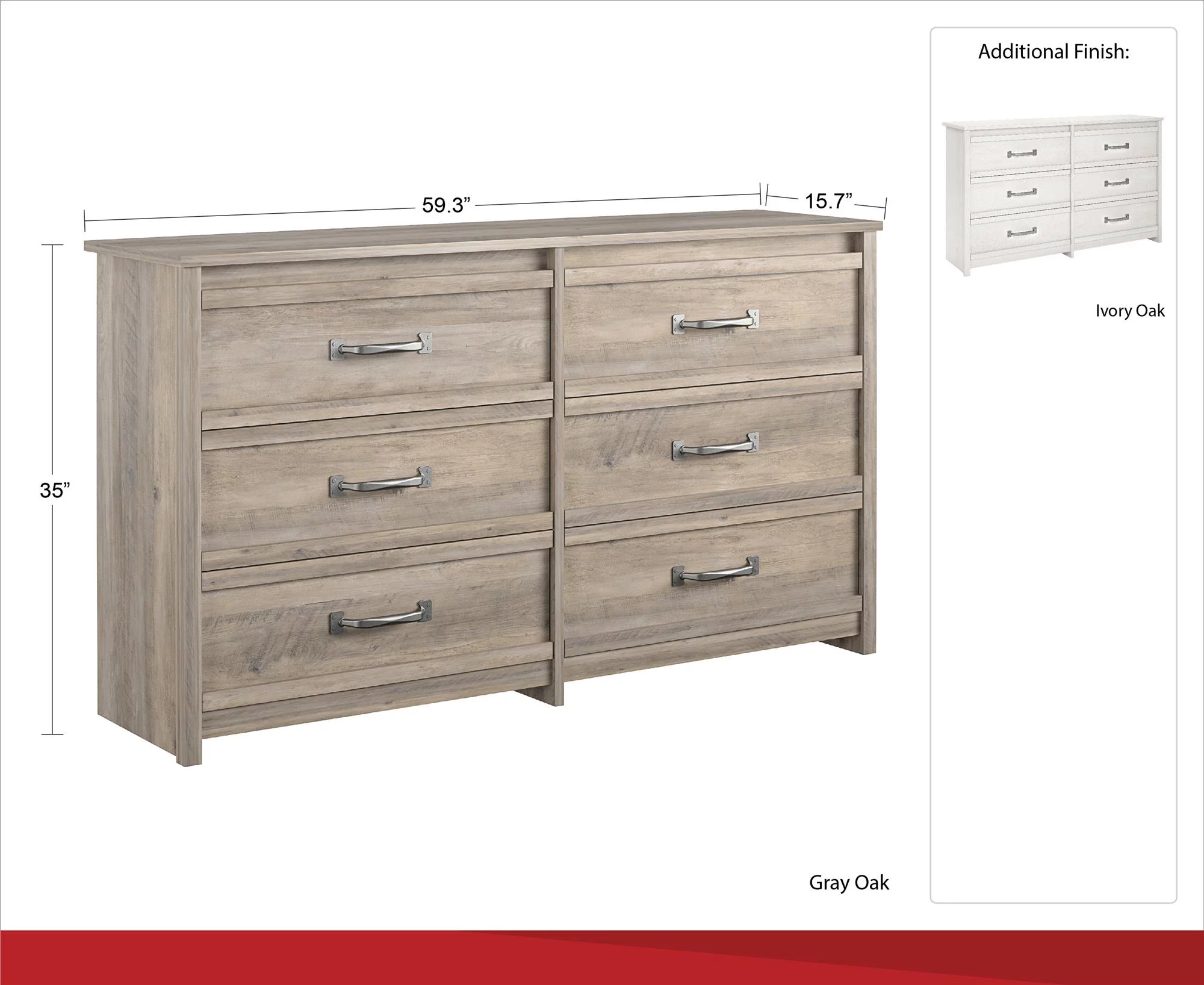 Erie Collection by Sauder 6-Drawer Bedroom Dresser, Timber Oak Finish