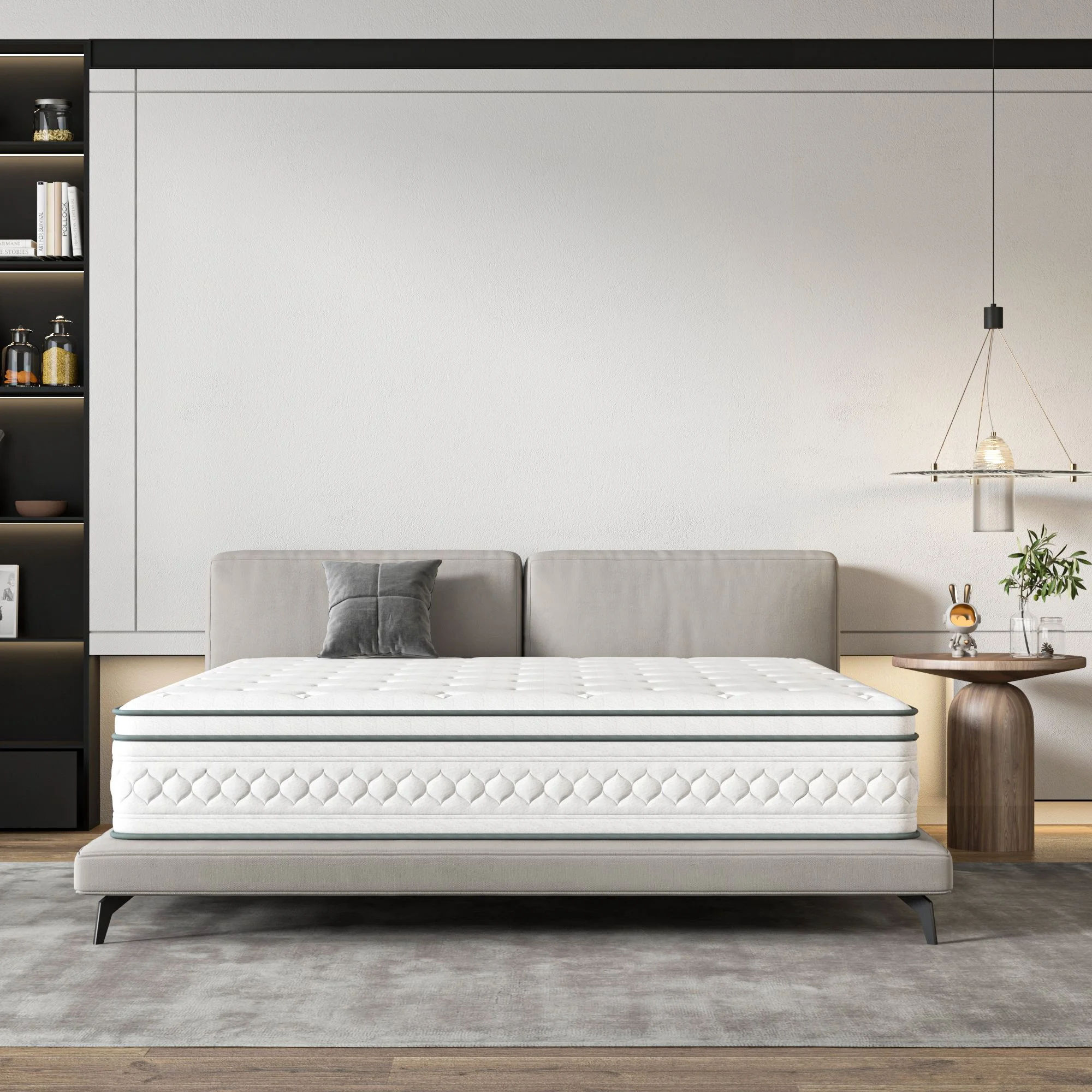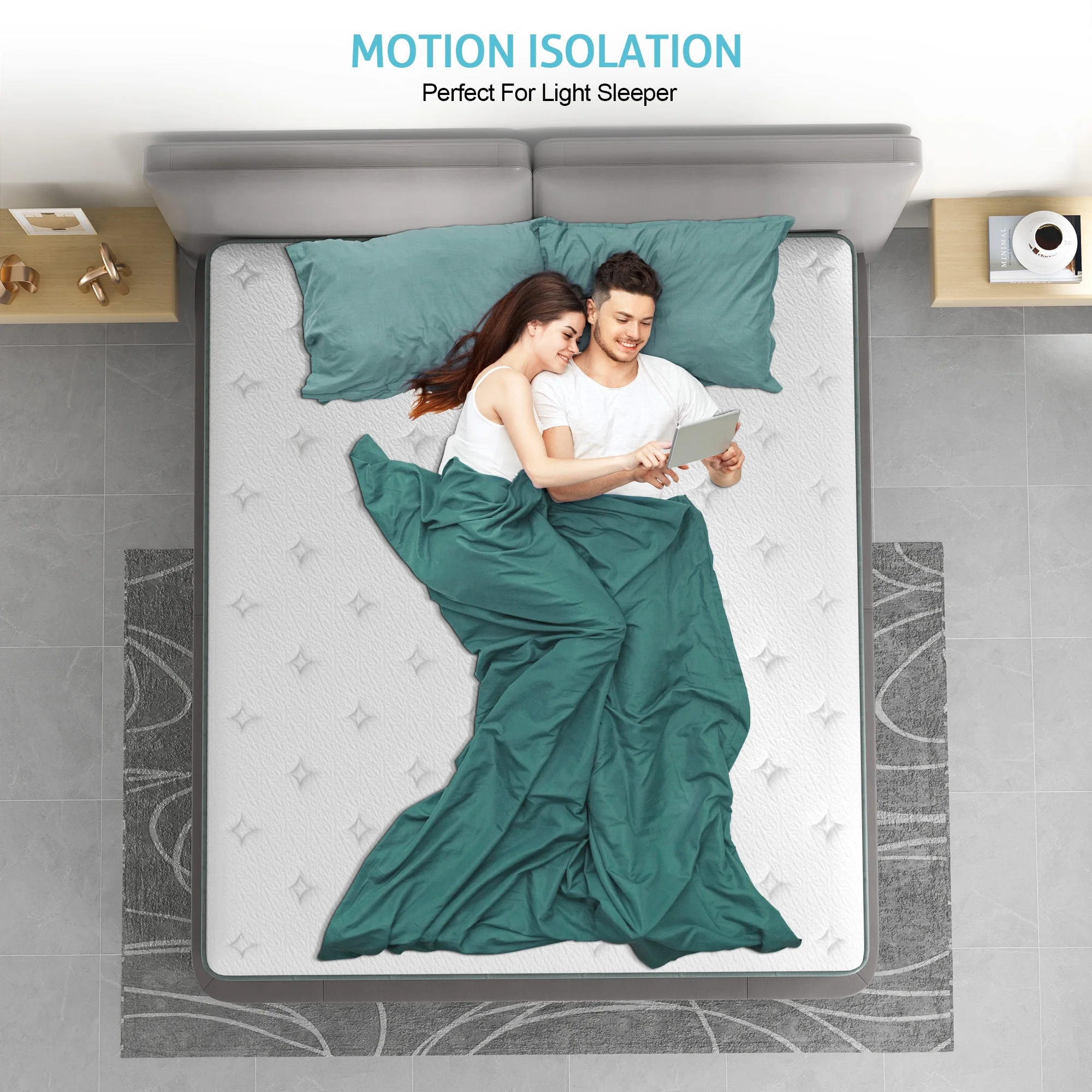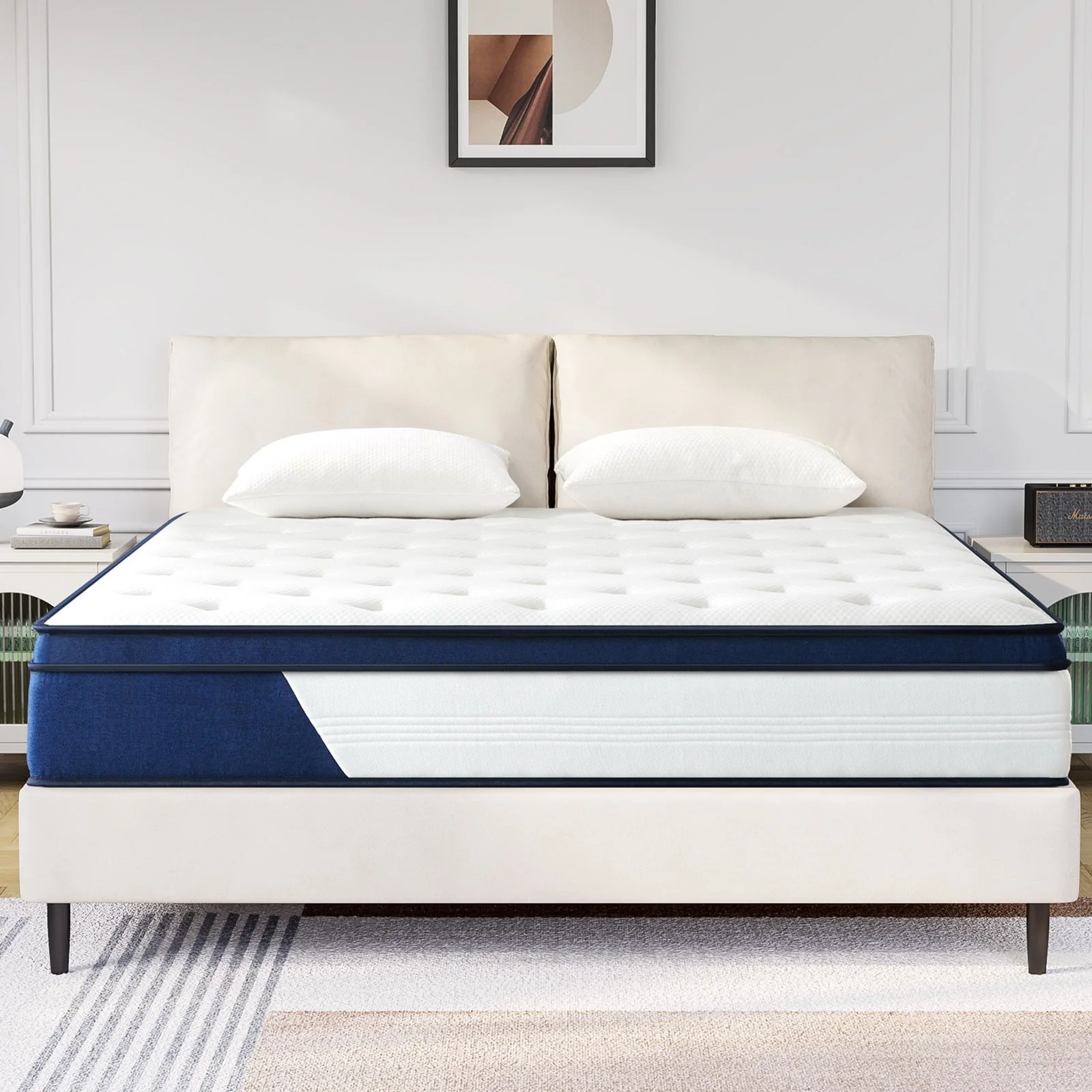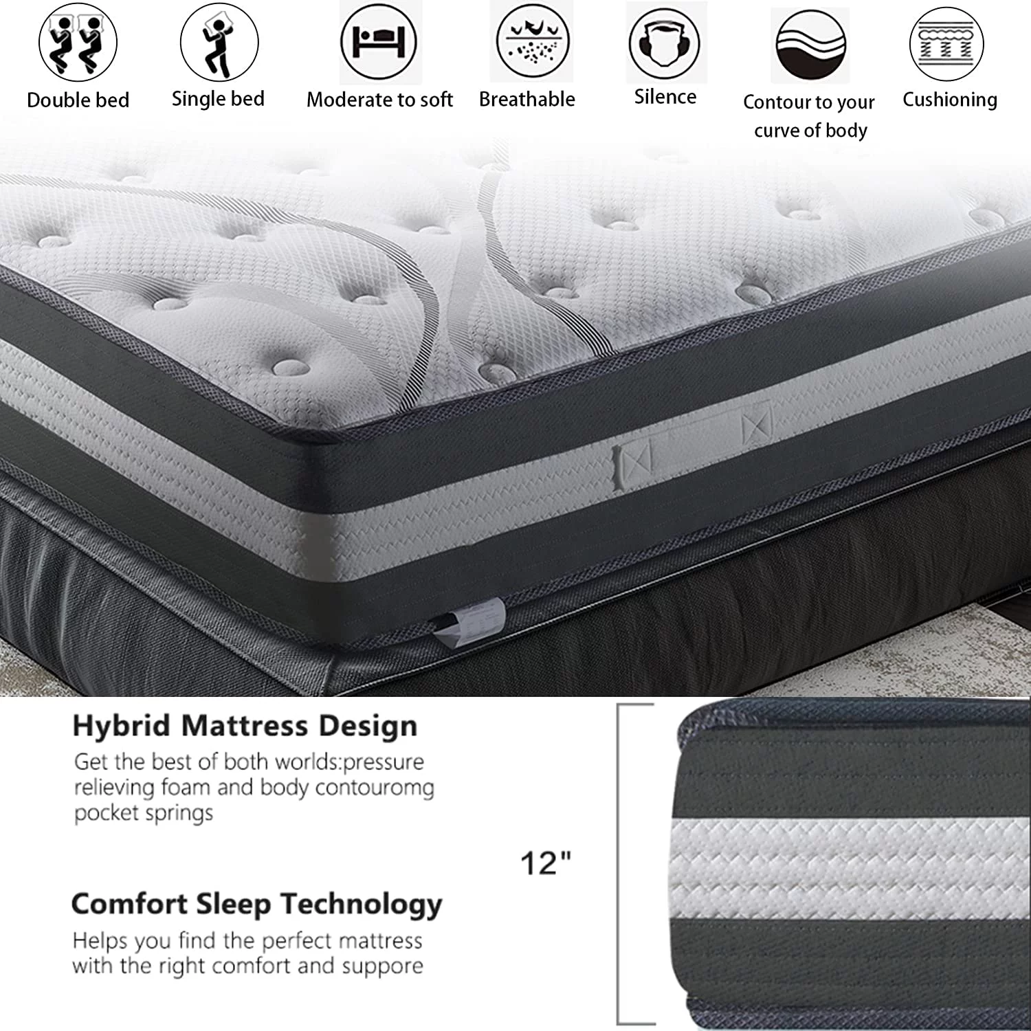 MOBICIA 12 Inch King Size Hybrid Pocket Spring Mattress with Individually Pocket Spring System/Wave and Anti-fire Foam