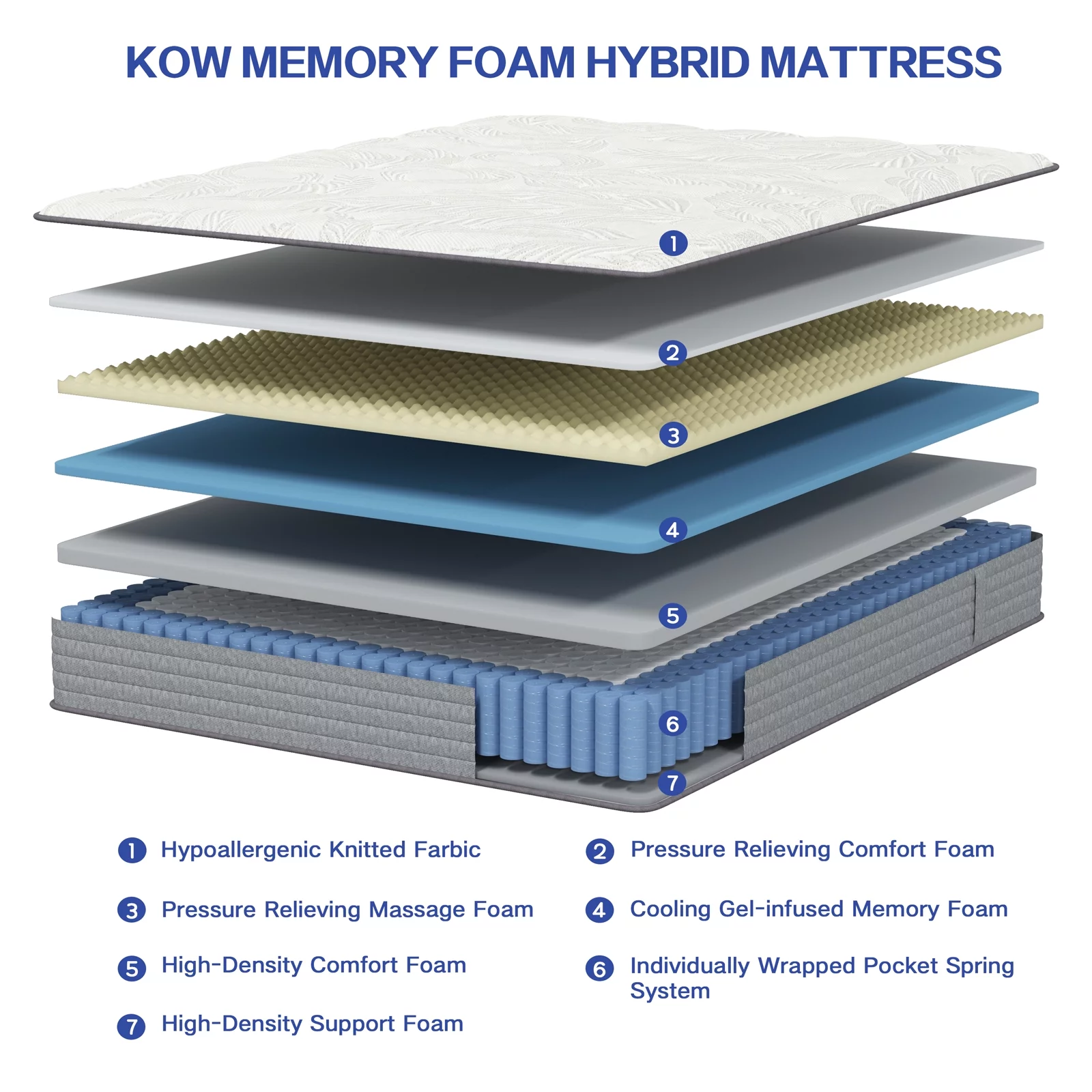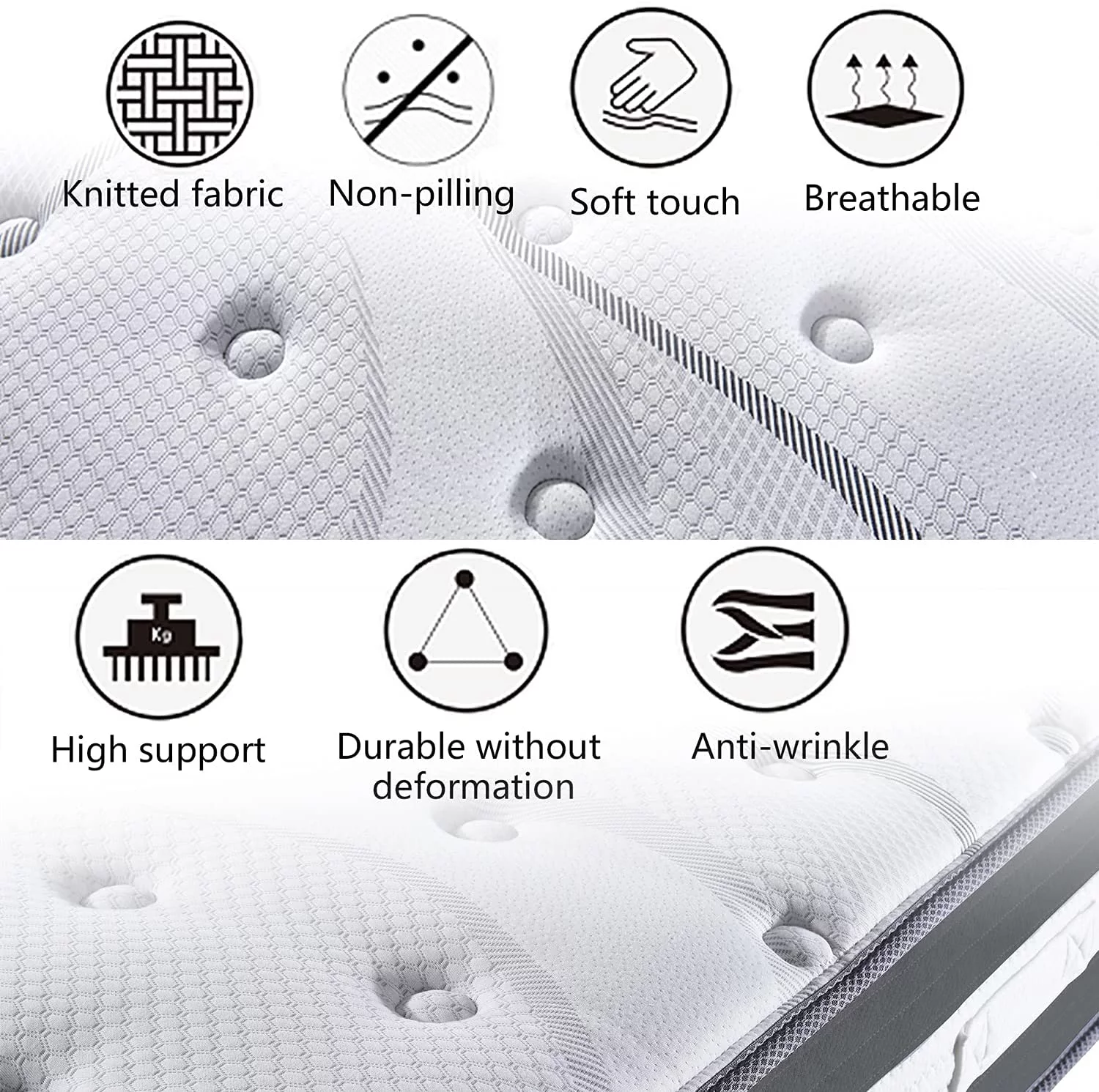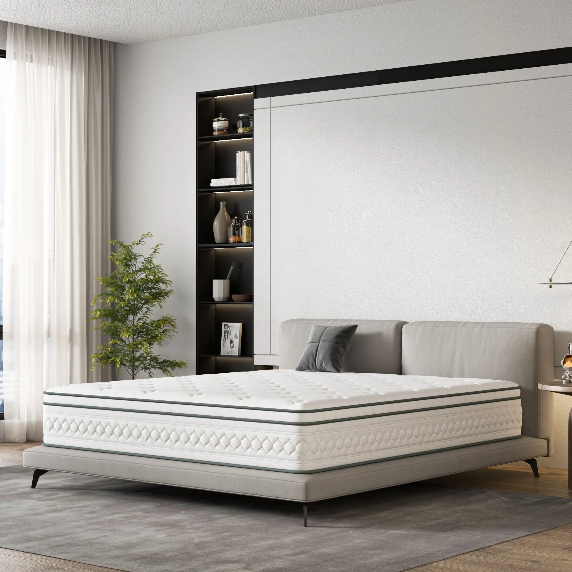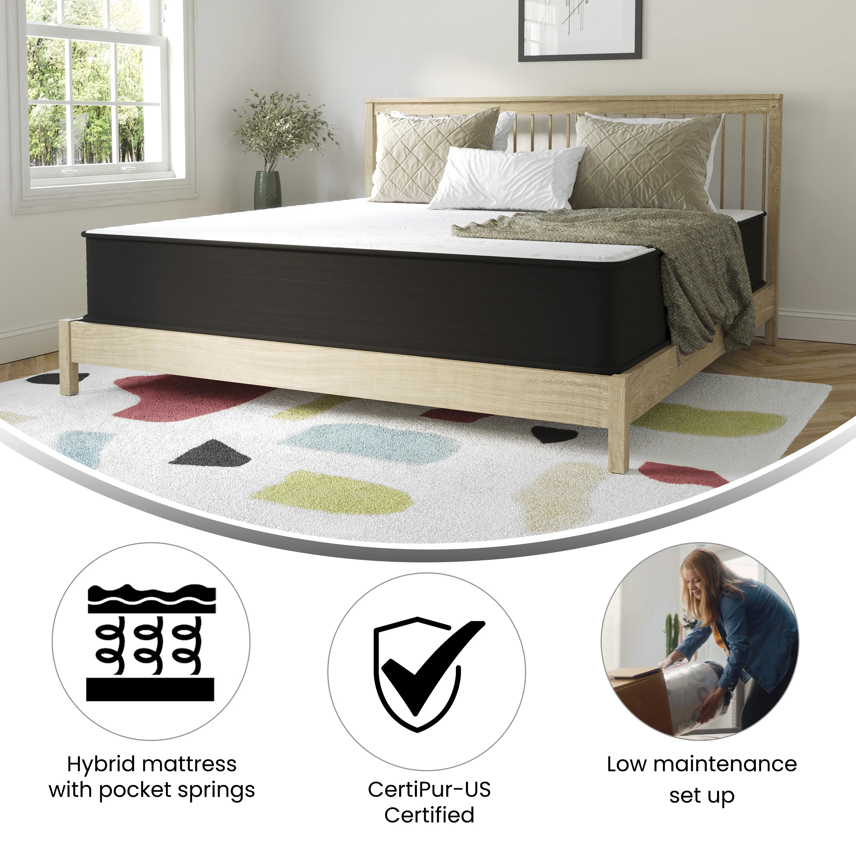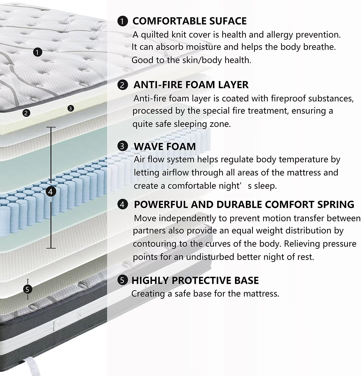 MOBICIA 12 Inch King Size Hybrid Pocket Spring Mattress with Individually Pocket Spring System/Wave and Anti-fire Foam