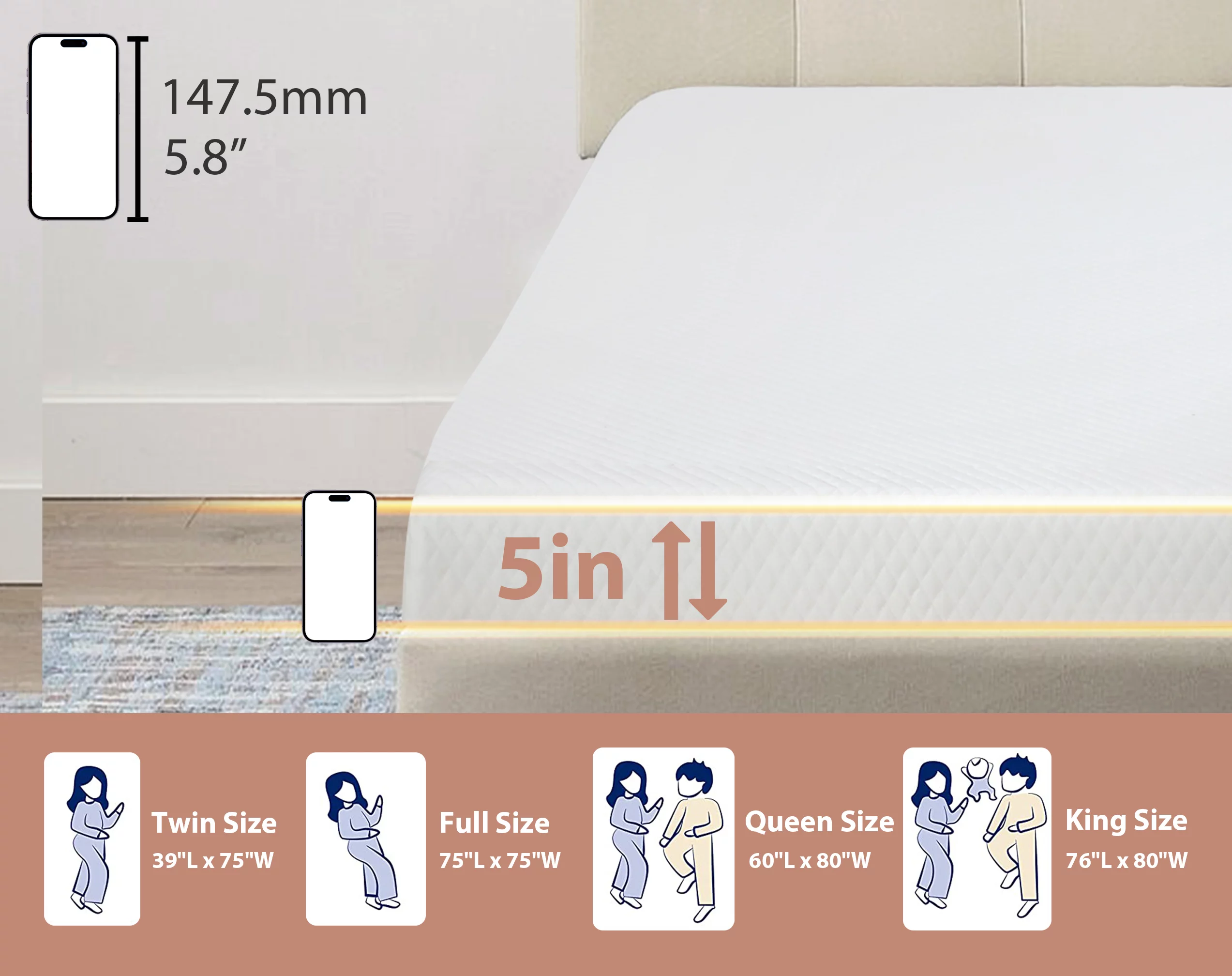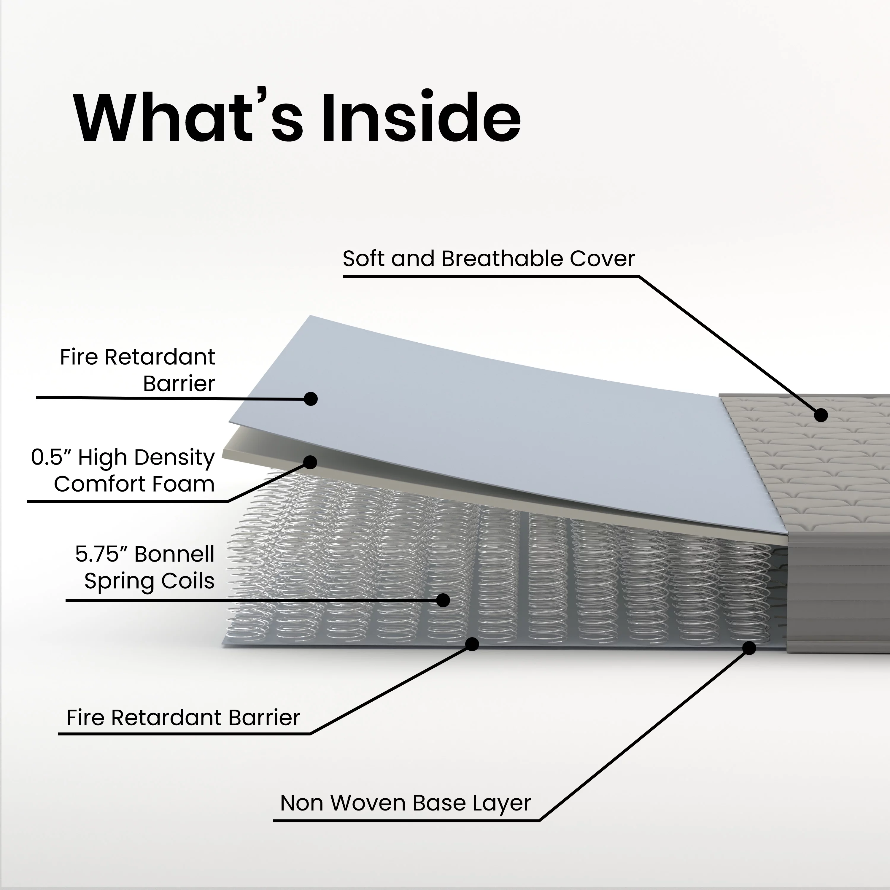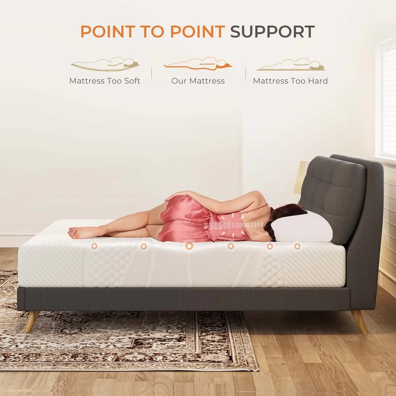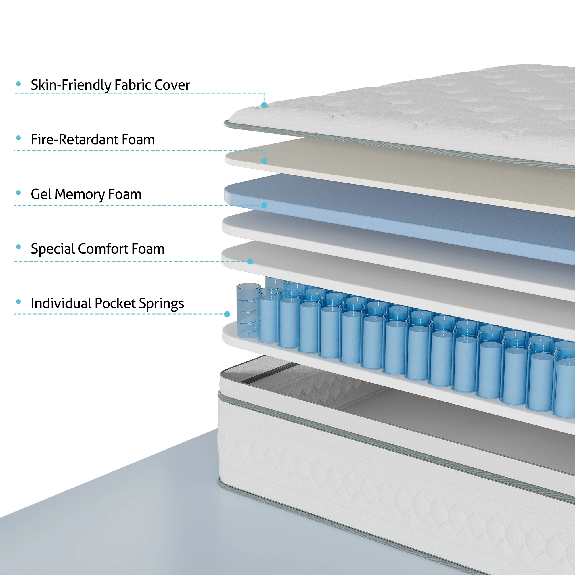 MOBICIA 12 Inch King Size Hybrid Pocket Spring Mattress with Individually Pocket Spring System/Wave and Anti-fire Foam