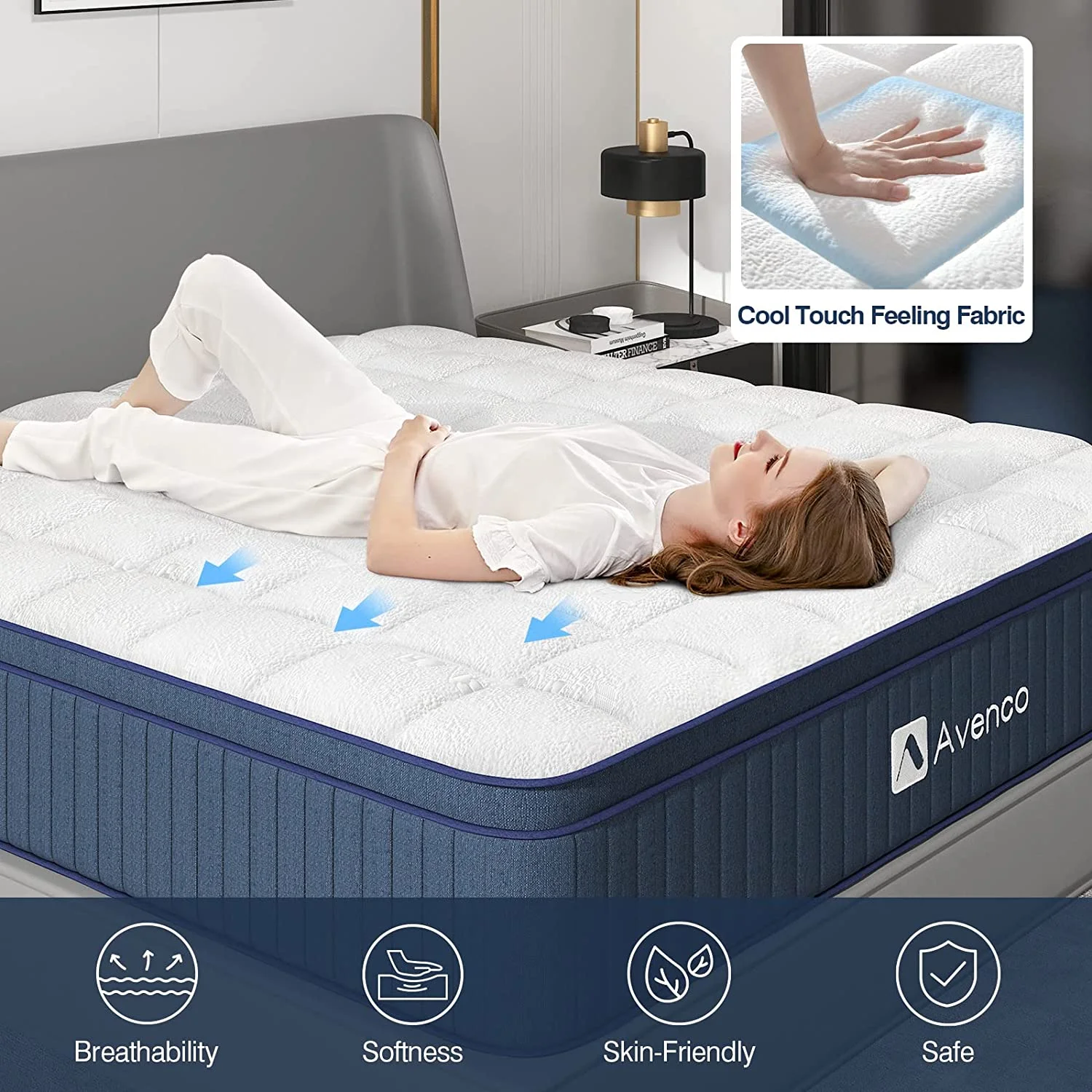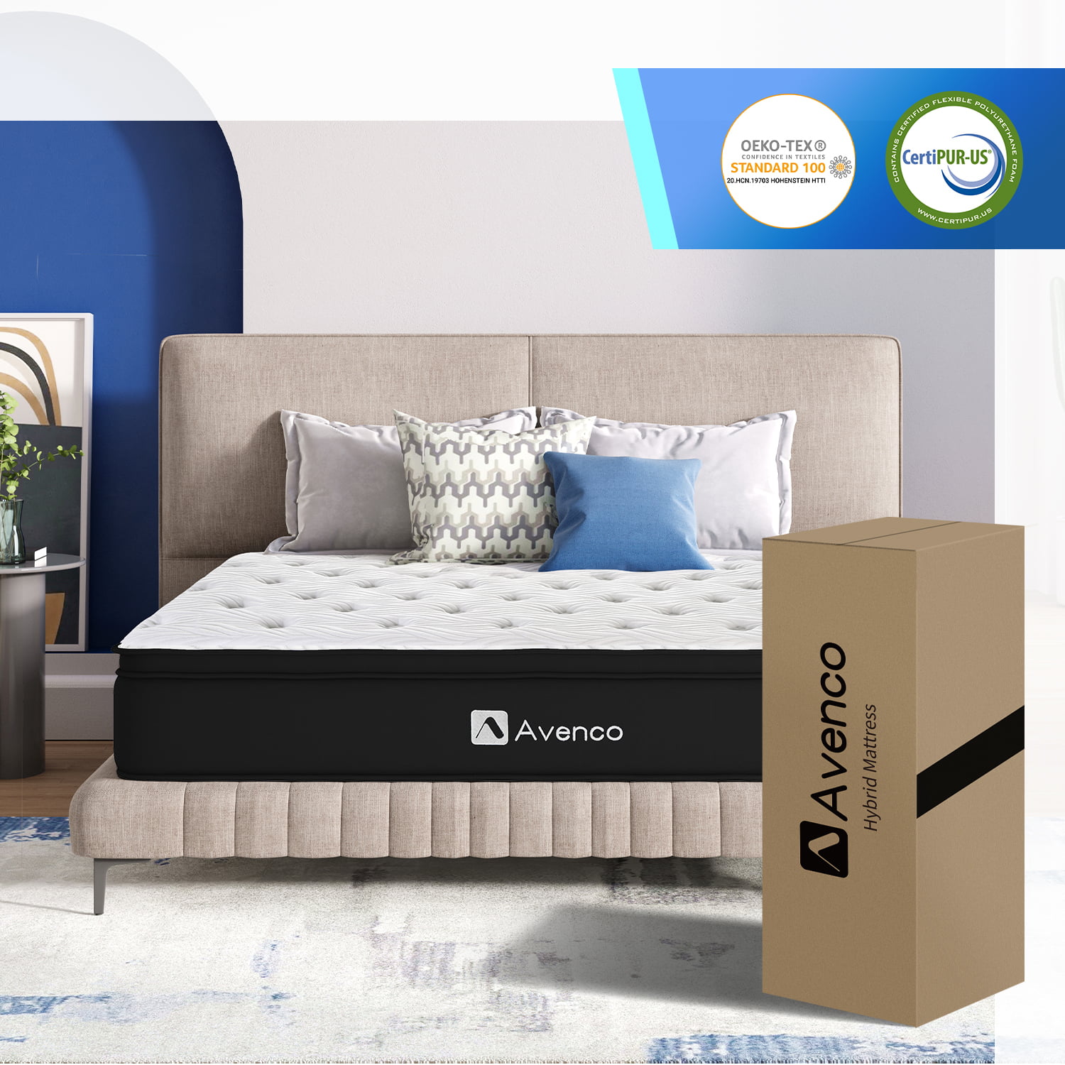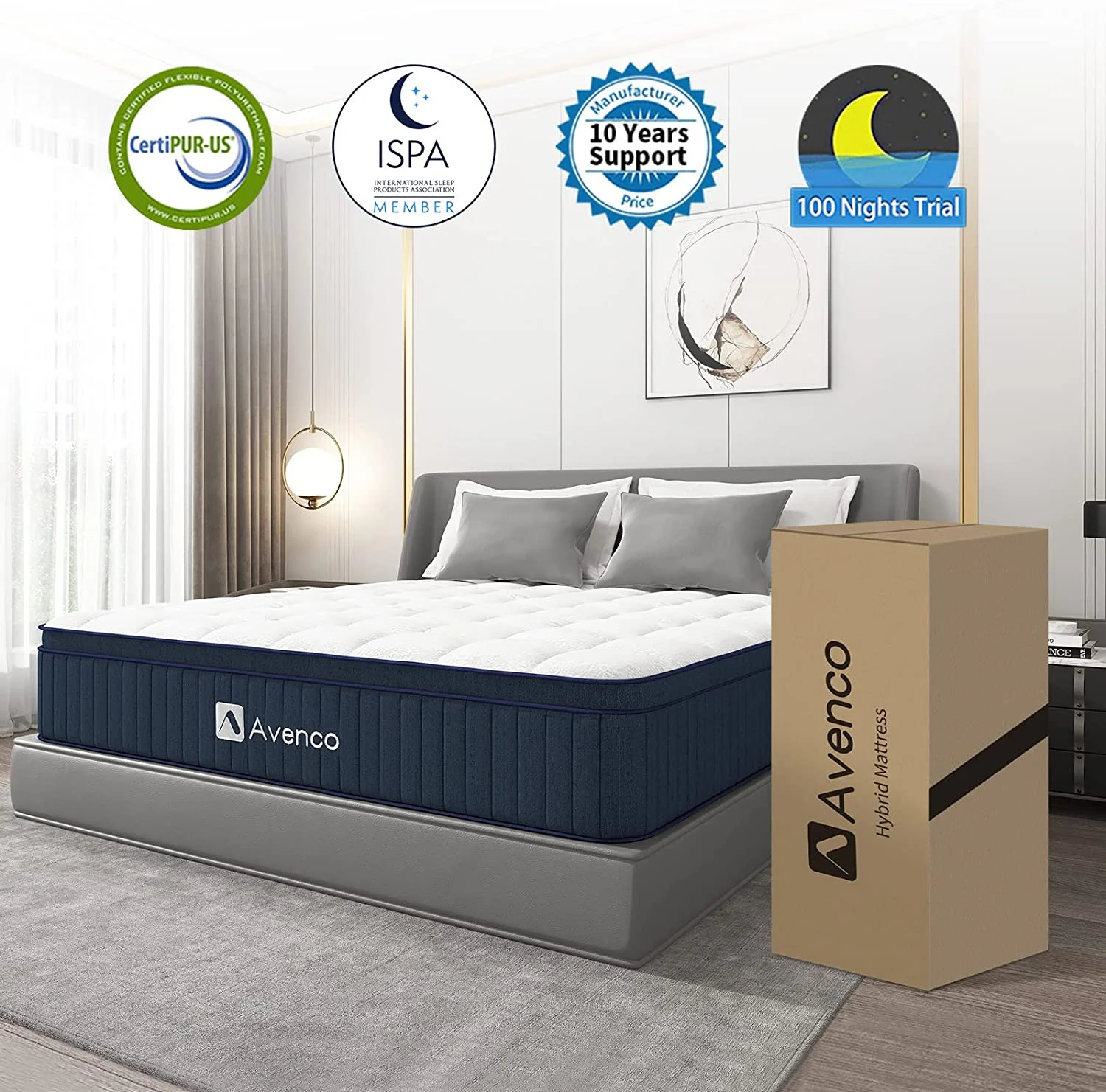 Avenco 10'' King Size Mattresses, Pocket Spring Hybrid Mattress Gel Memory Foam Bed in a Box