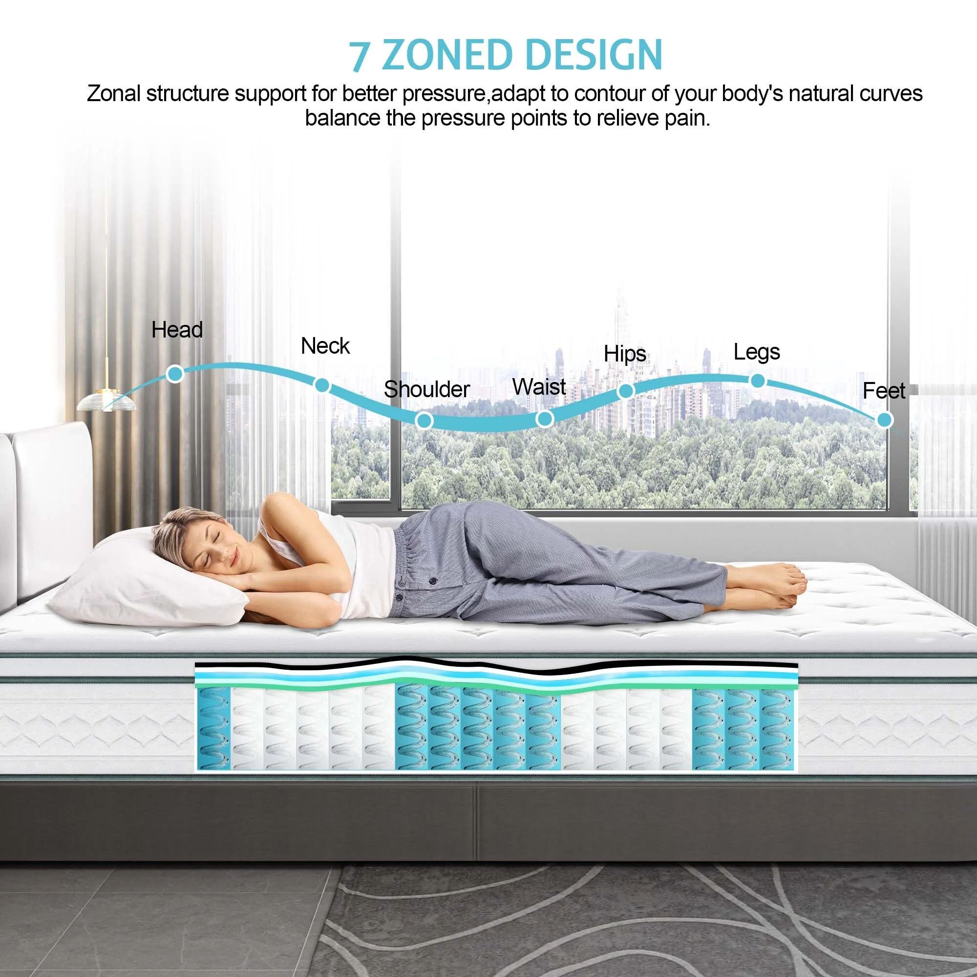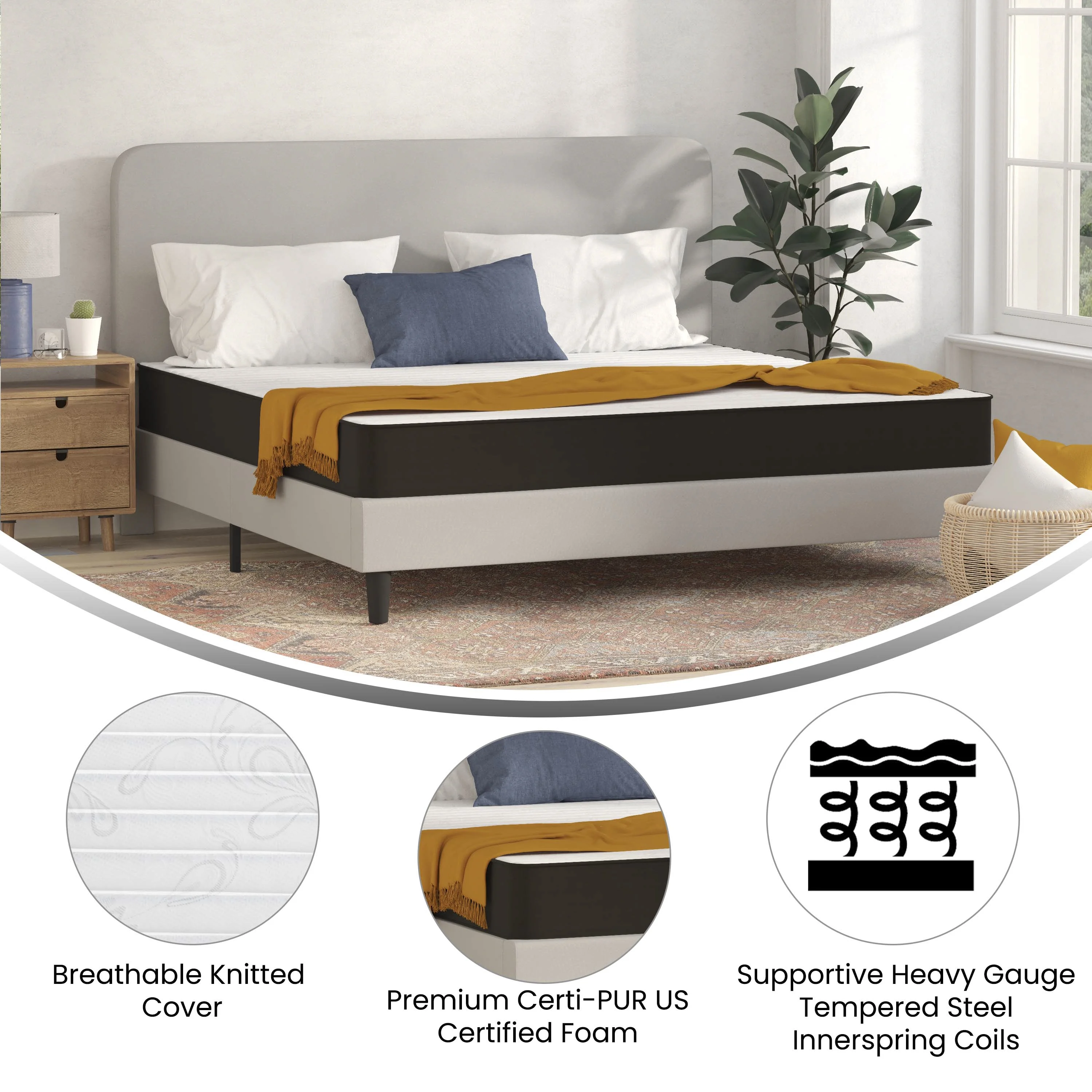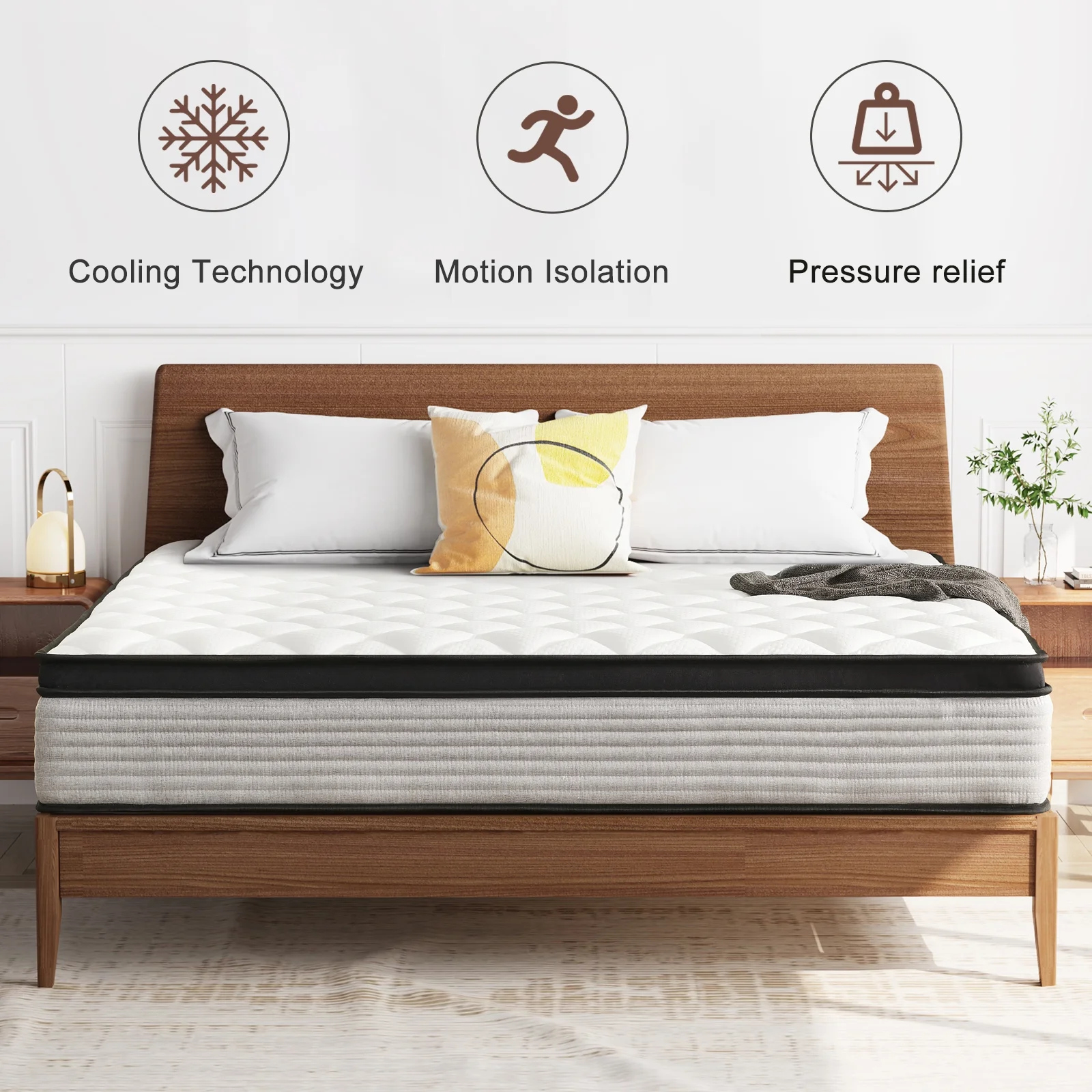 Queen Mattress 10" Madinog Medium Innerspring Mattress Hybrid Pocket Spring Bed in a Box