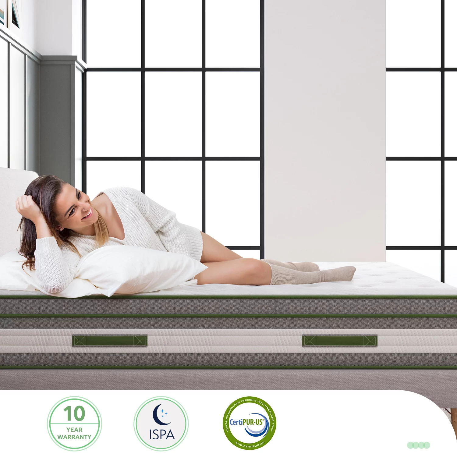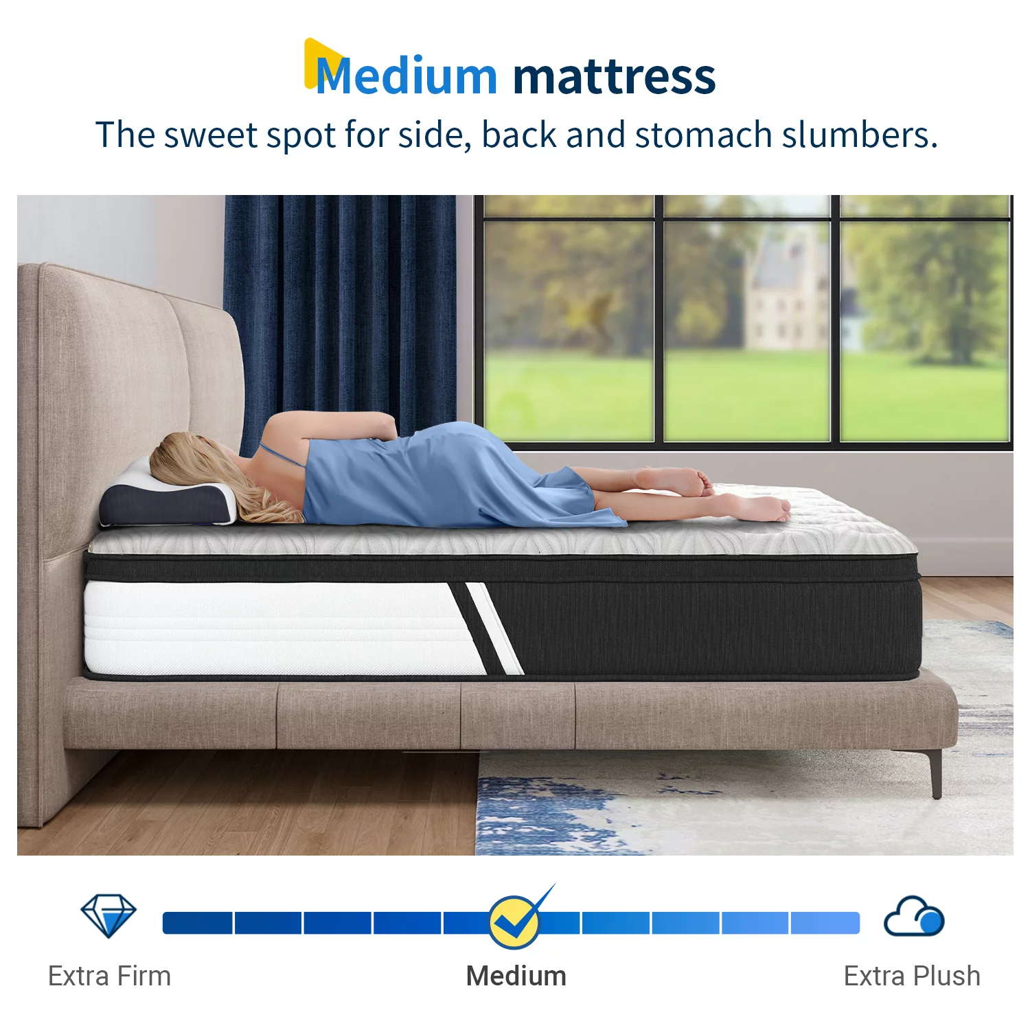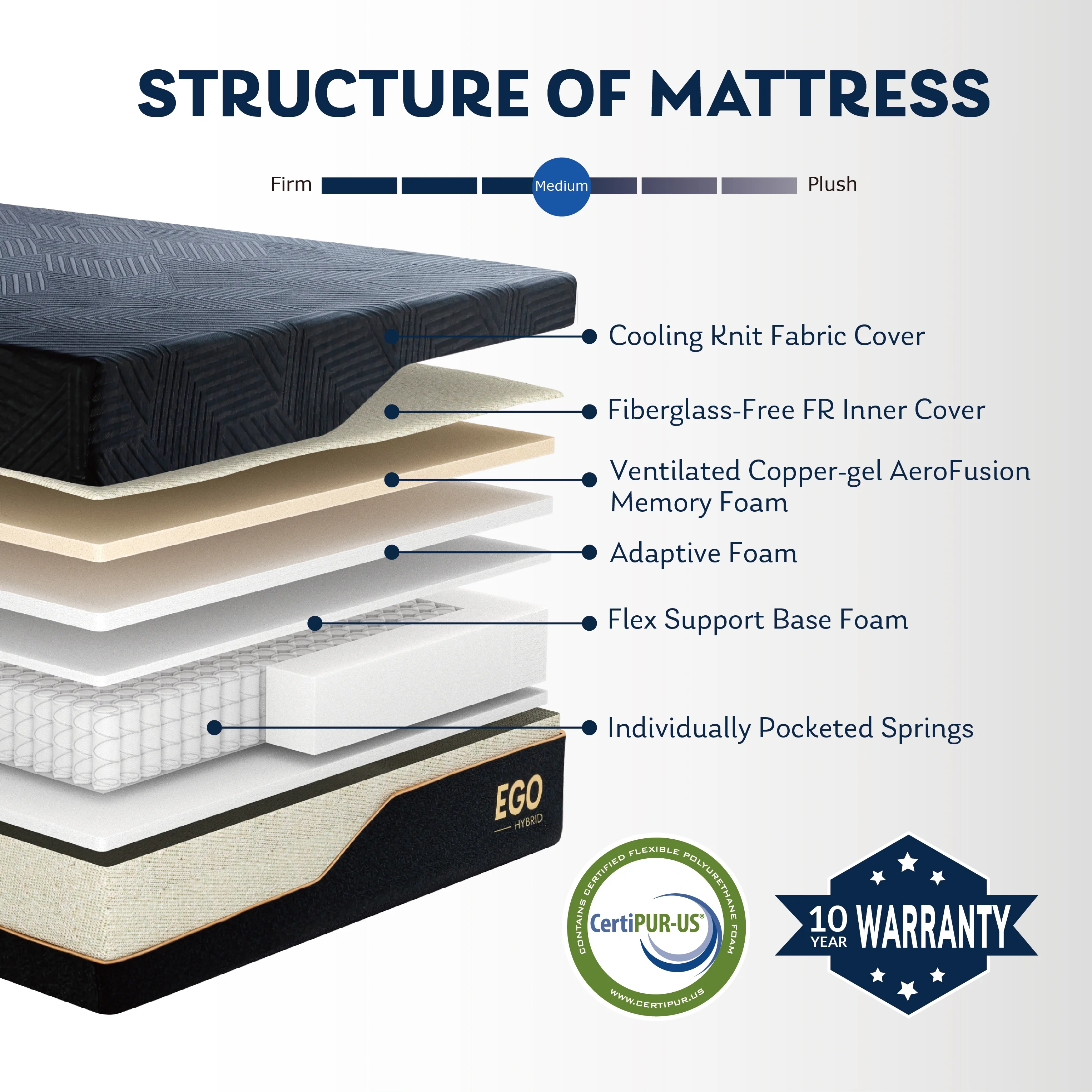 Queen Mattress 10" Madinog Medium Innerspring Mattress Hybrid Pocket Spring Bed in a Box