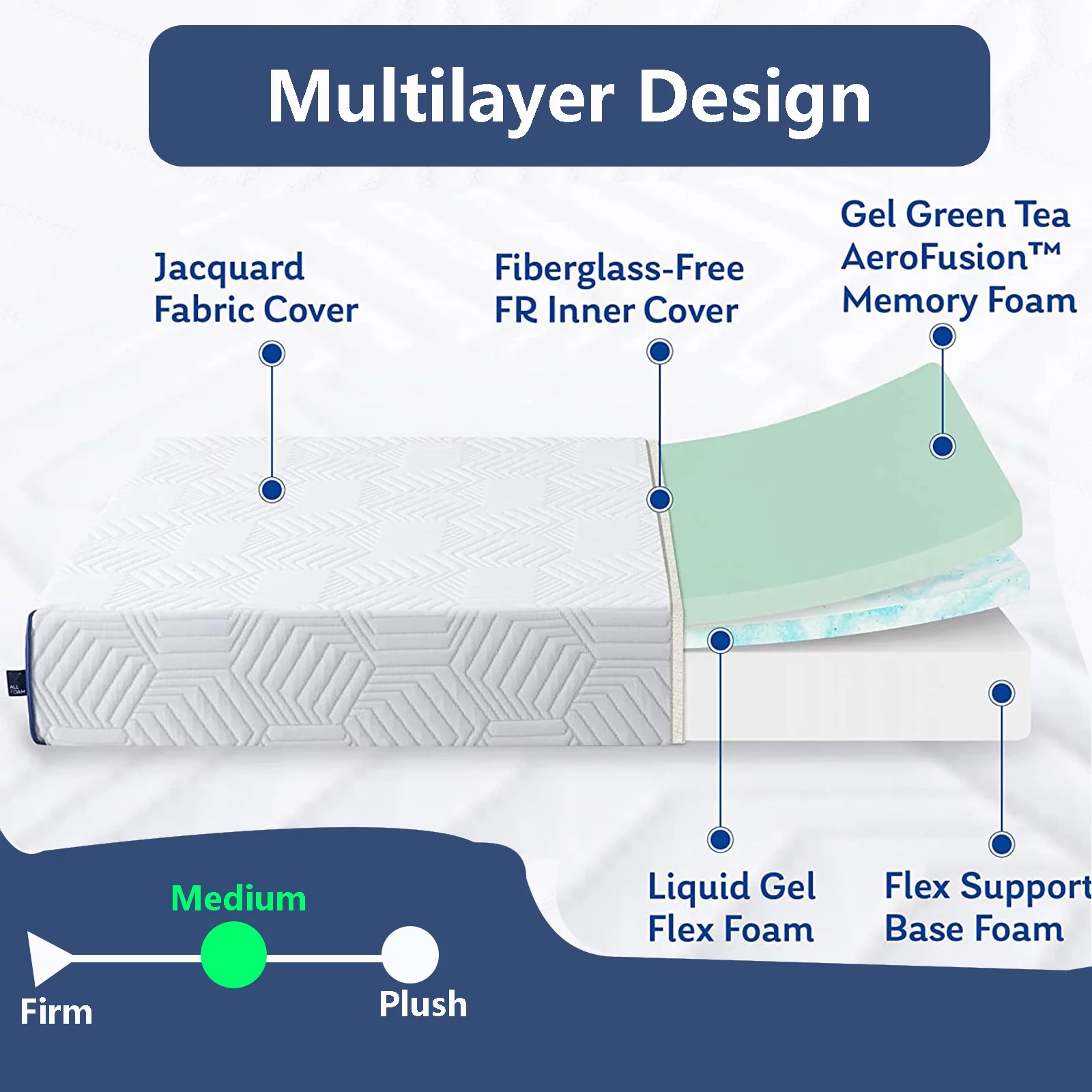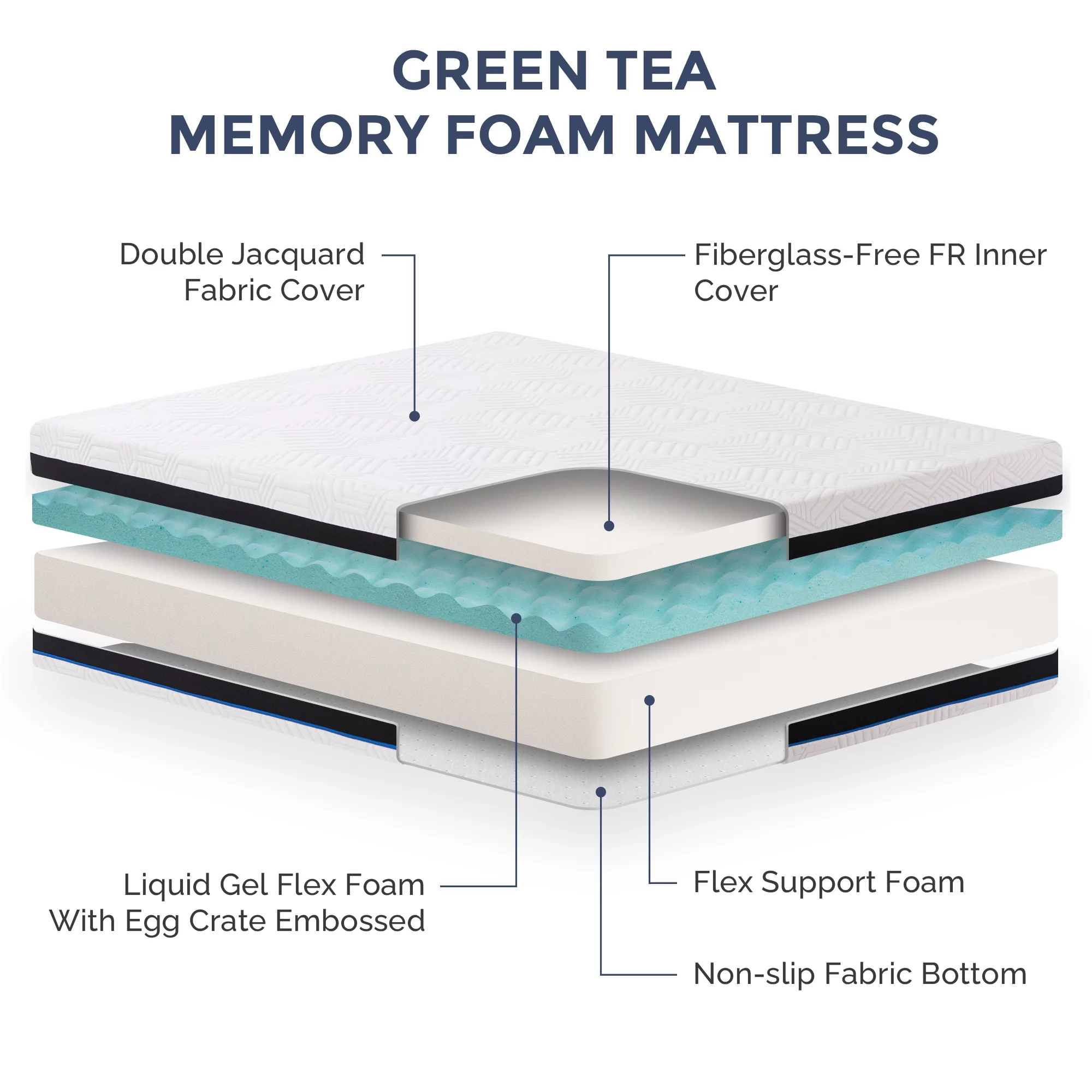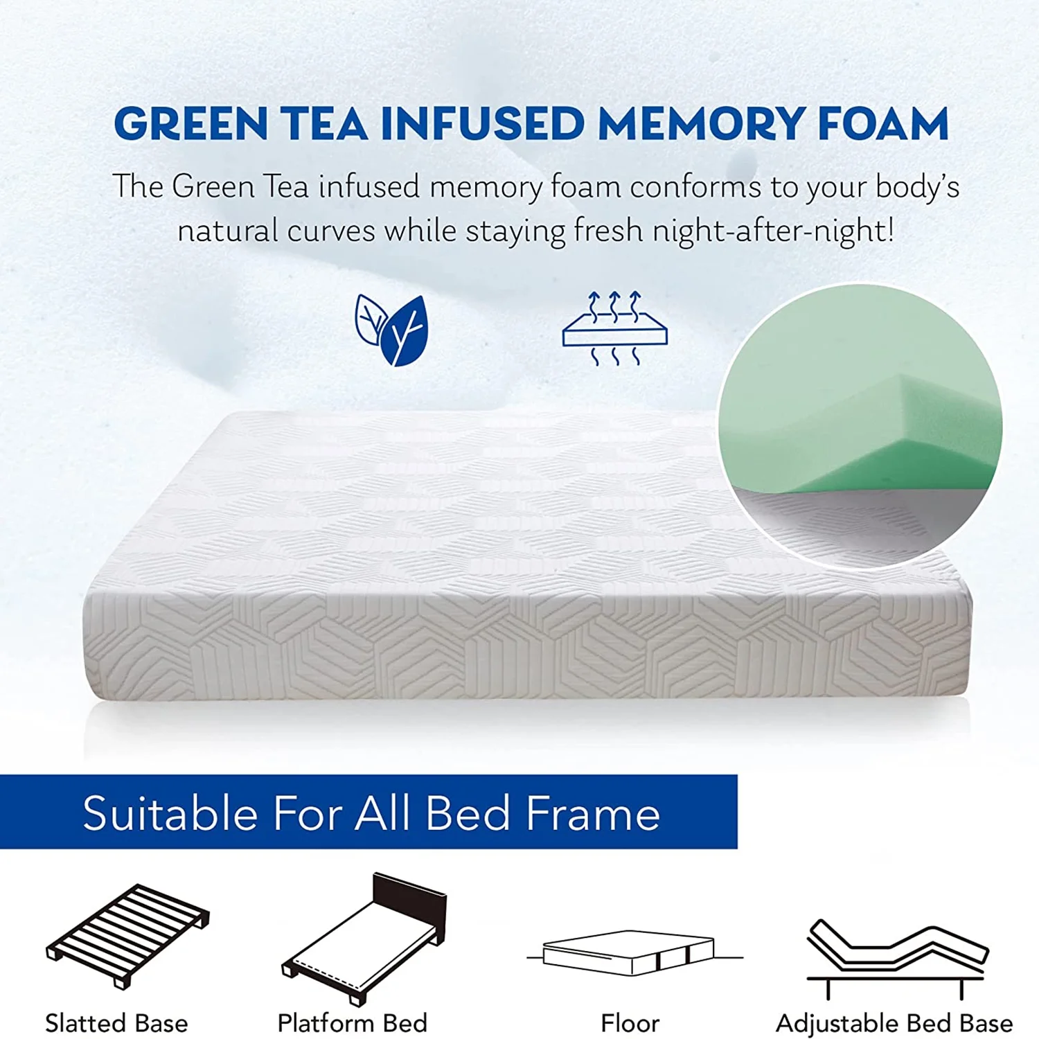 King Size Mattress, 12 inch Green Tea Memory Foam Mattress, Medium Feeling Mattresses with Cooling Gel, Made in USA