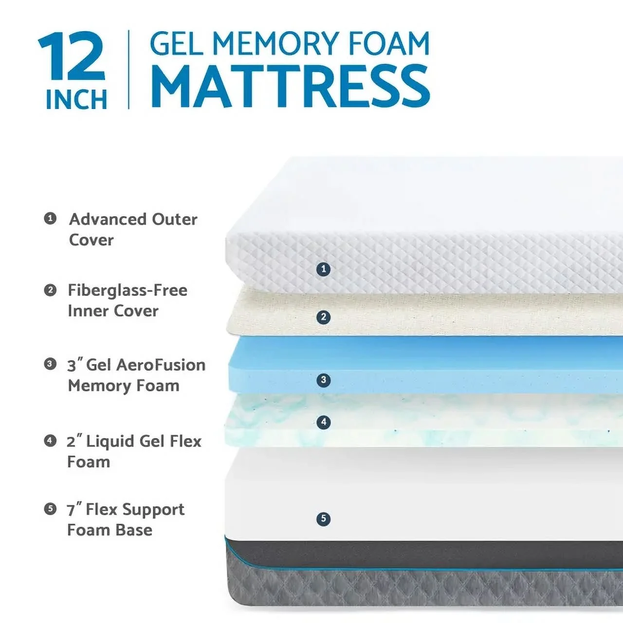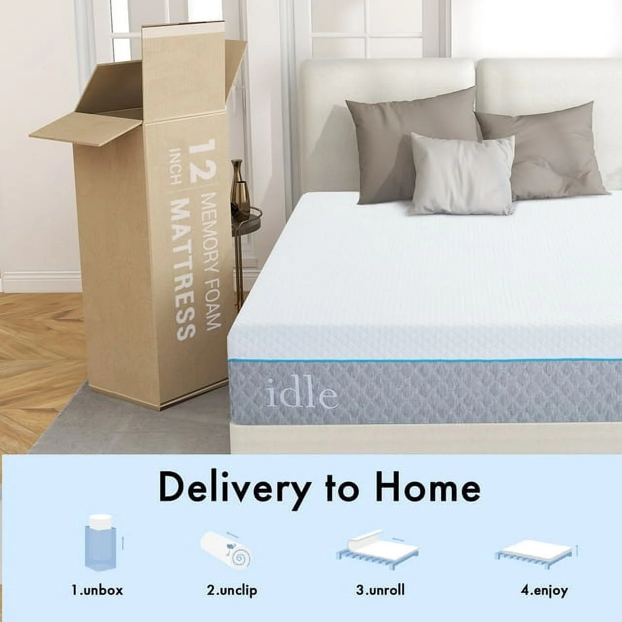 12 inch King Size Cooling Gel Memory Foam Mattress, Bed in a Box,Made in USA