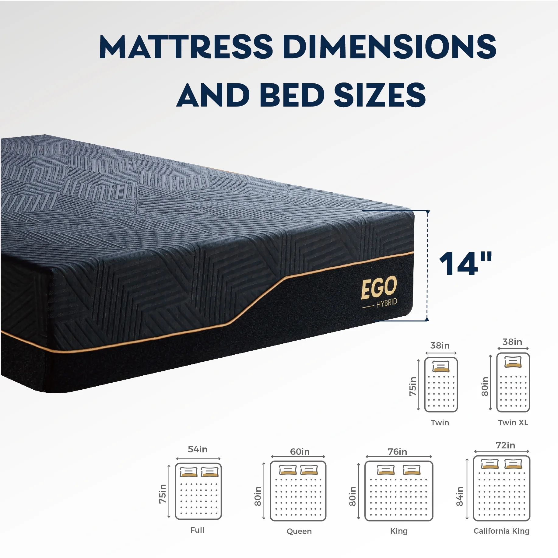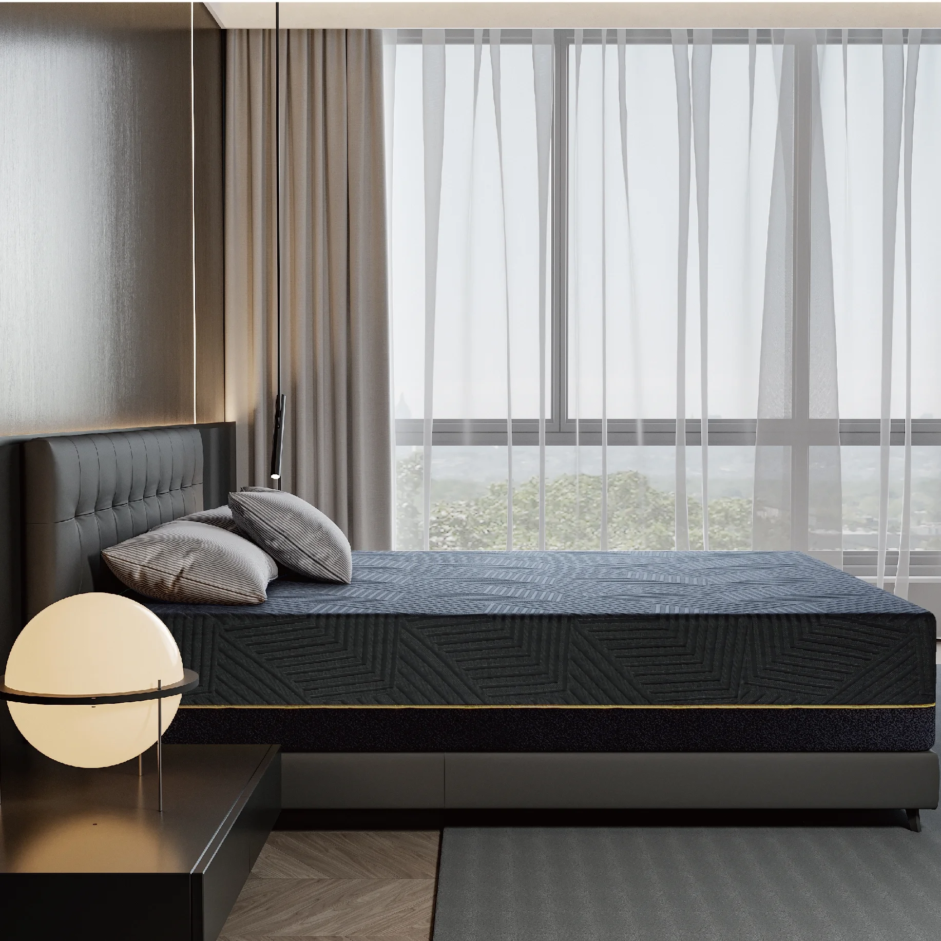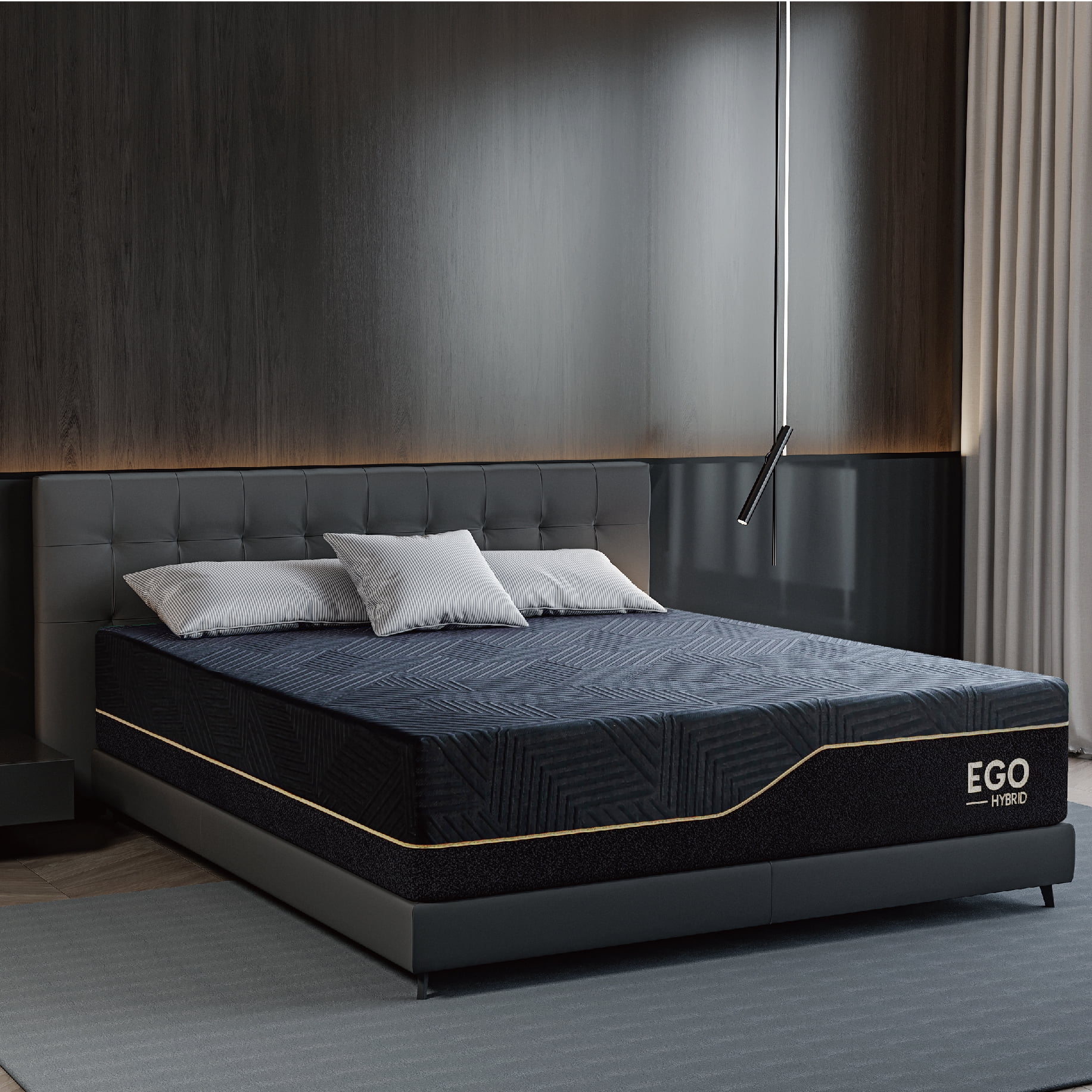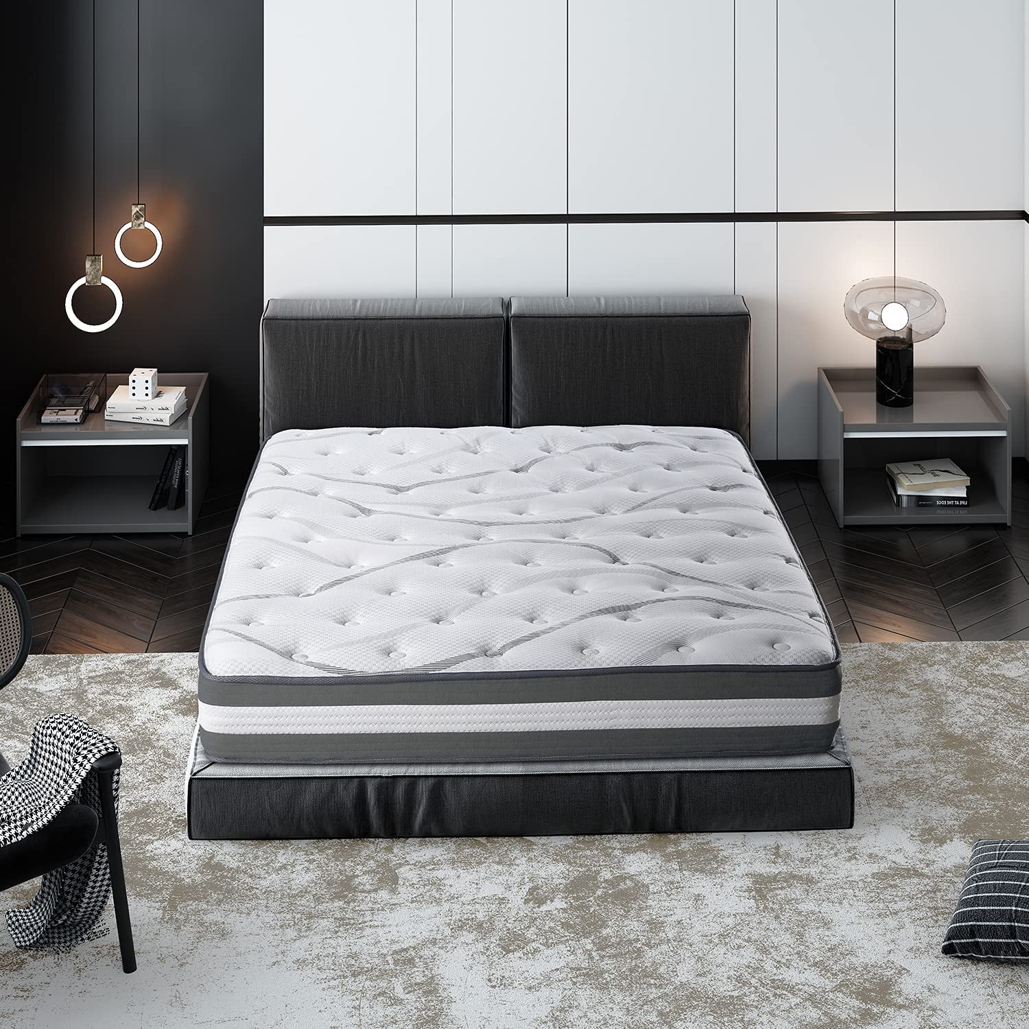 MLILY Ego Black 14 inch Hybrid Mattress, King Size Memory Foam Mattress and Pocket Spring