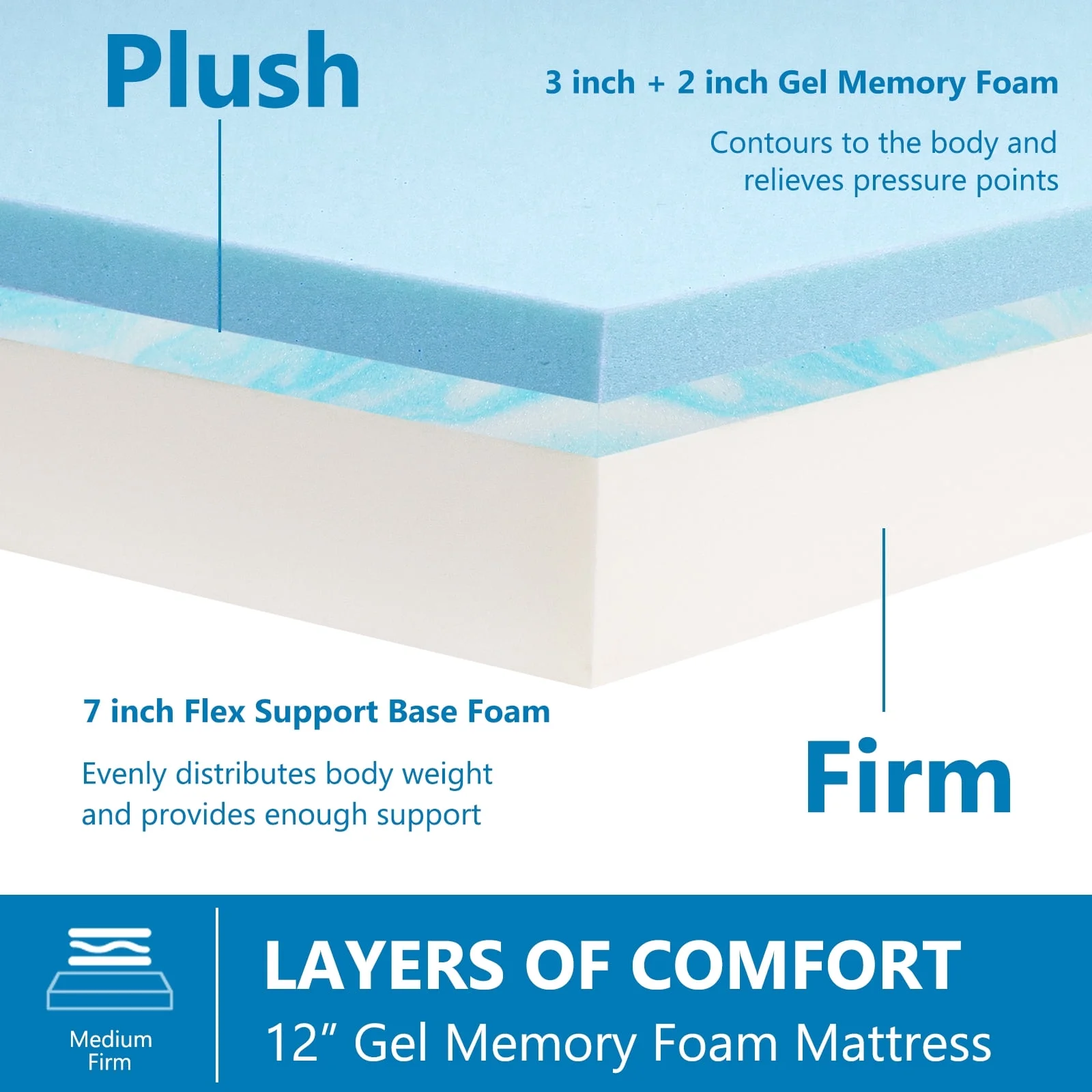 SWISH WEAVERS 12 Inch King Size Mattress, Gel Memory Foam Mattress Support and Pressure Relief, Medium Firmness,Made in USA
