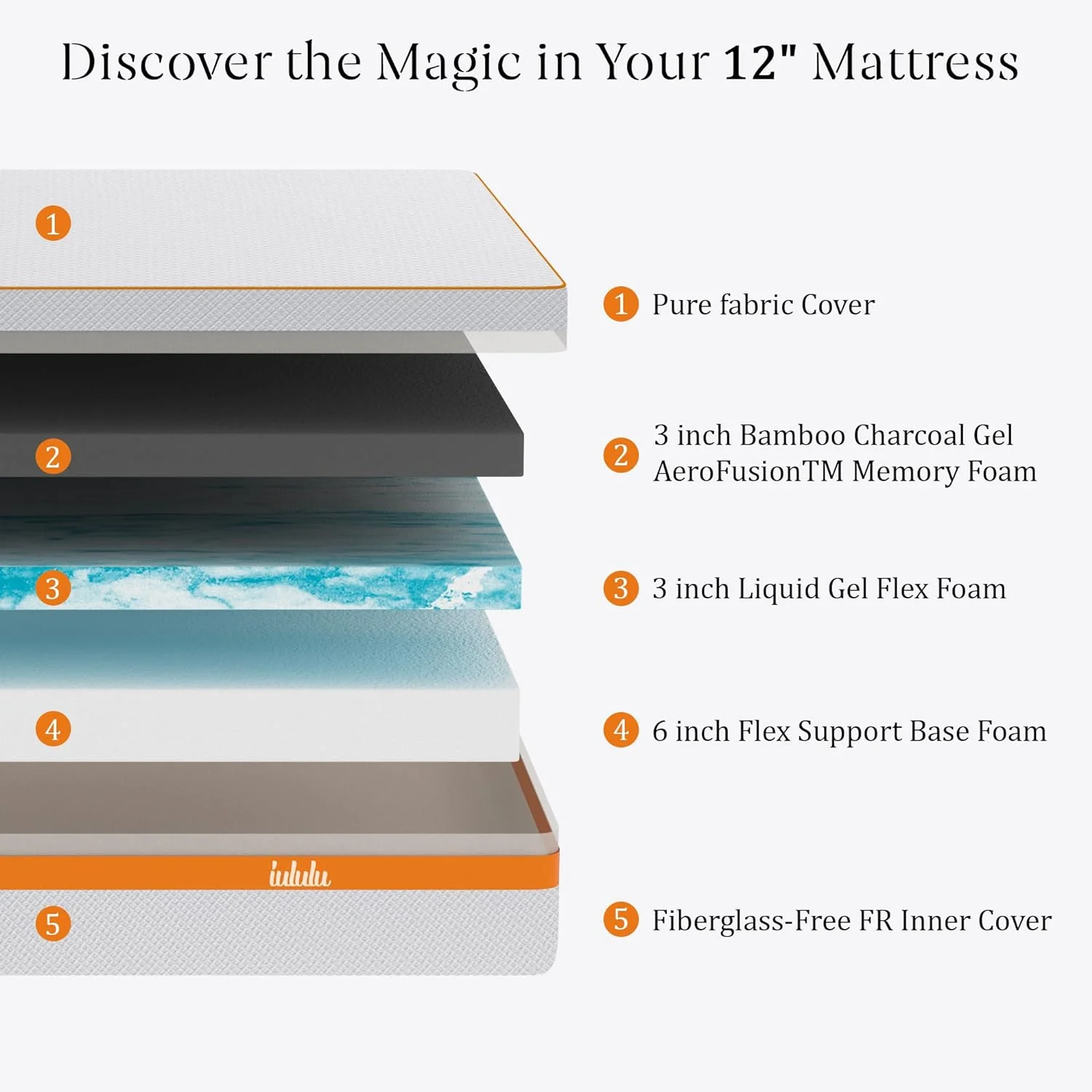 IULULU King Size Memory Foam Mattress 12 inch Bamboo Mattress in a Box, Pressure Relief Medium Firm