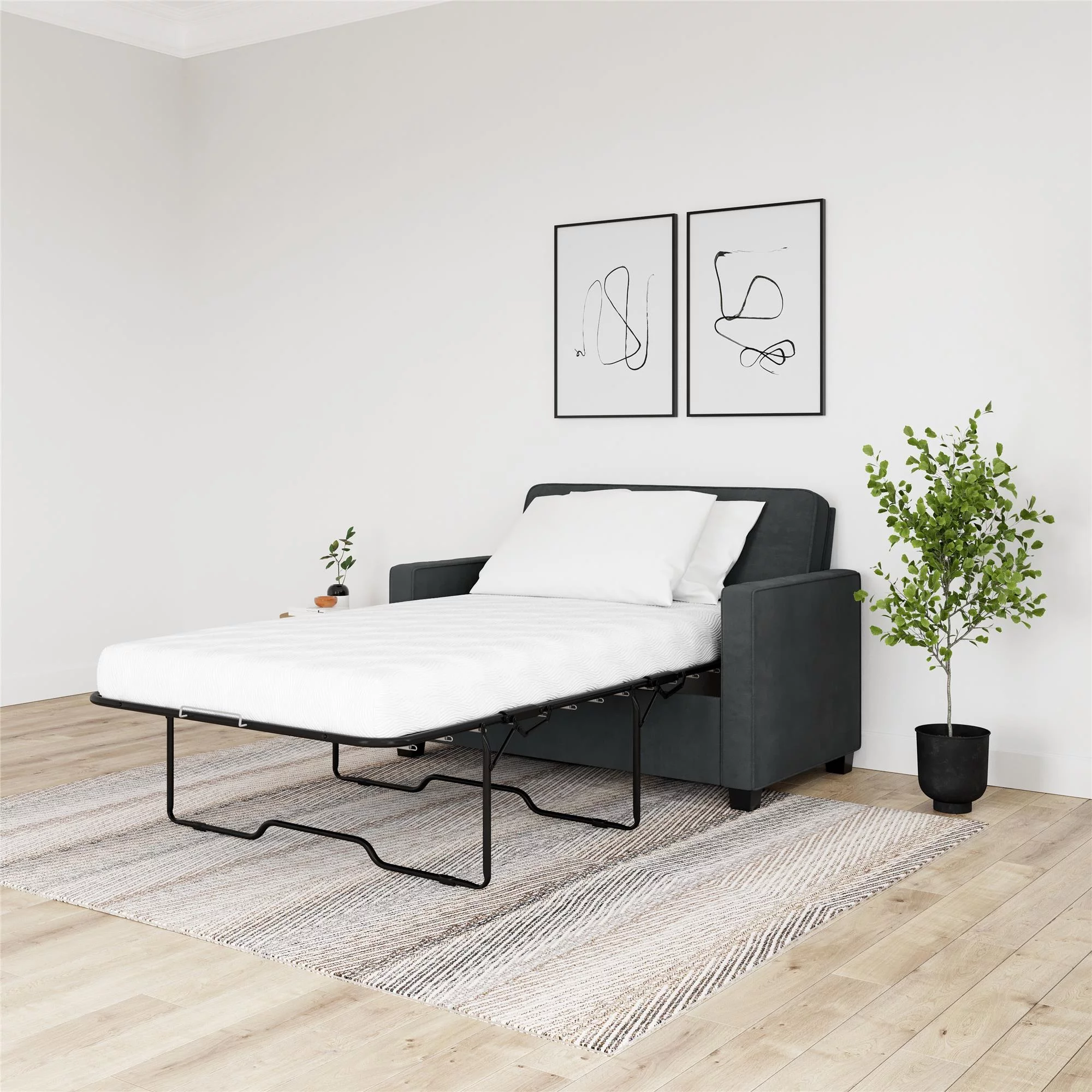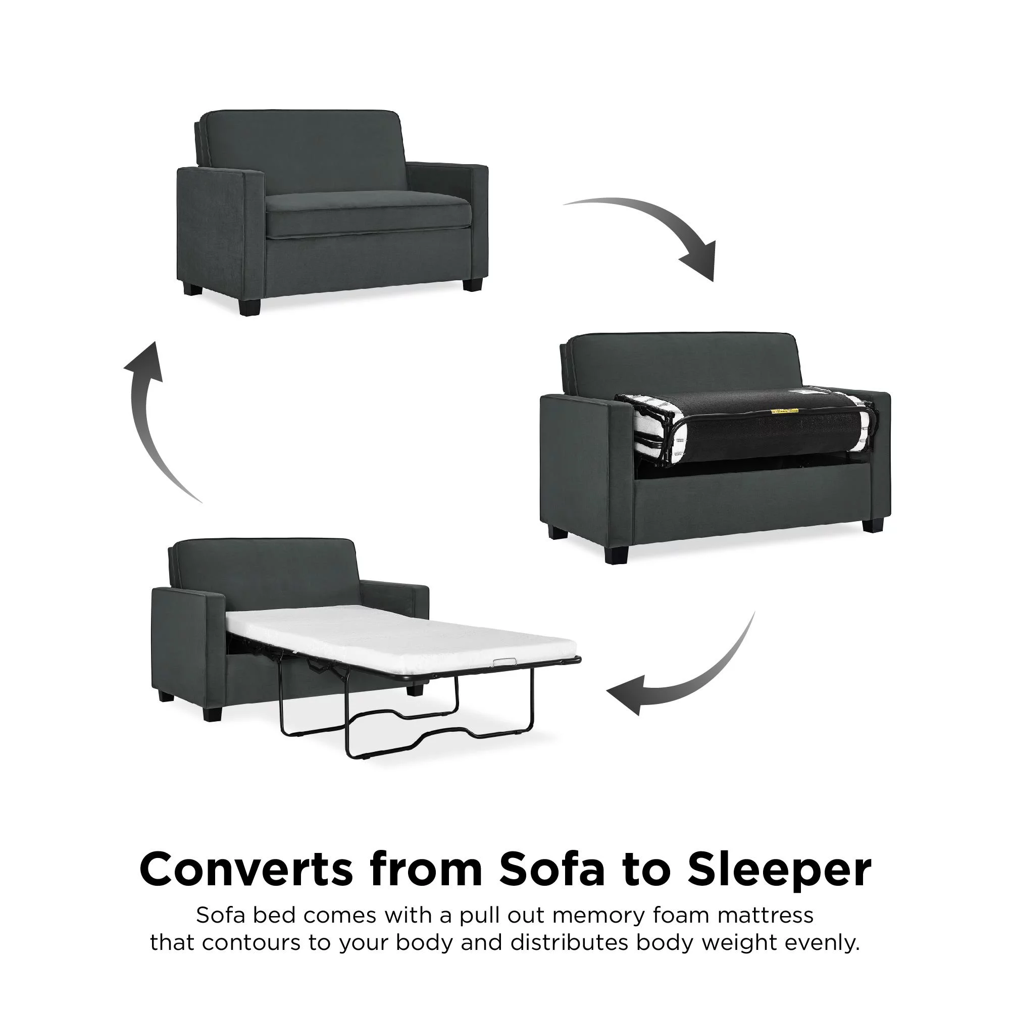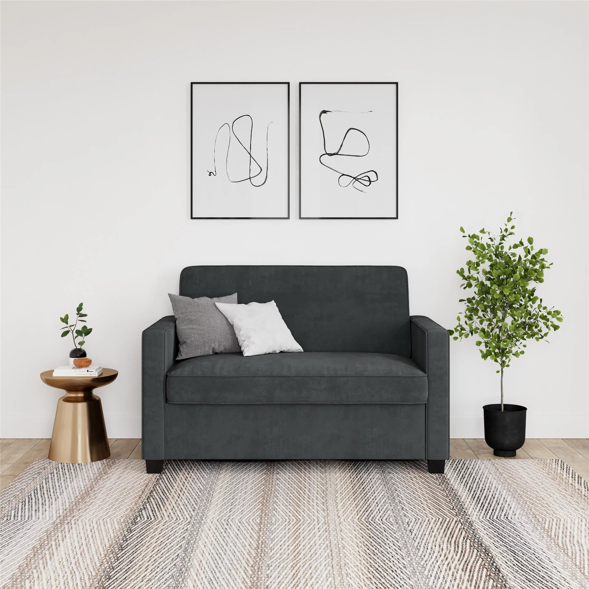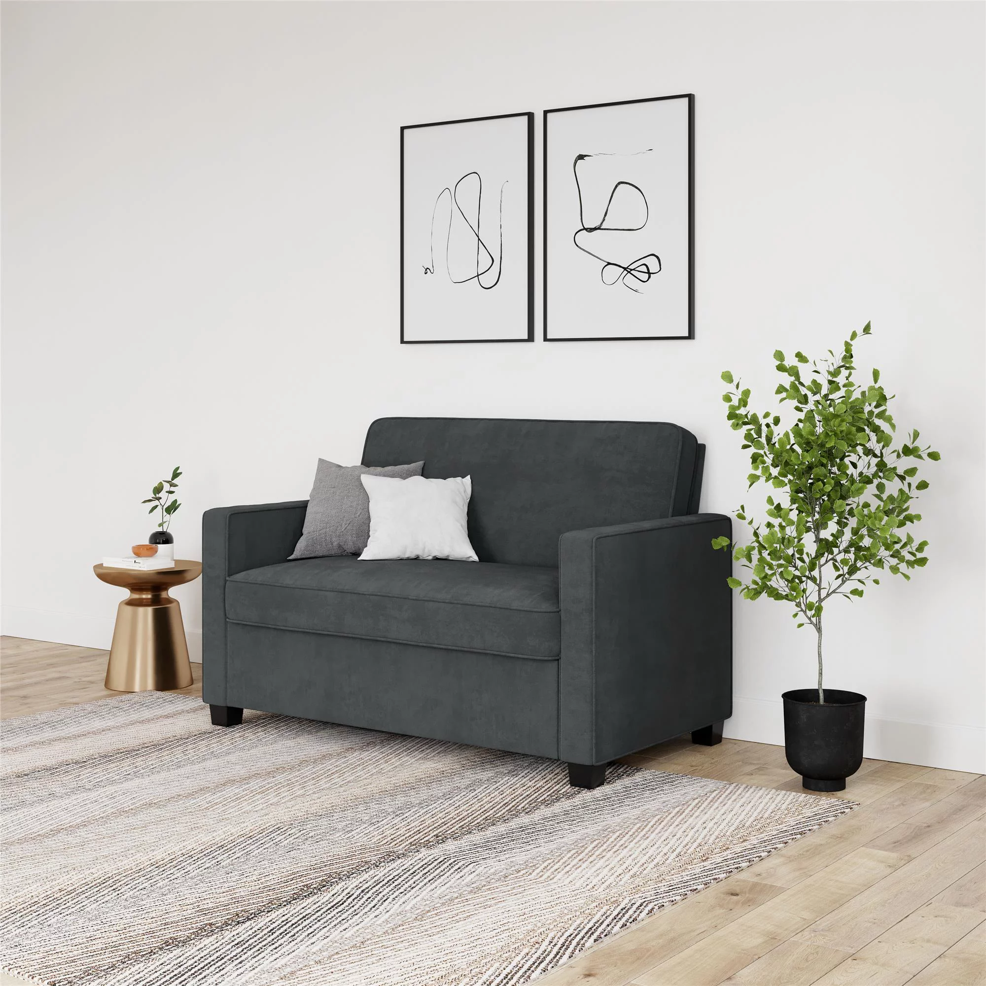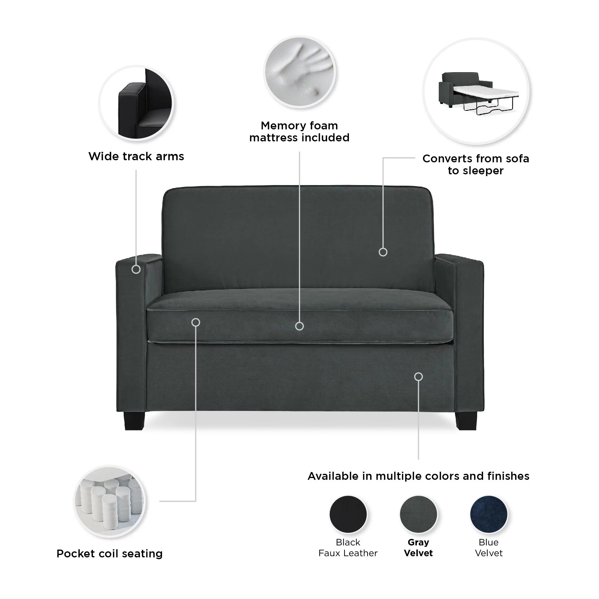 DHP Cooper Loveseat Sofa Sleeper with Twin Memory Foam Mattress, Gray Velvet