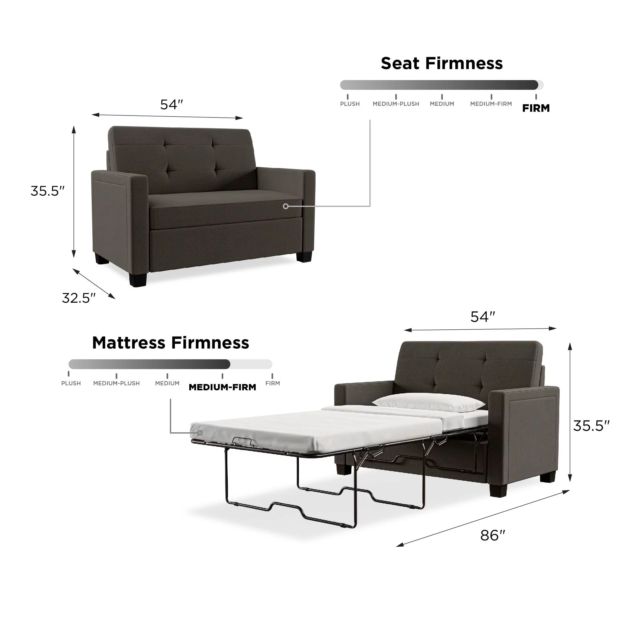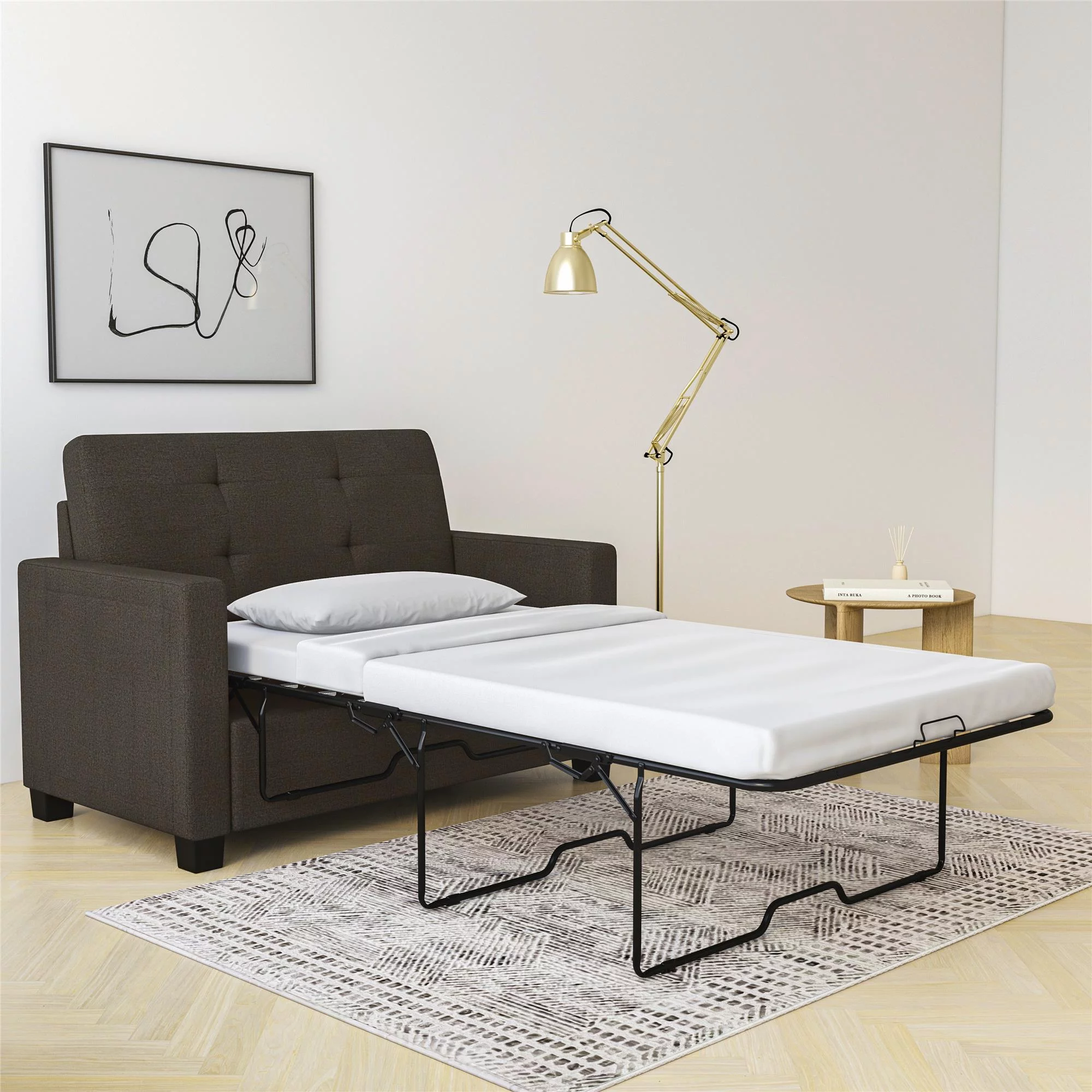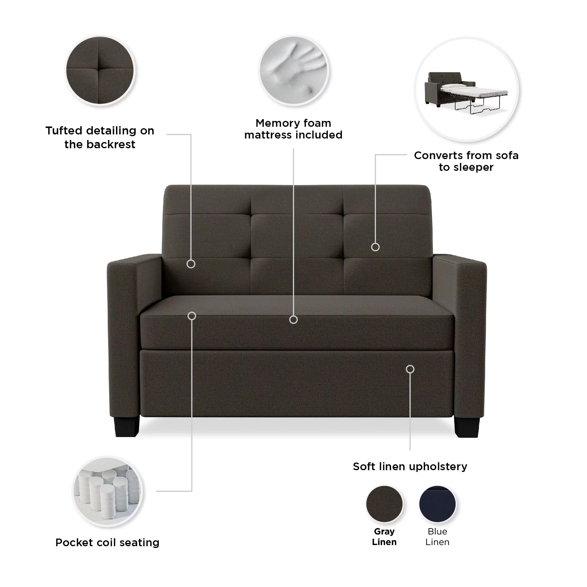 Better Homes & Gardens Porter Loveseat Sleeper Sofa with Twin Memory Foam Mattress, Gray Linen
