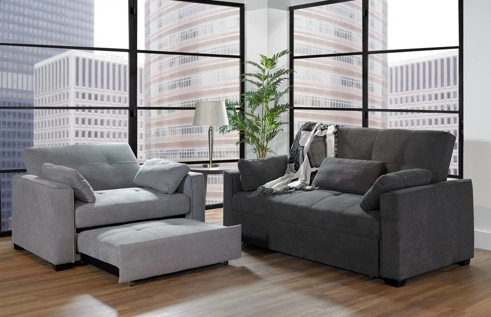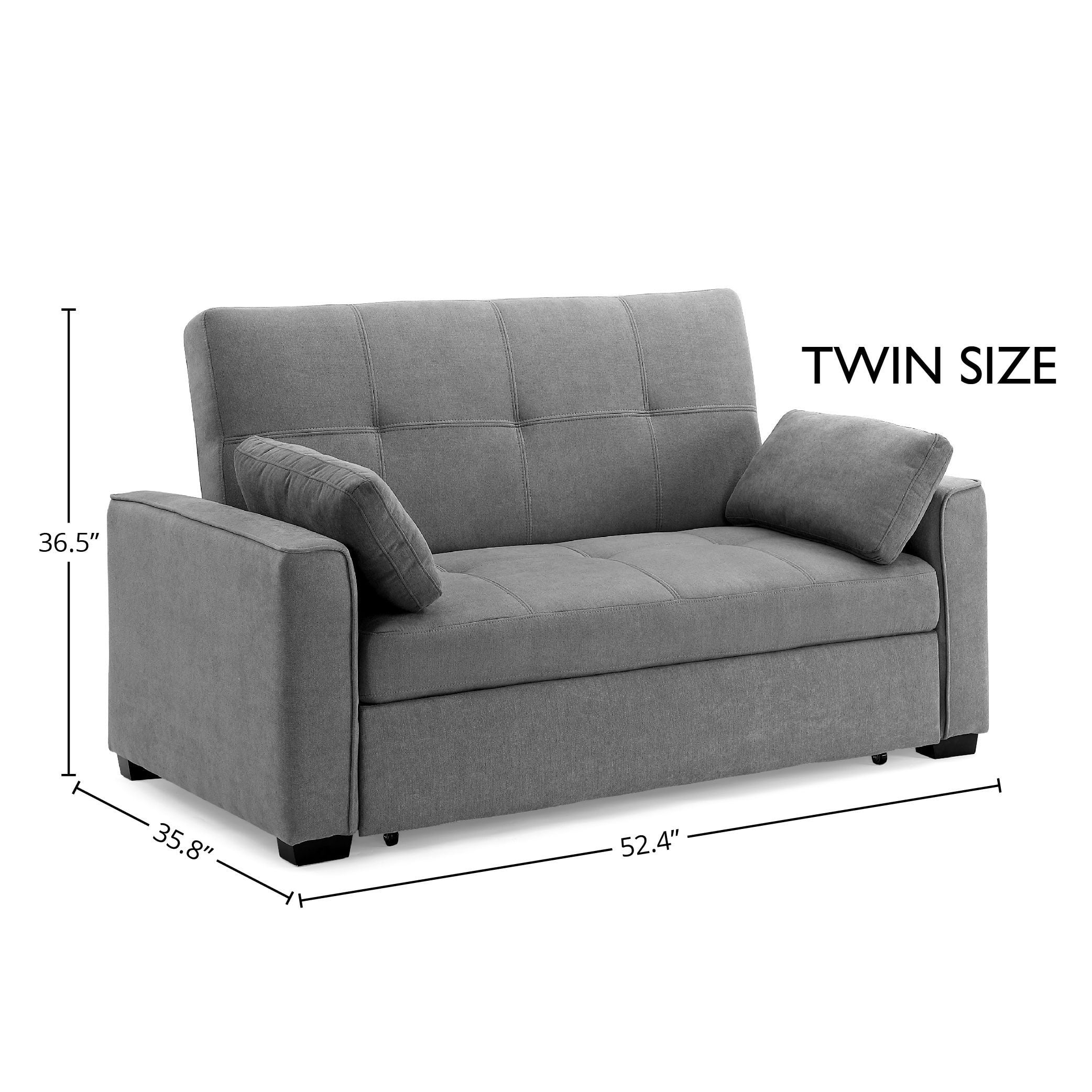 Nantucket Pull-Out Chenille Sleeper Sofa with Accent Pillows, Twin Size, Light Gray