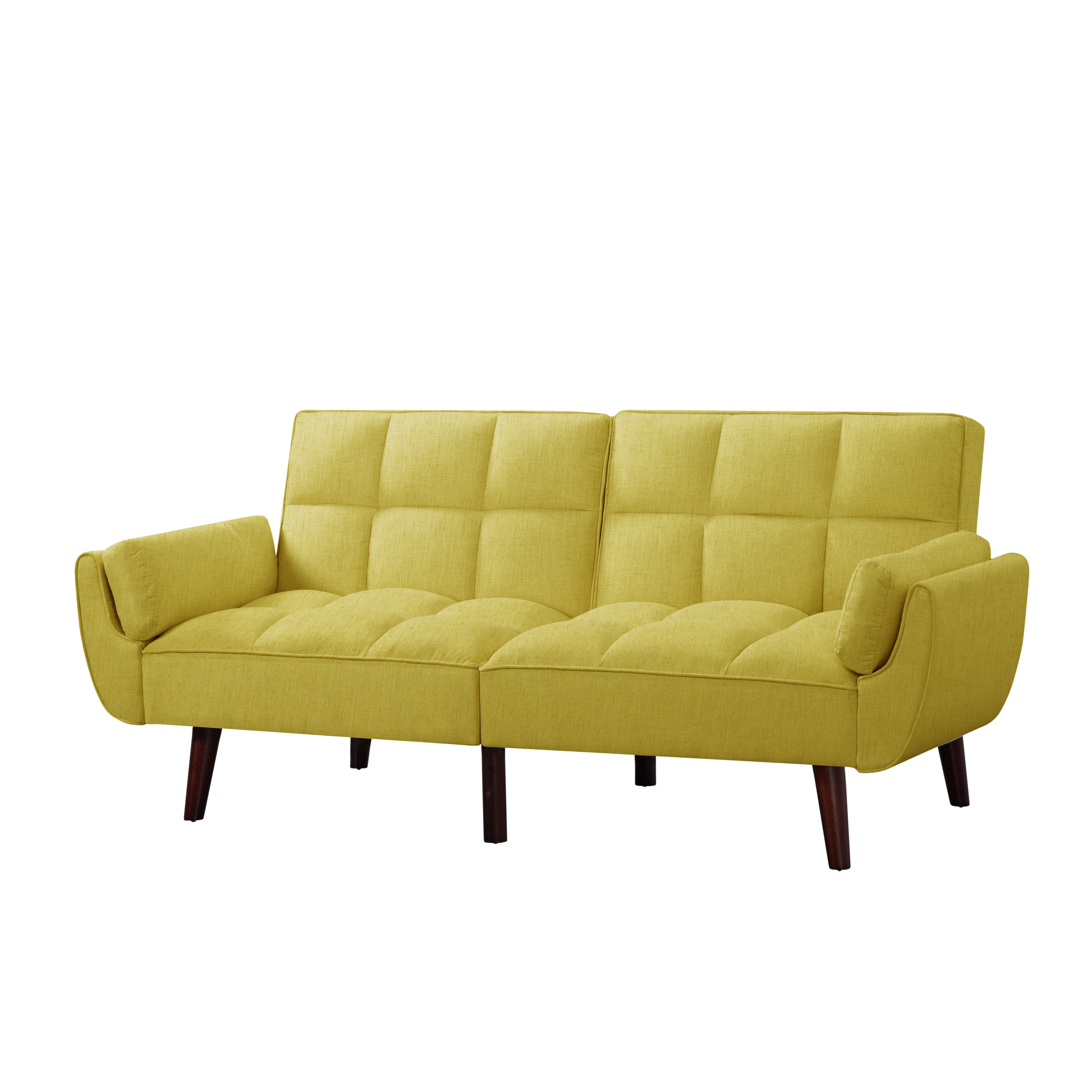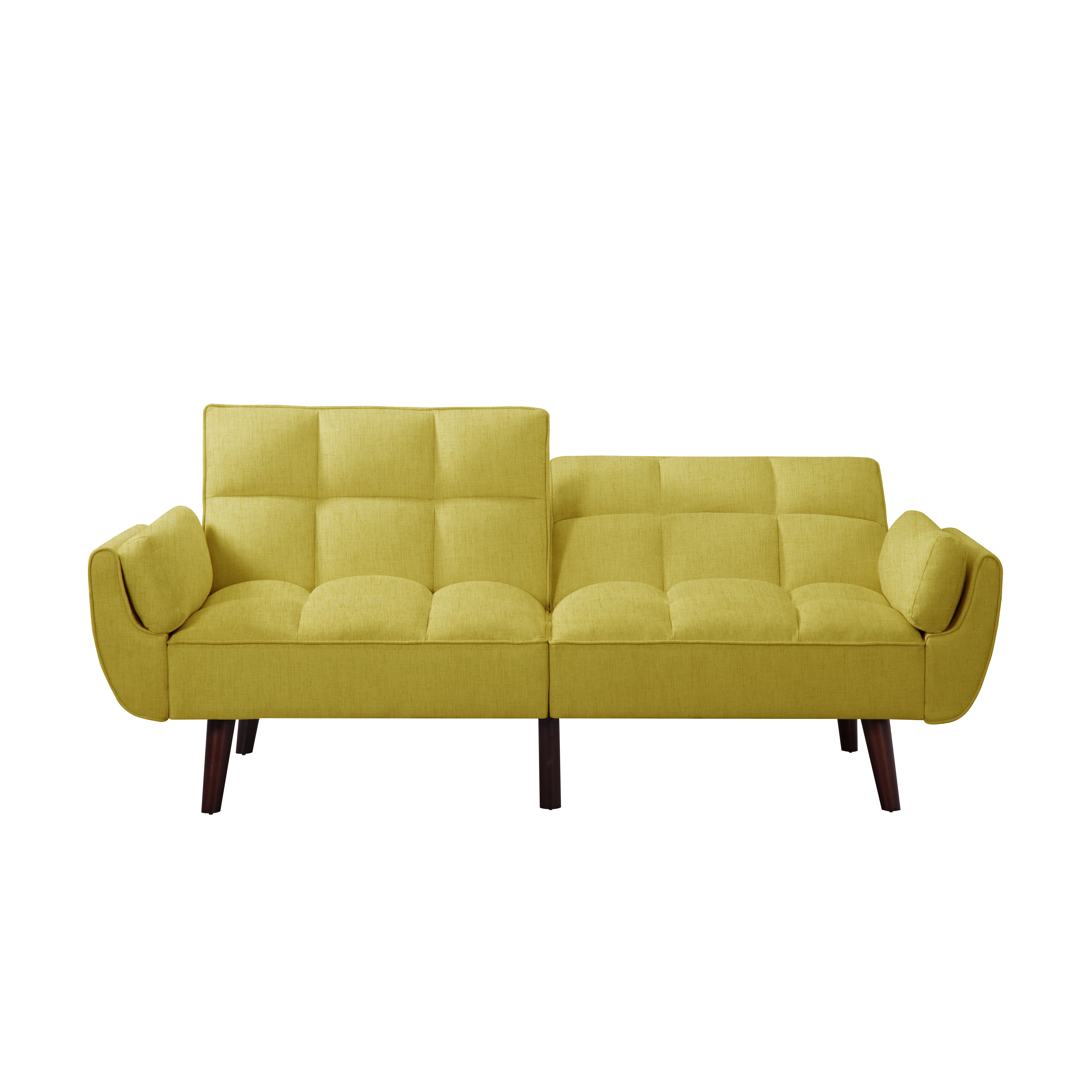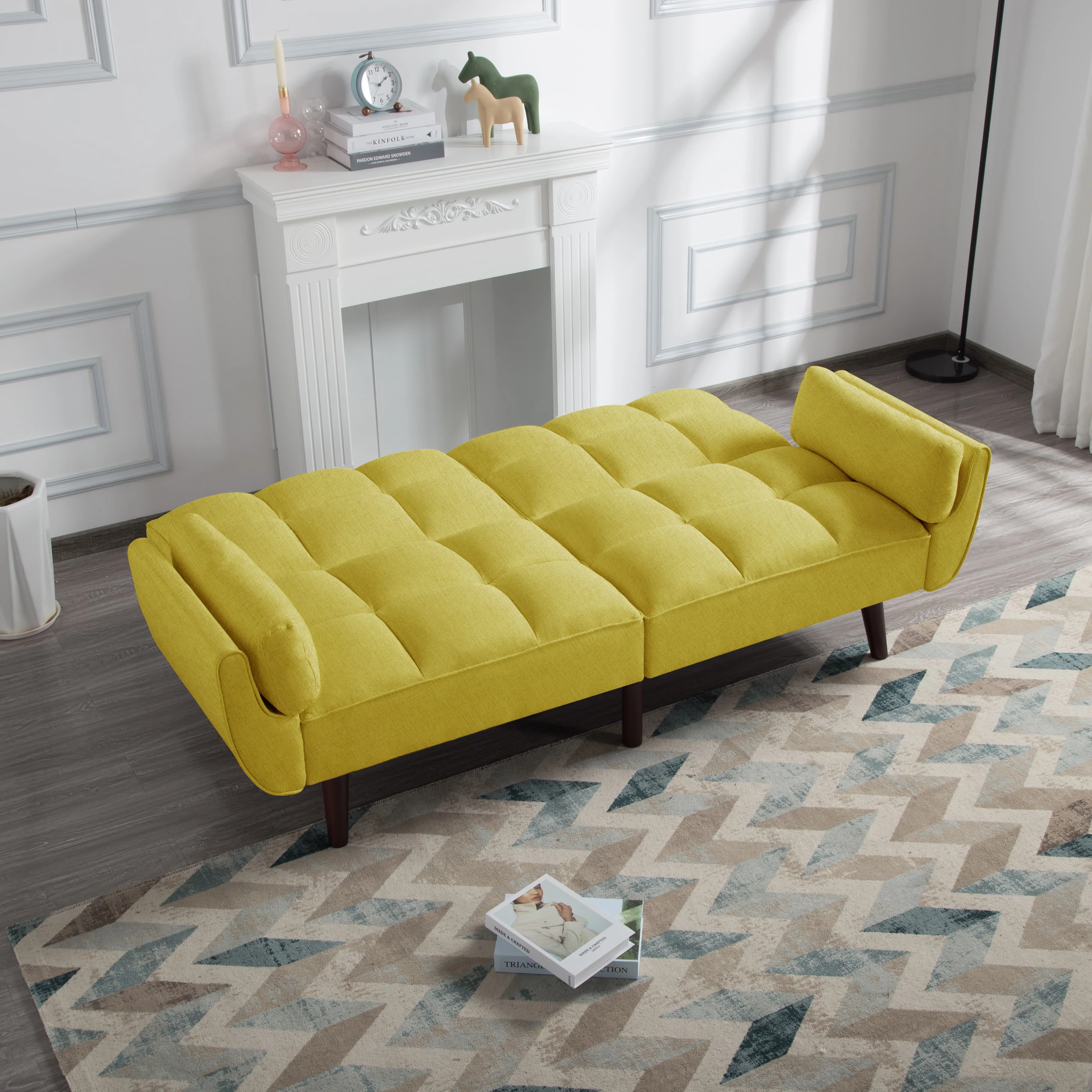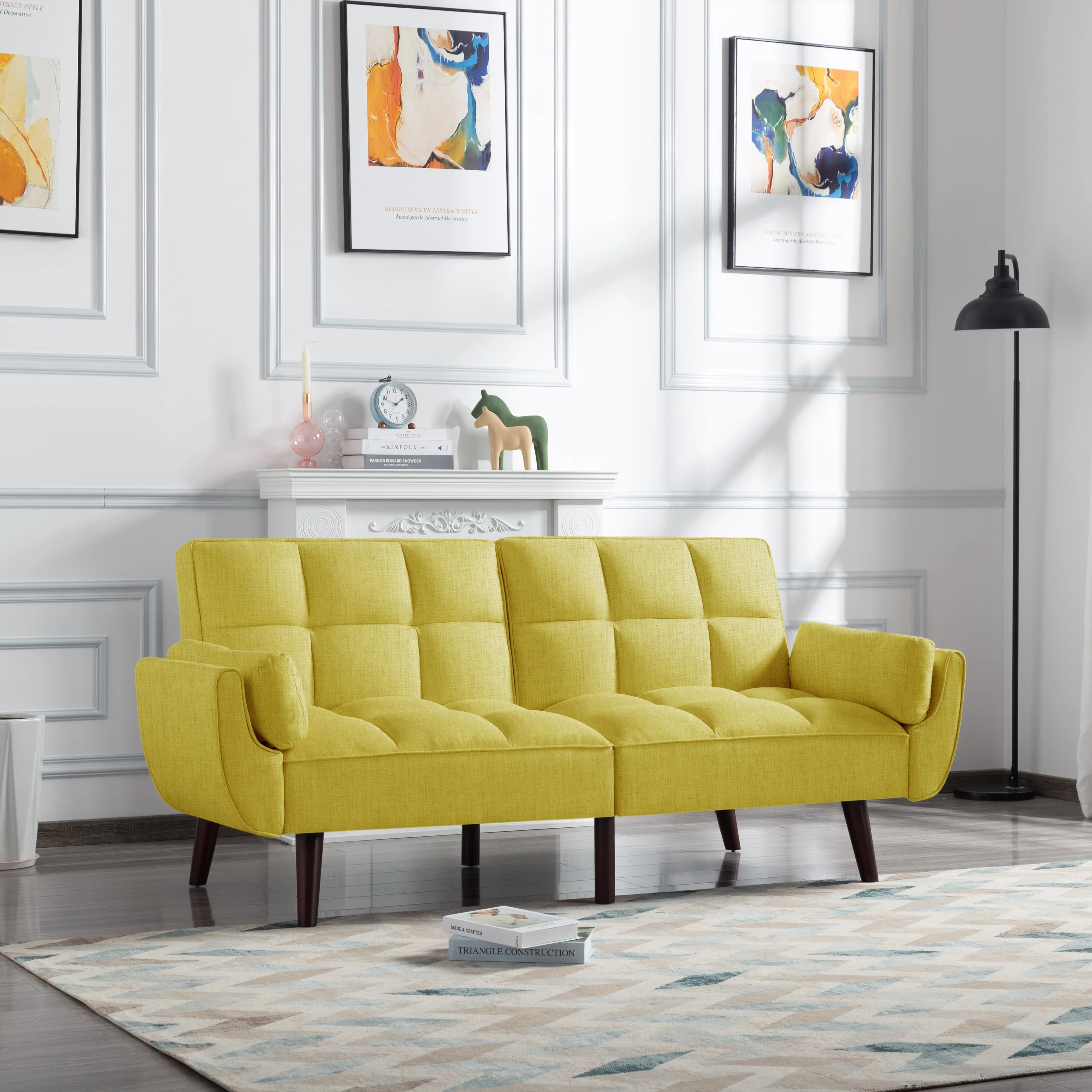 BSHTI 74.4 inch Foam Futon Sofa Bed,Converted Futon Sofa Sleeper with 2 Pillows for Livingroom(Yellow)