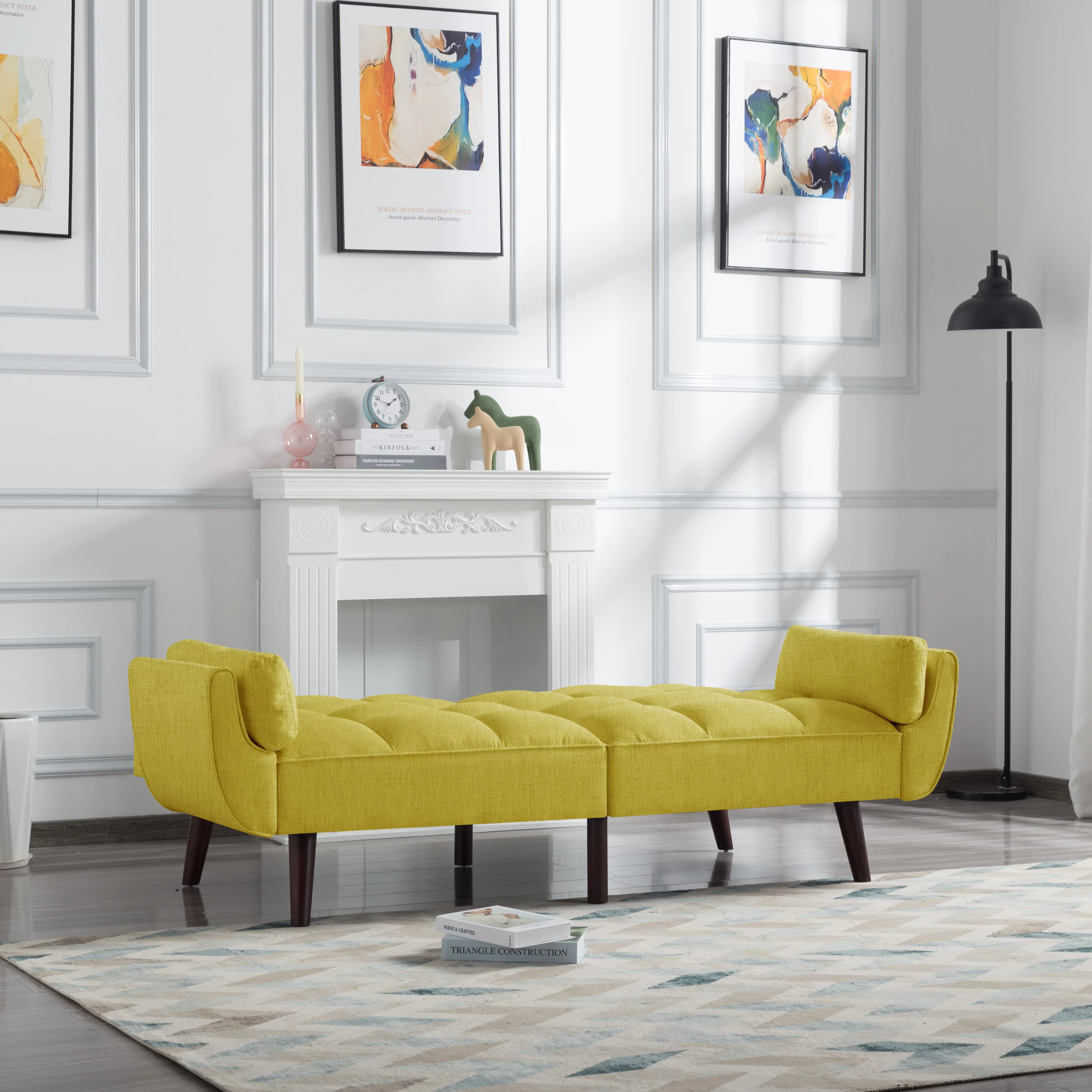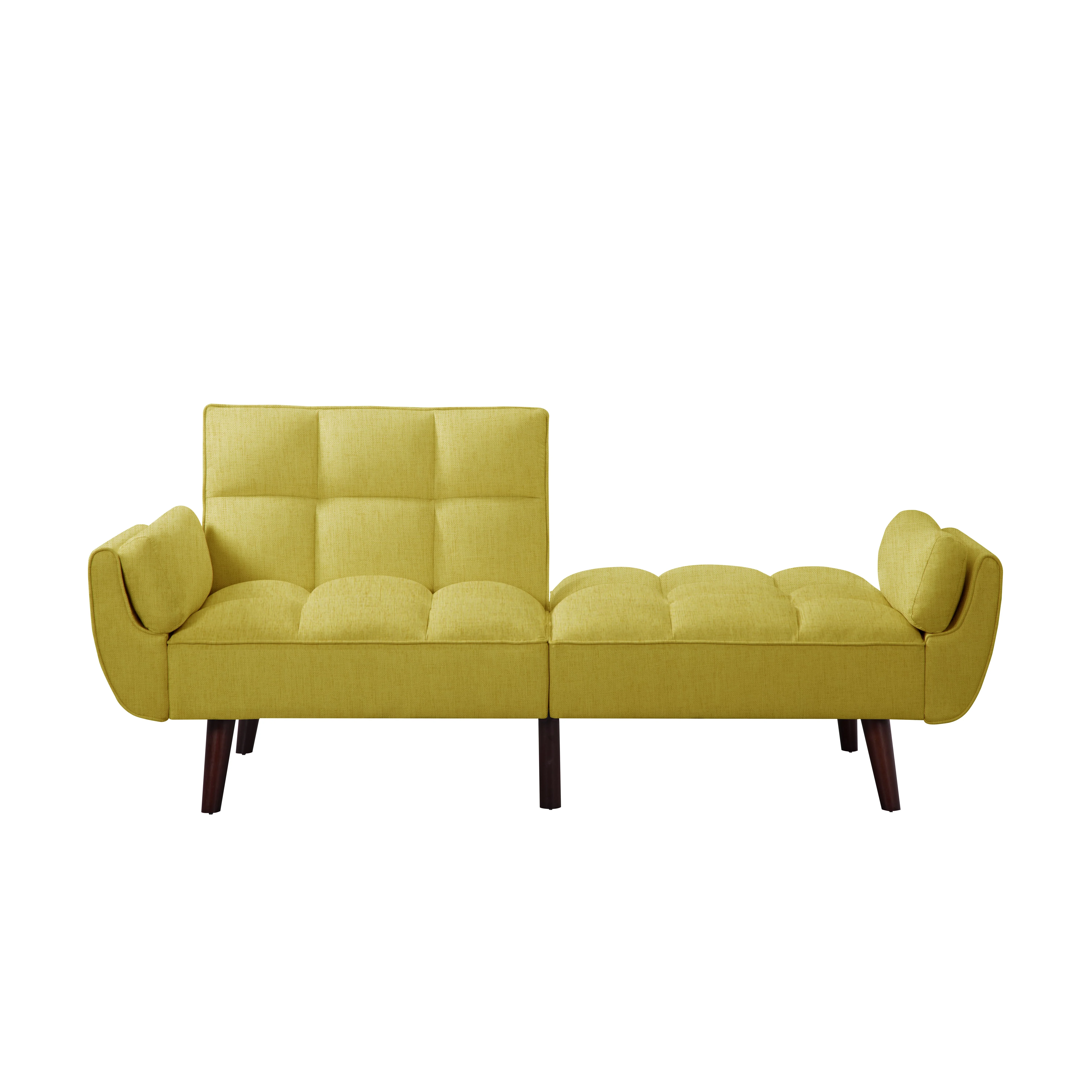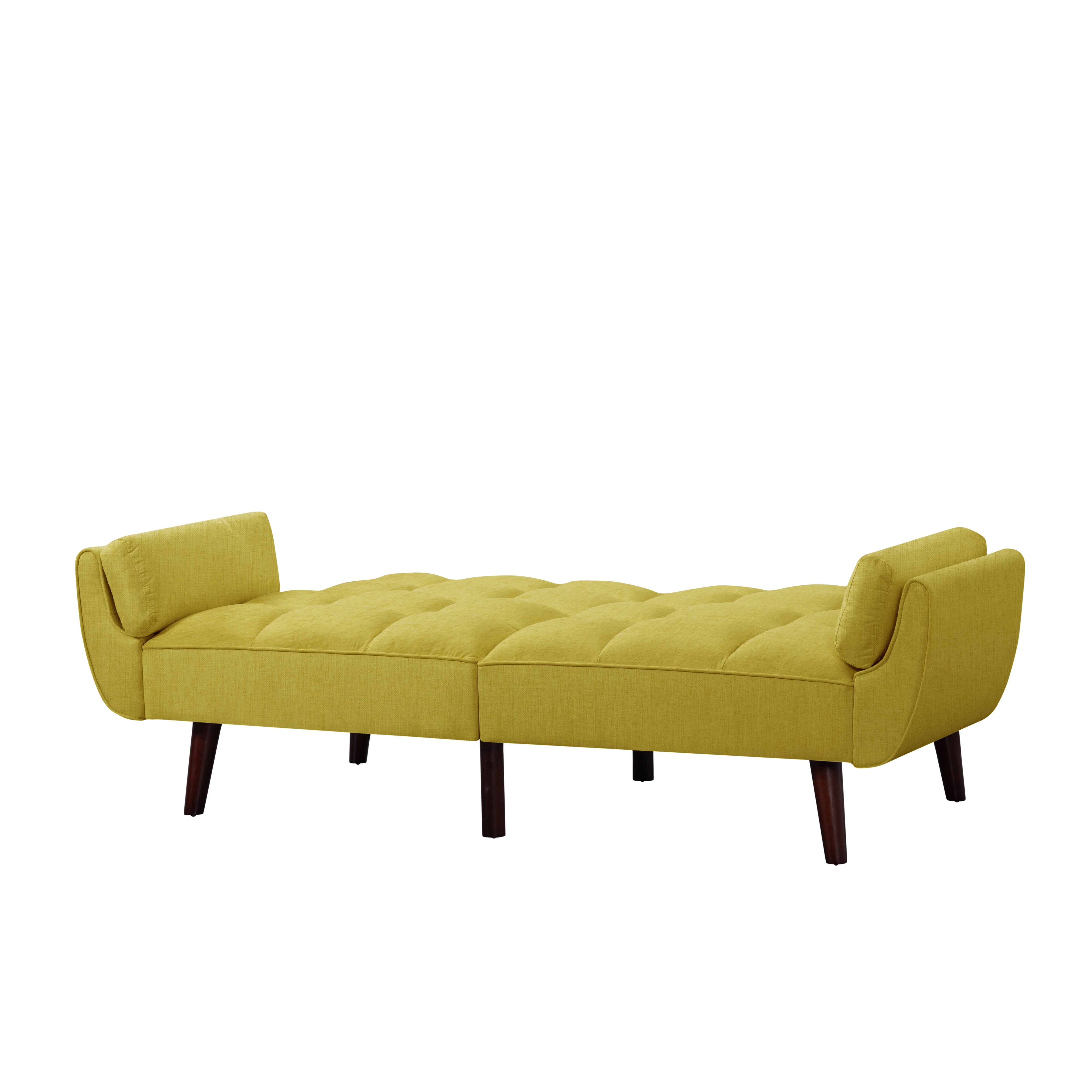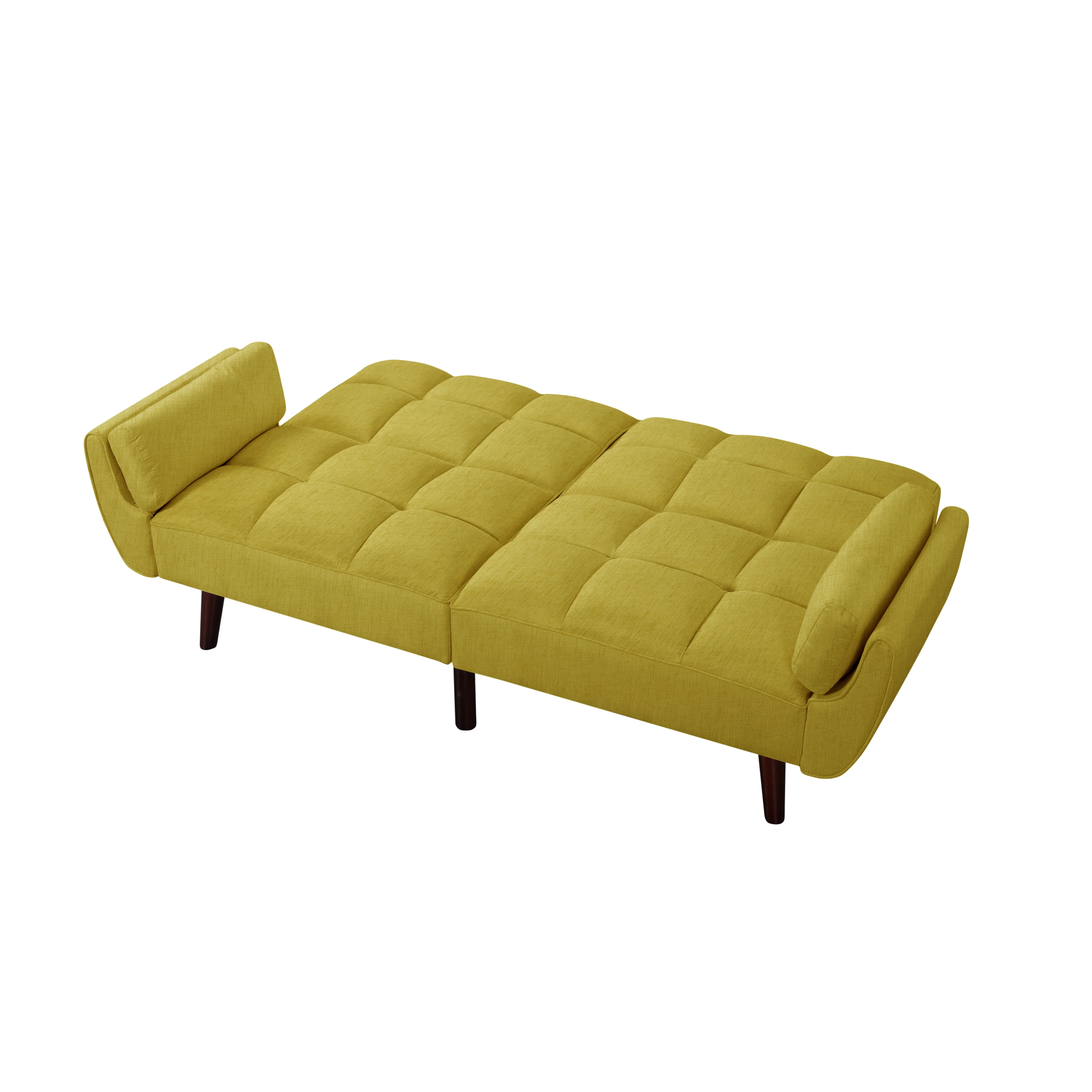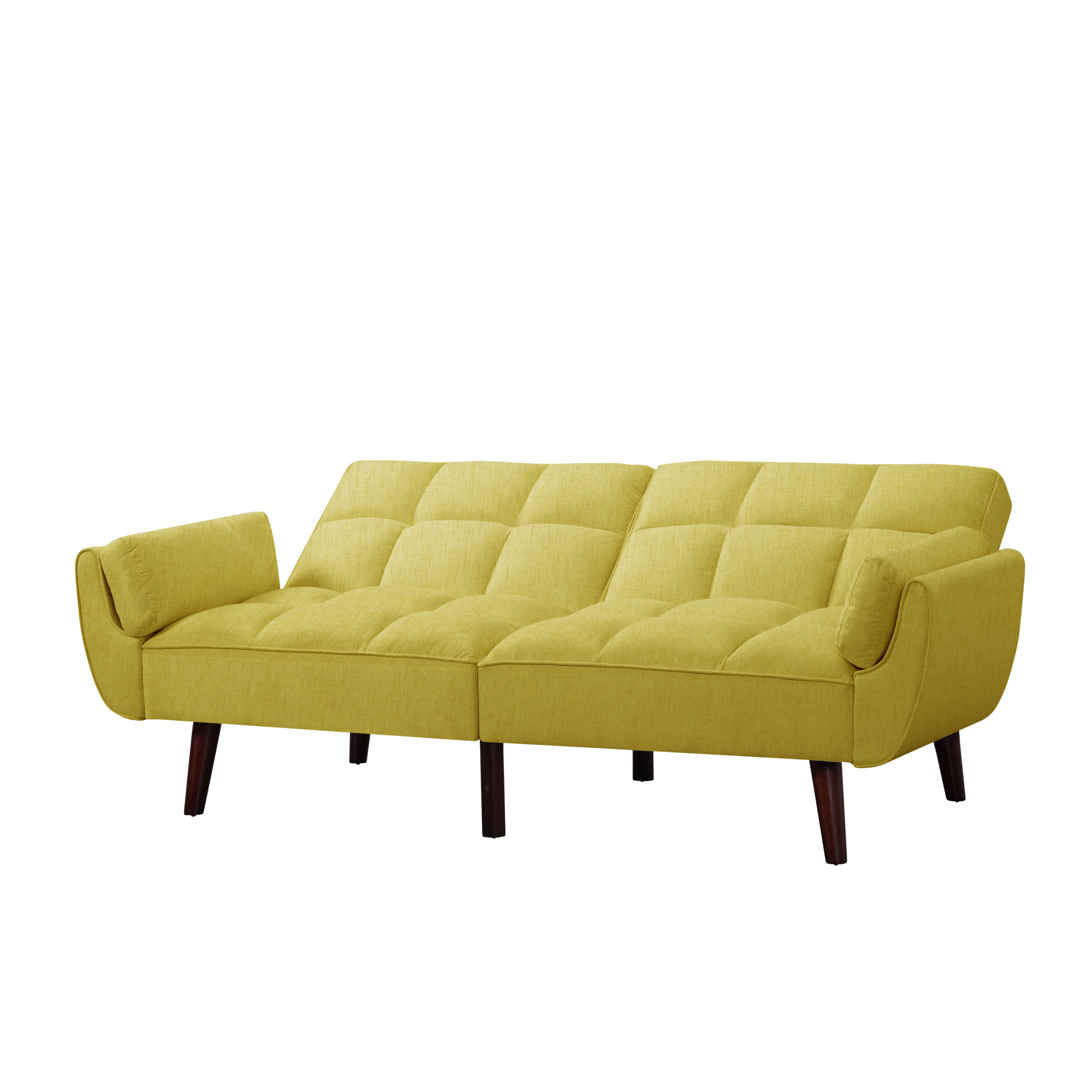 BSHTI 74.4 inch Foam Futon Sofa Bed,Converted Futon Sofa Sleeper with 2 Pillows for Livingroom(Yellow)