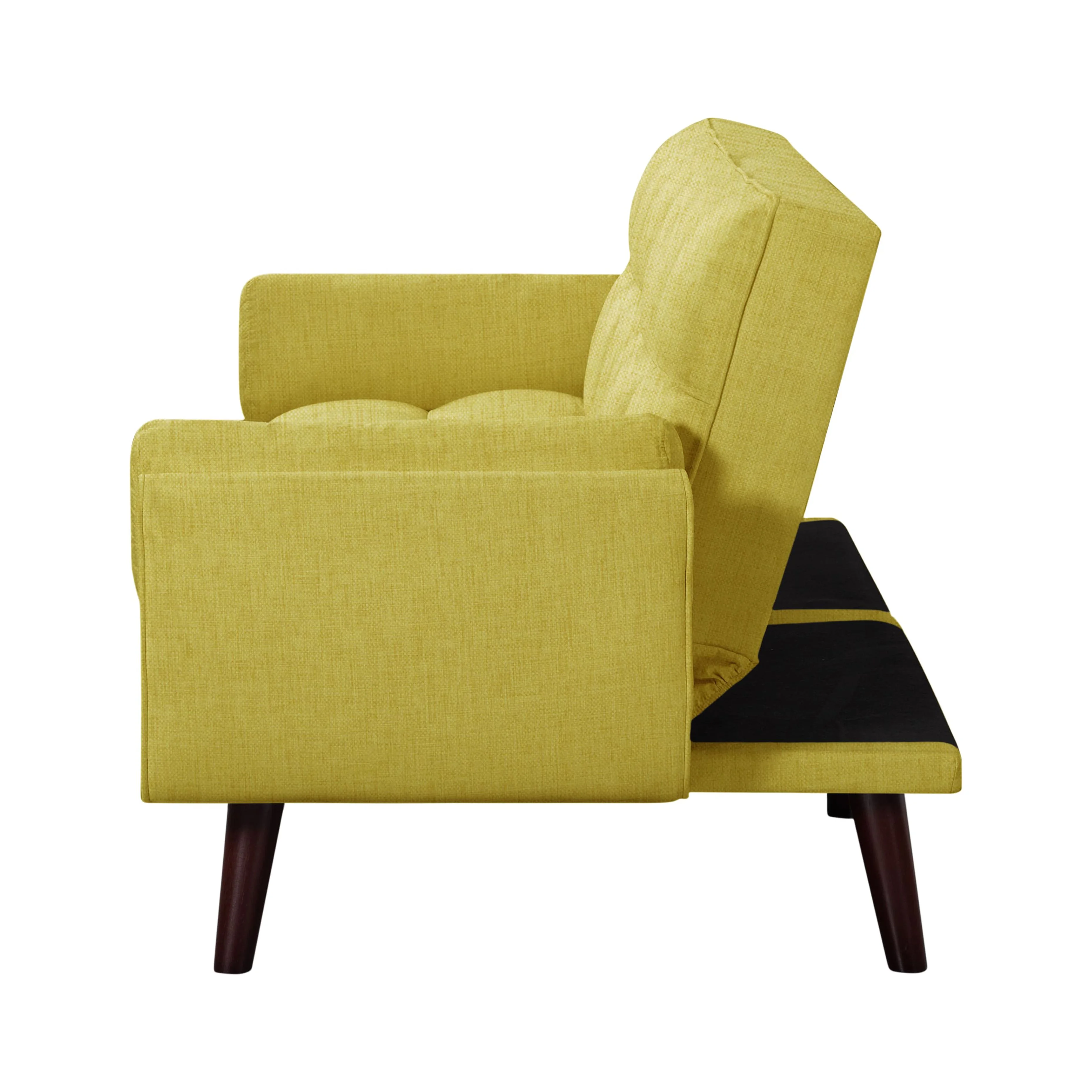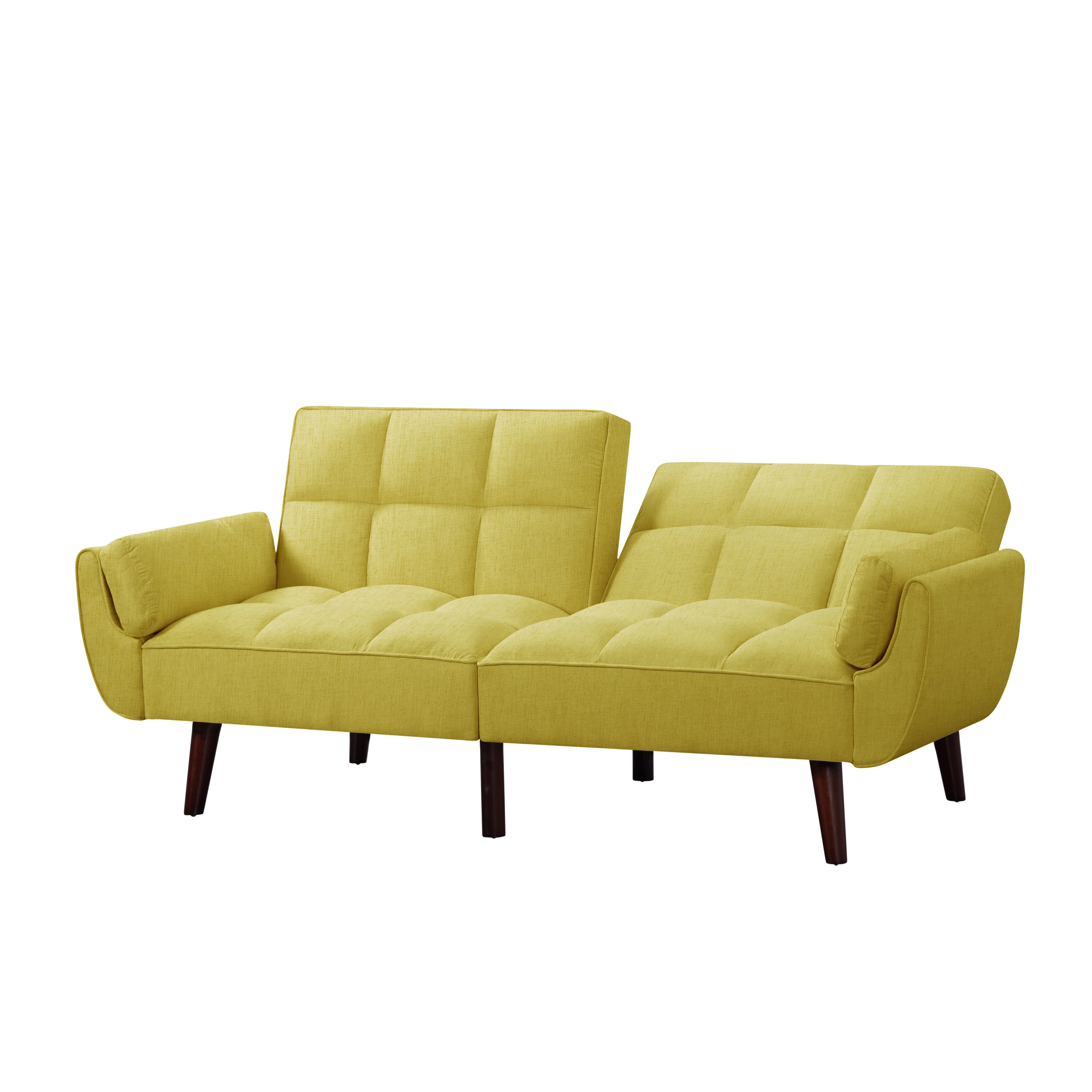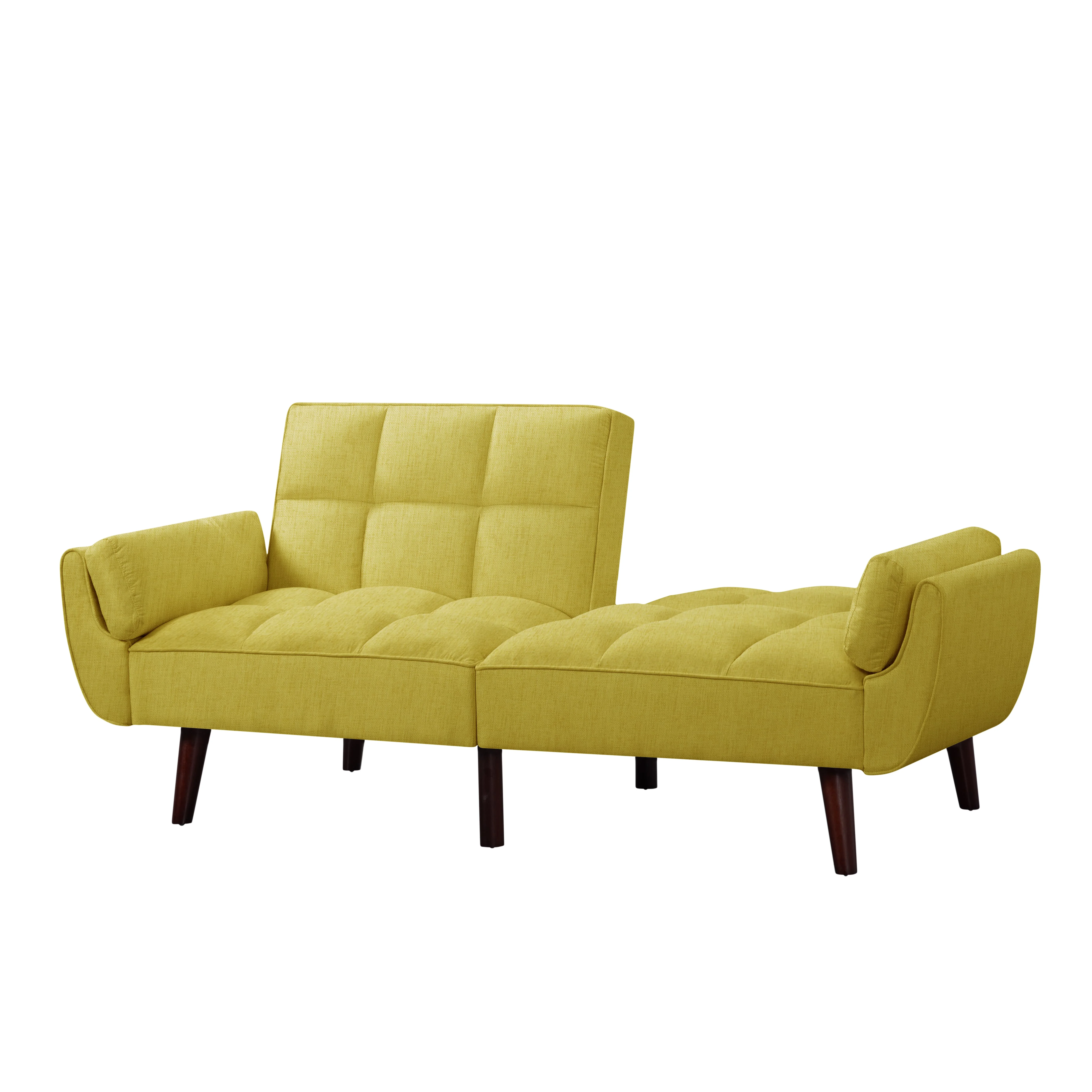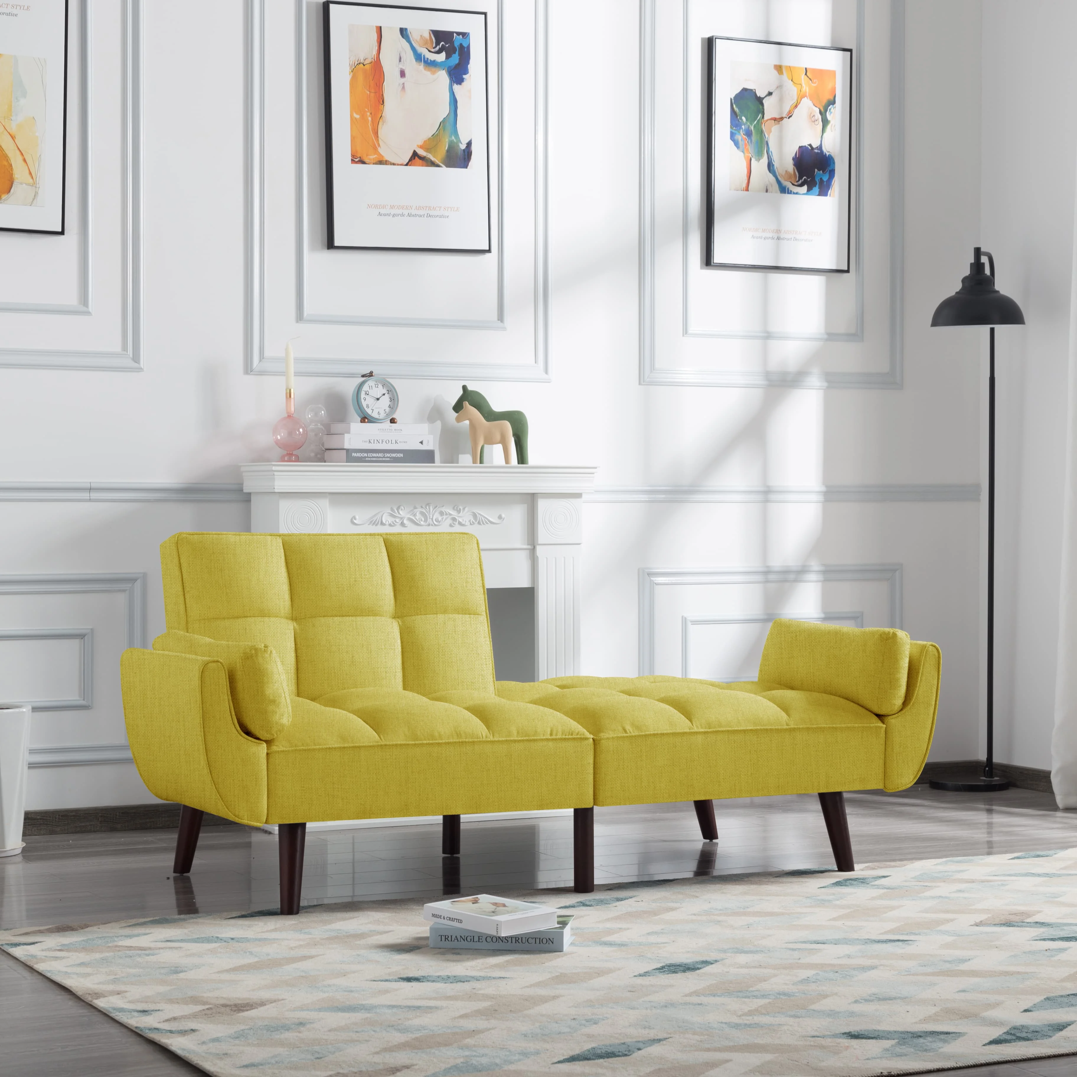 BSHTI 74.4 inch Foam Futon Sofa Bed,Converted Futon Sofa Sleeper with 2 Pillows for Livingroom(Yellow)