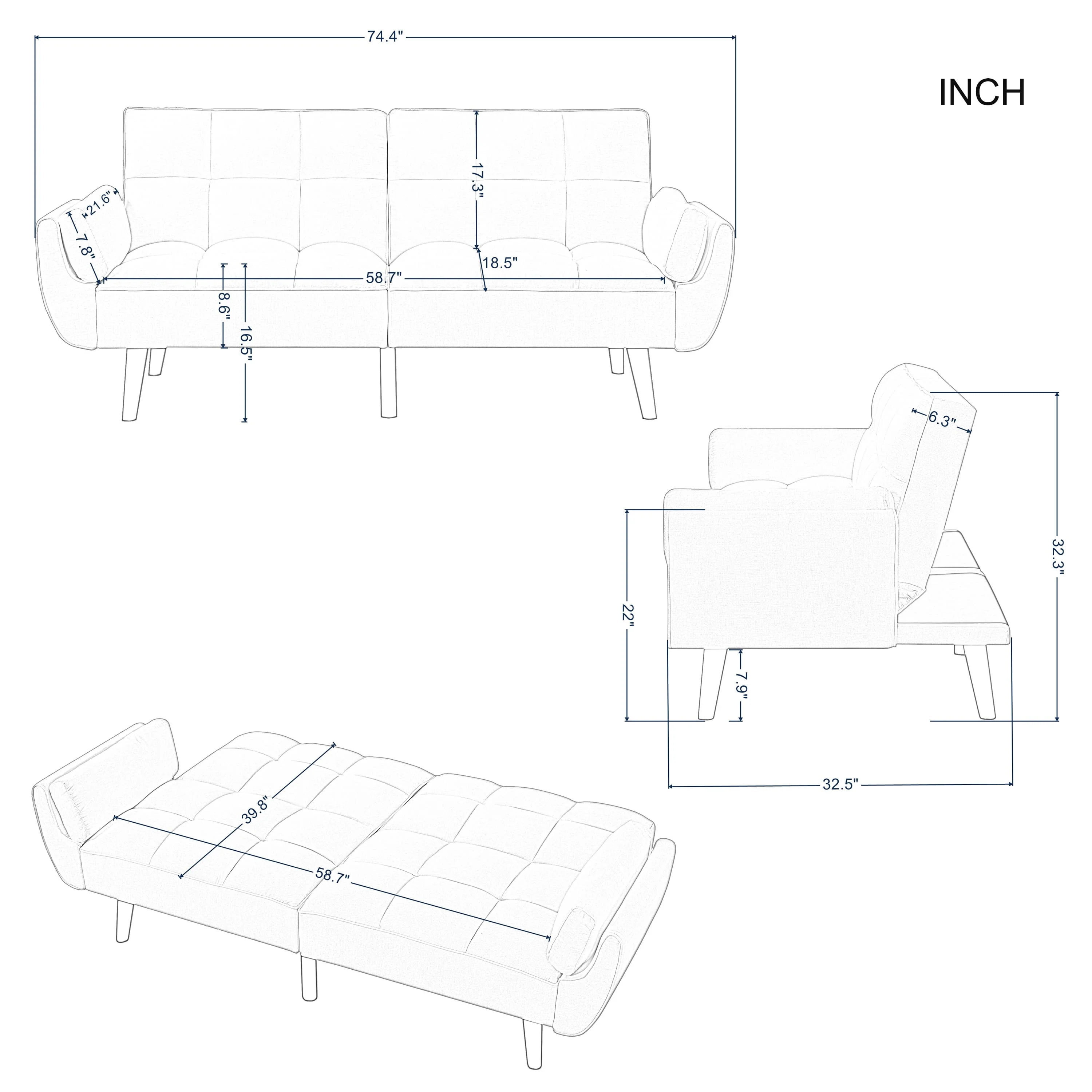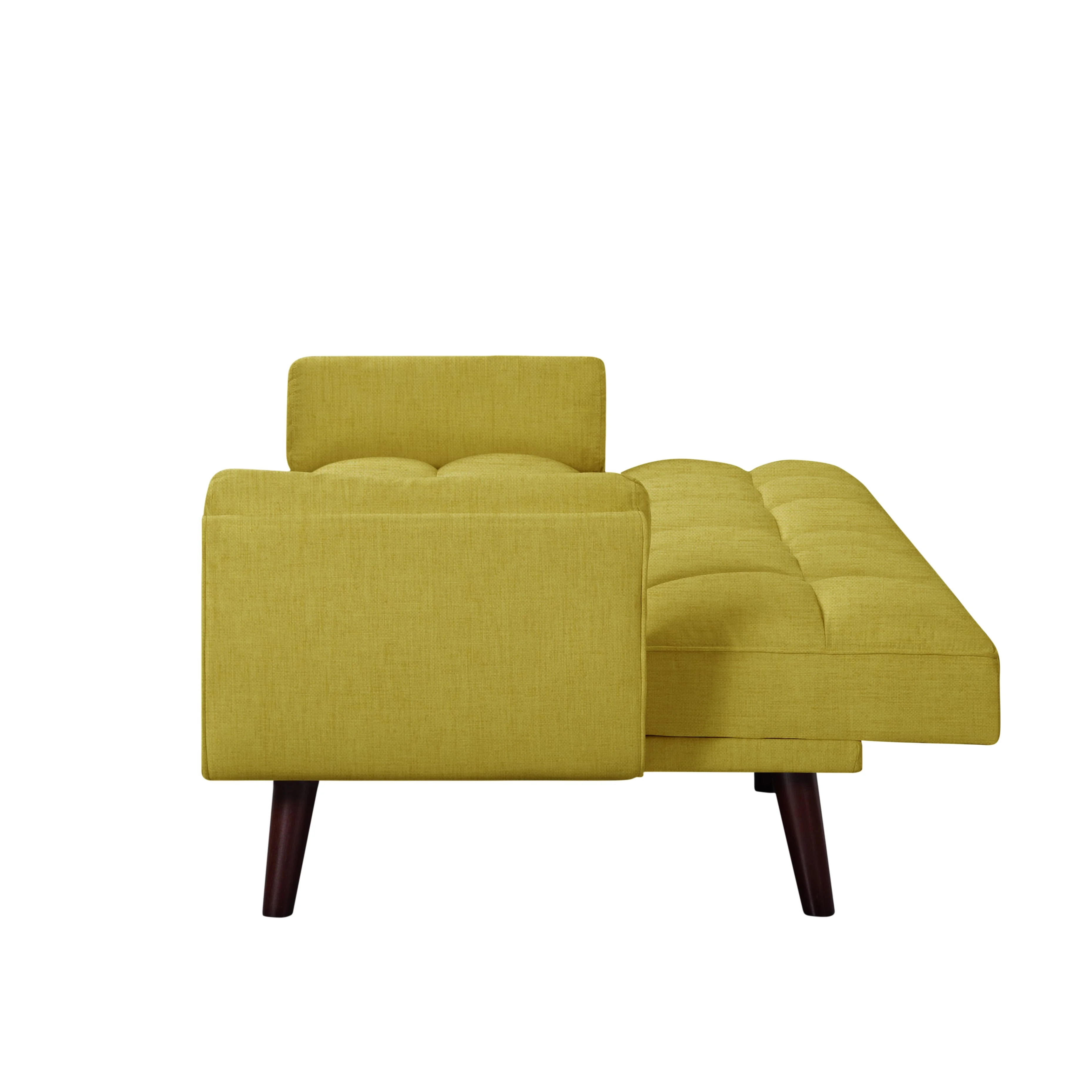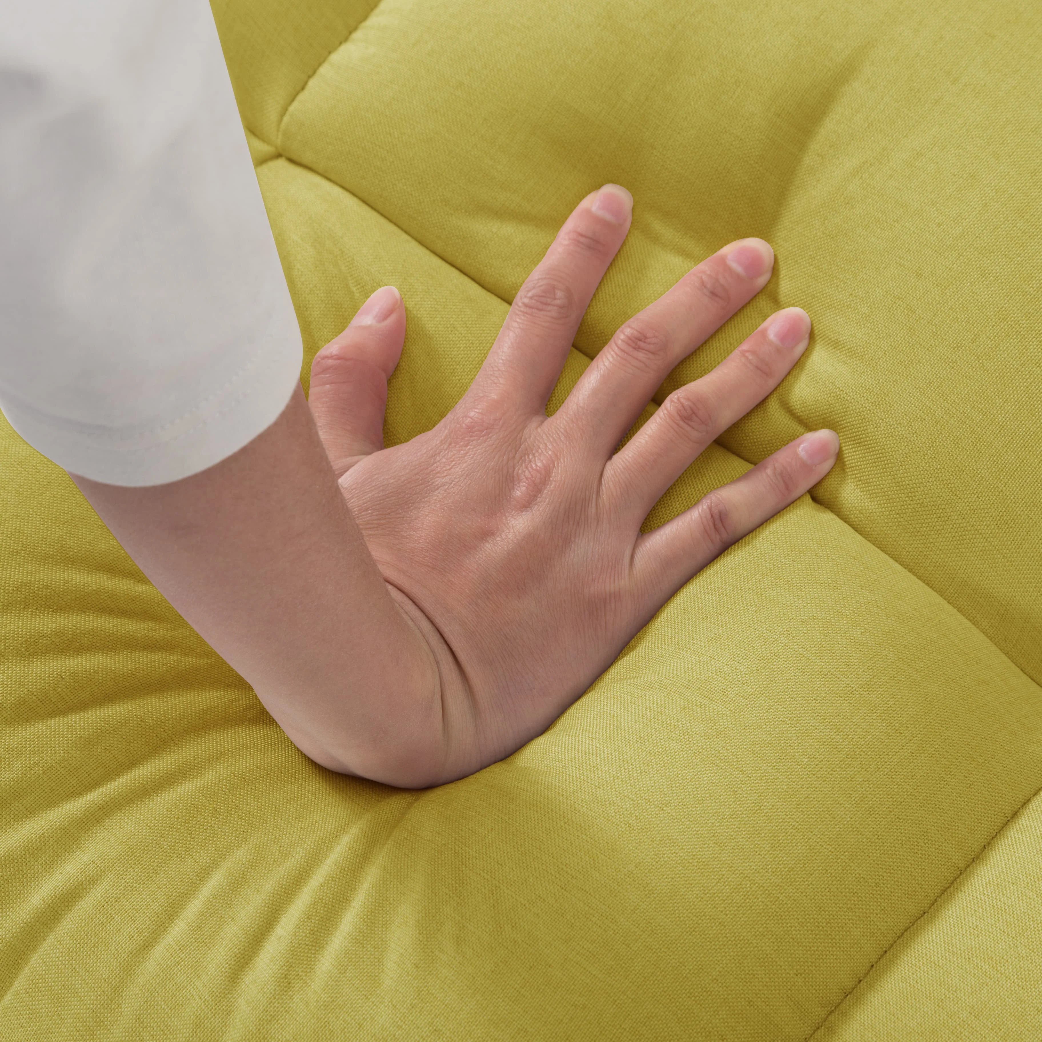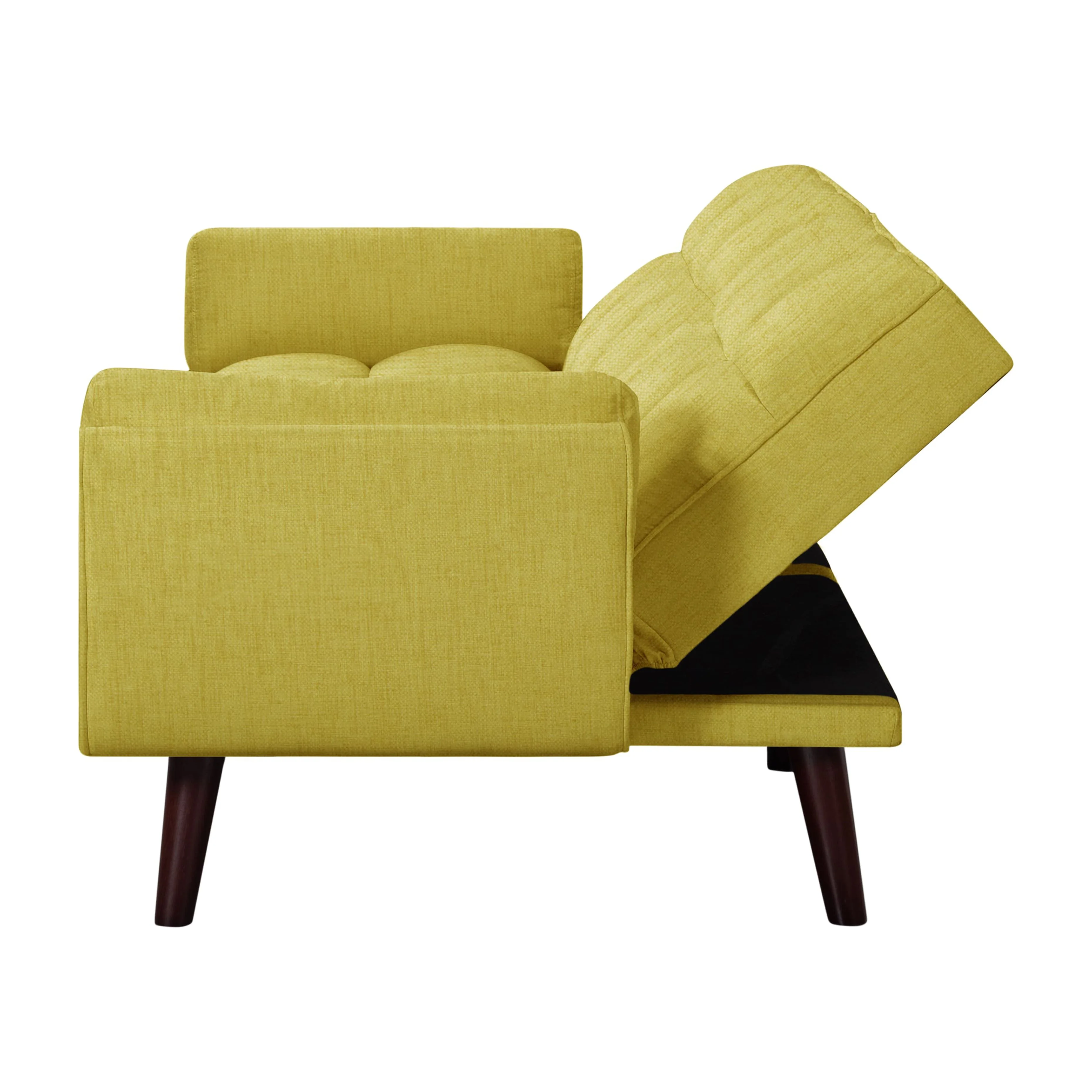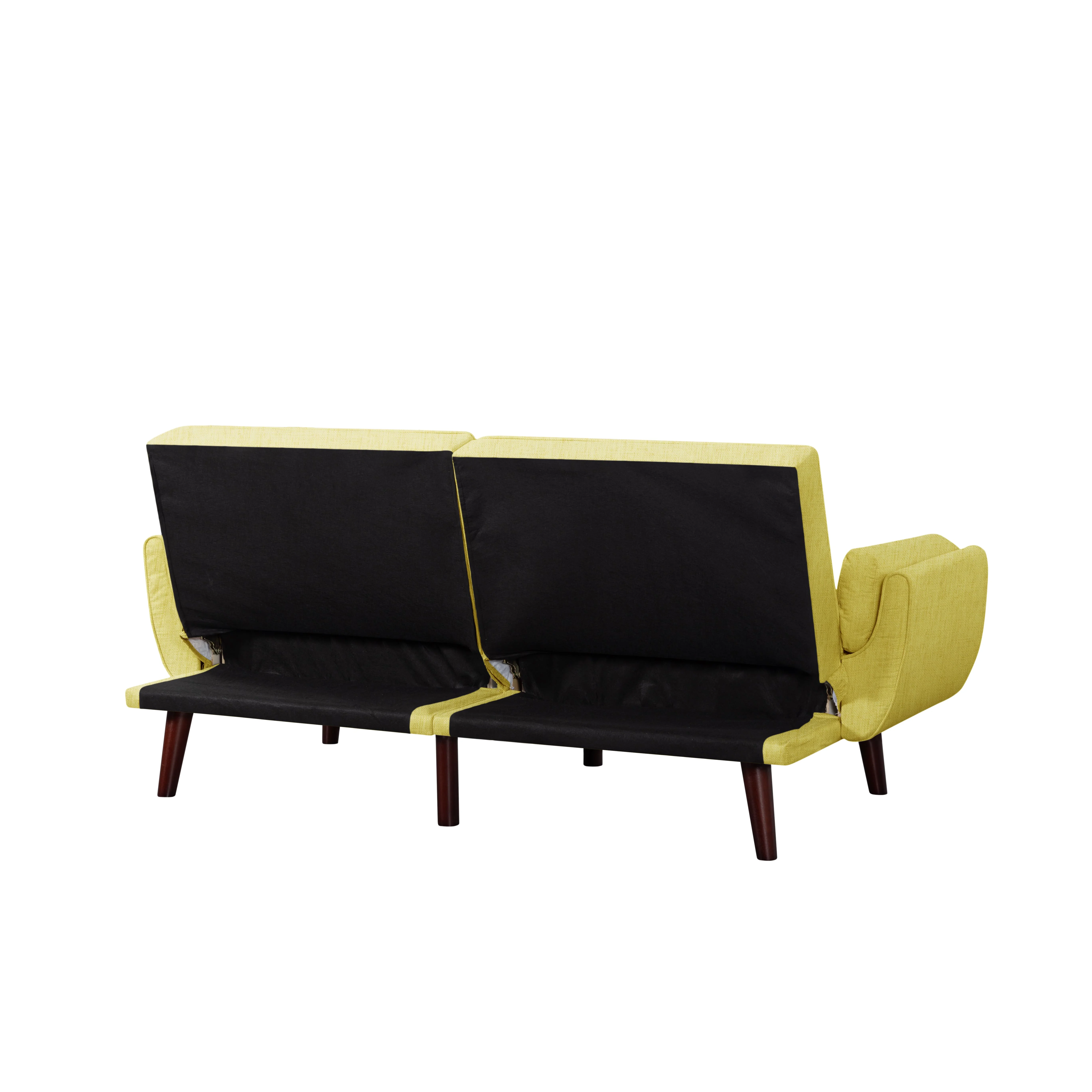BSHTI 74.4 inch Foam Futon Sofa Bed,Converted Futon Sofa Sleeper with 2 Pillows for Livingroom(Yellow)