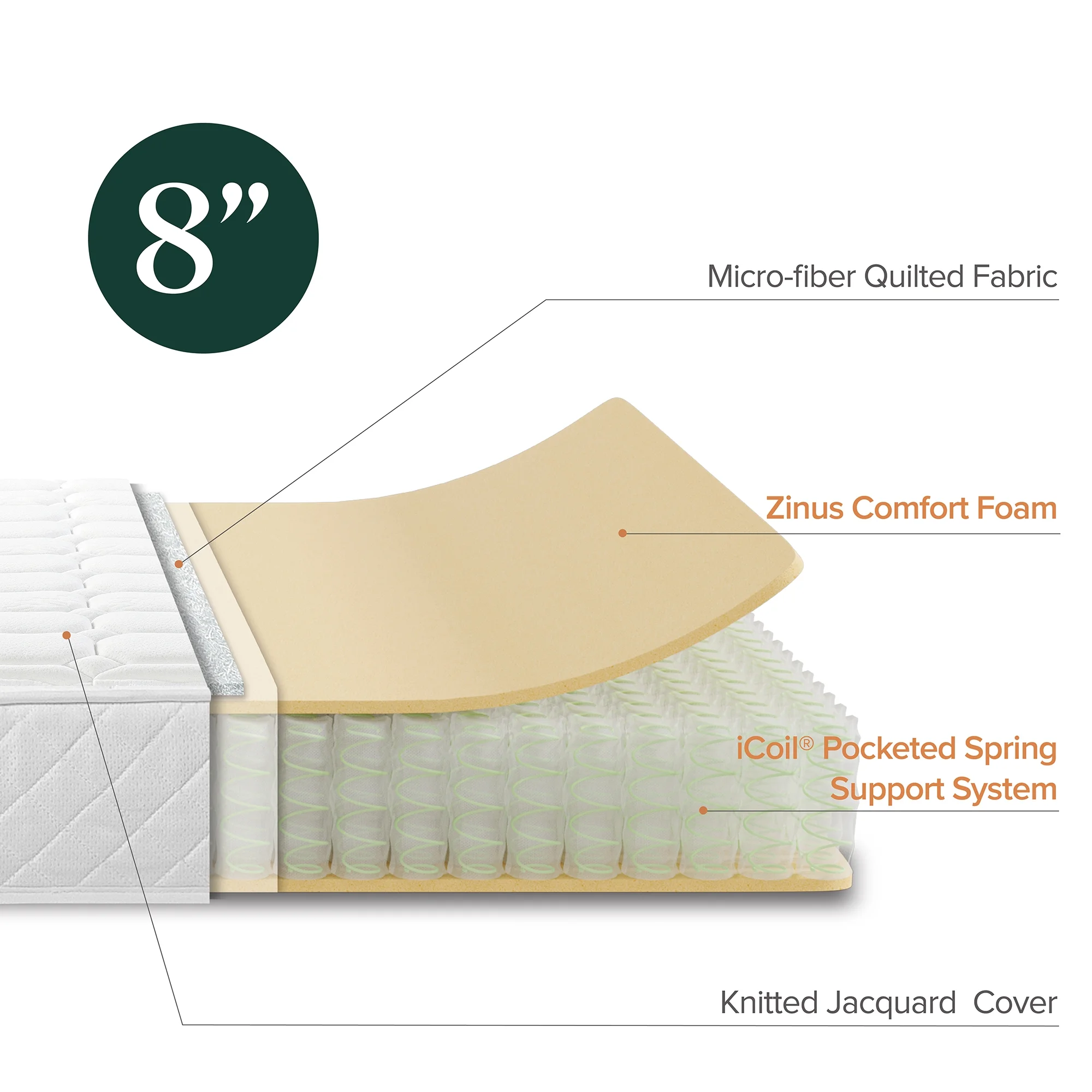 Zinus 8" Quilted Hybrid Mattress of Comfort Foam and Pocket Spring, Adult, King