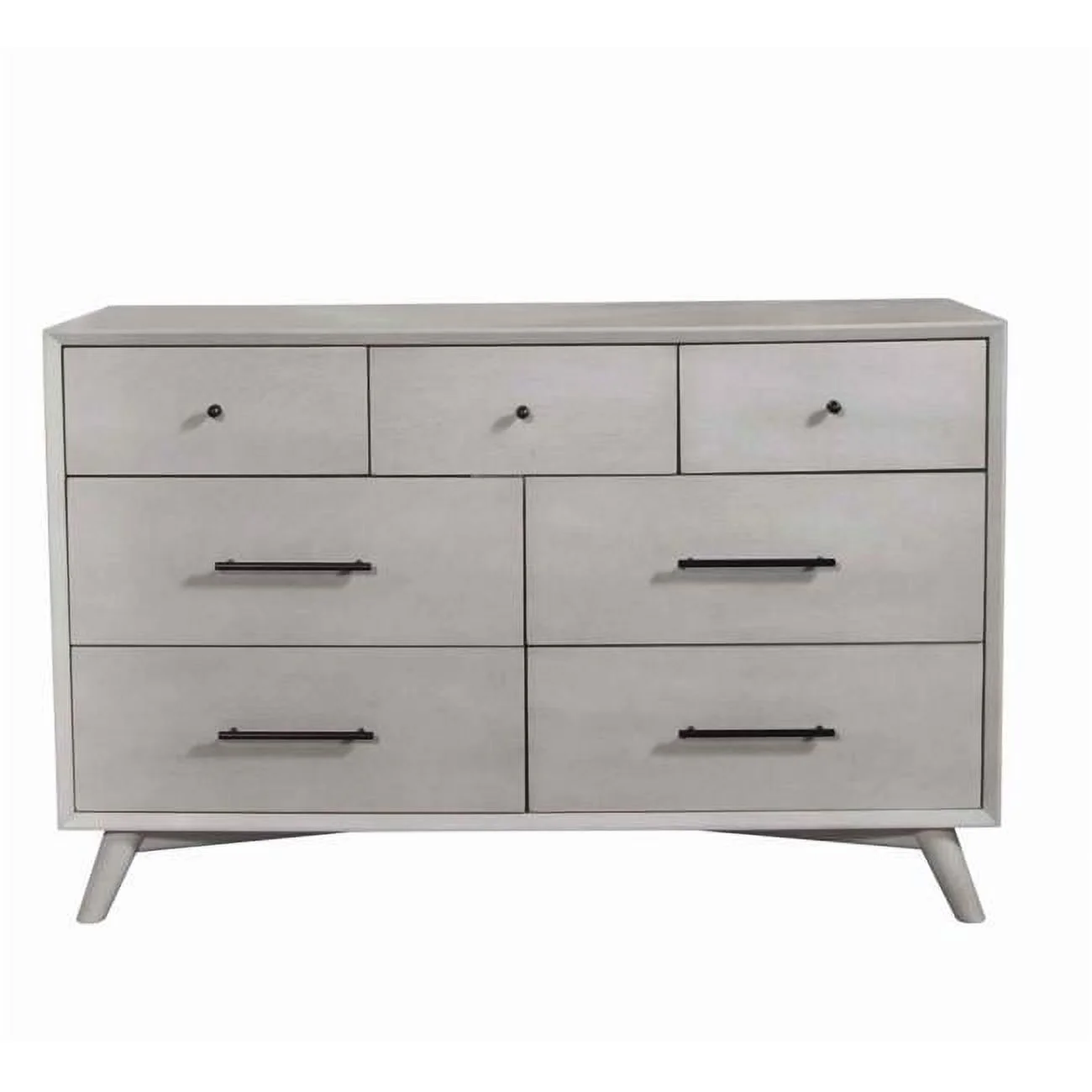 Benjara BM222488 7 Drawer Mid Century Modern Wooden Dresser with Splayed Legs, Gray