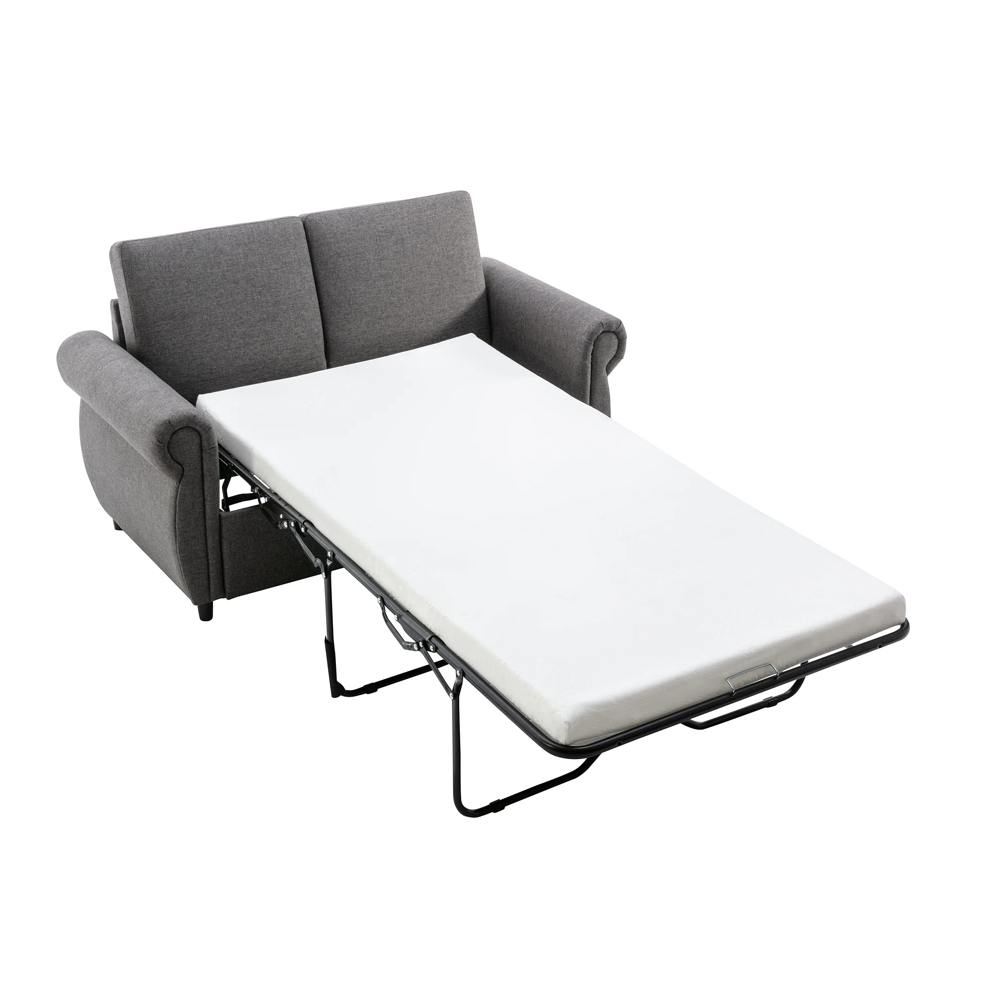 57.5" Orisfur Pull Out Sofa Bed Loveseat Sleeper with Twin Size Memory Mattress for Living Room Spaces, Gray
