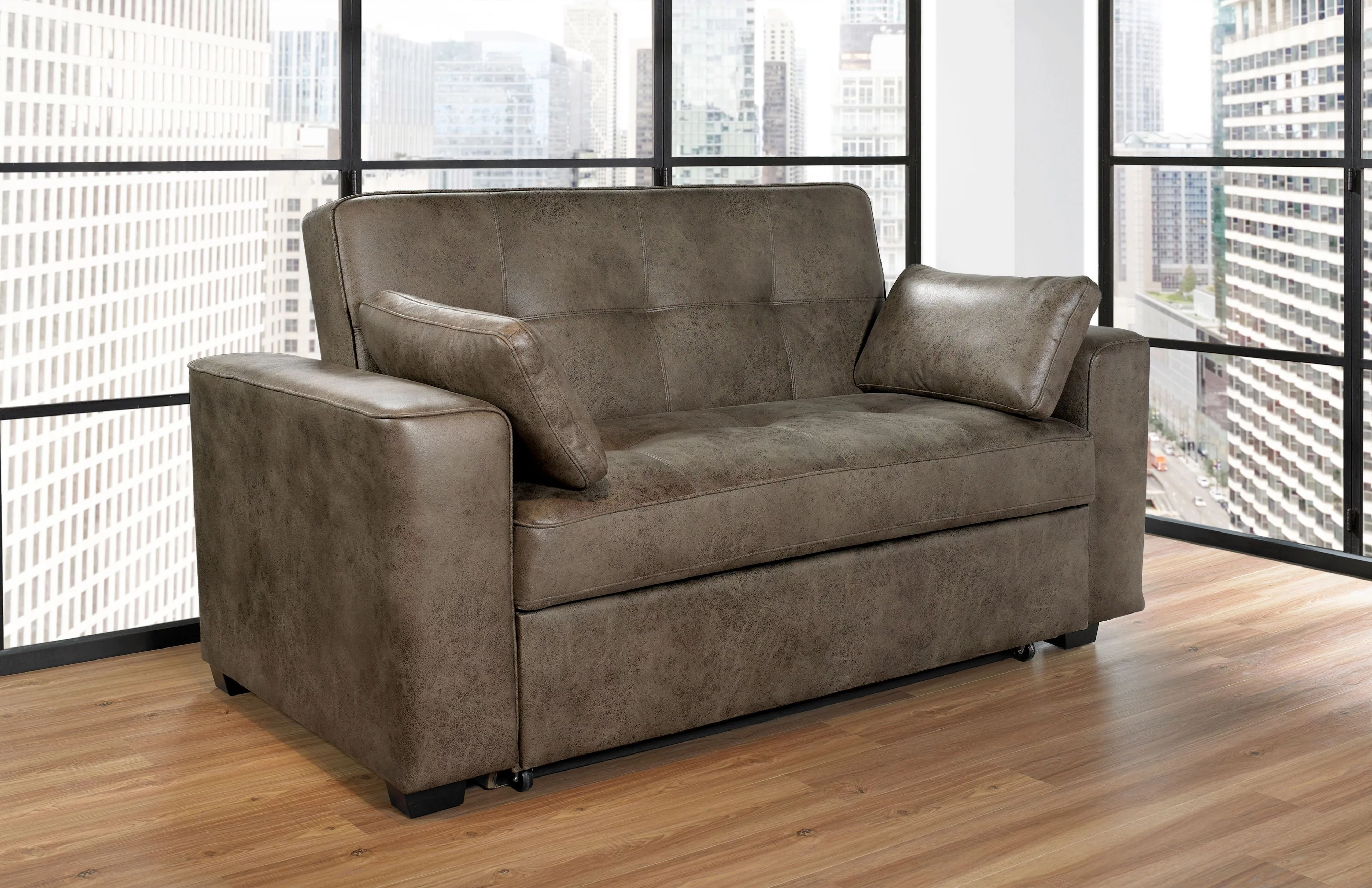 Nestfair Brown 57.5" Pull Out Sofa Bed Loveseat Sleeper with Twin Size Memory Mattress