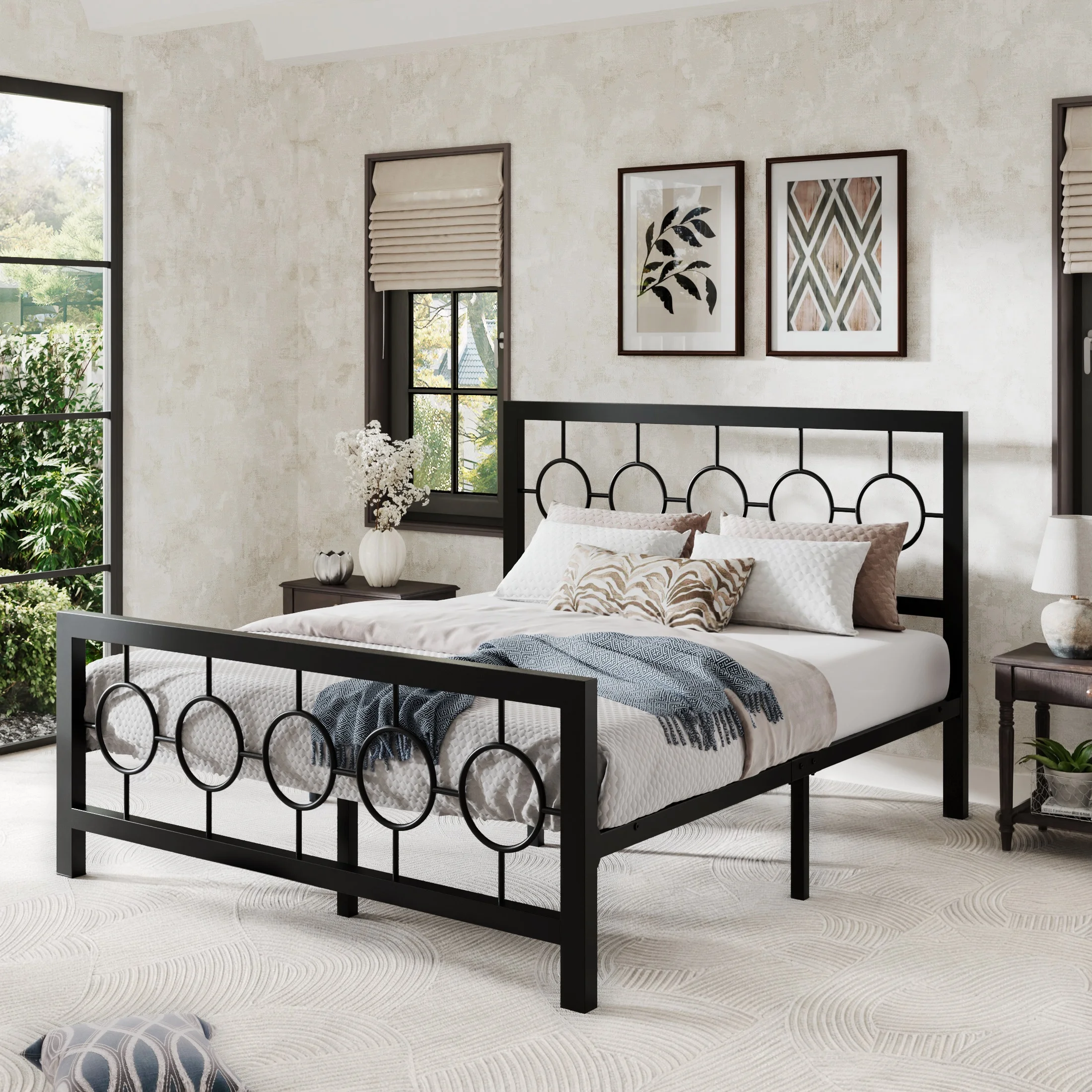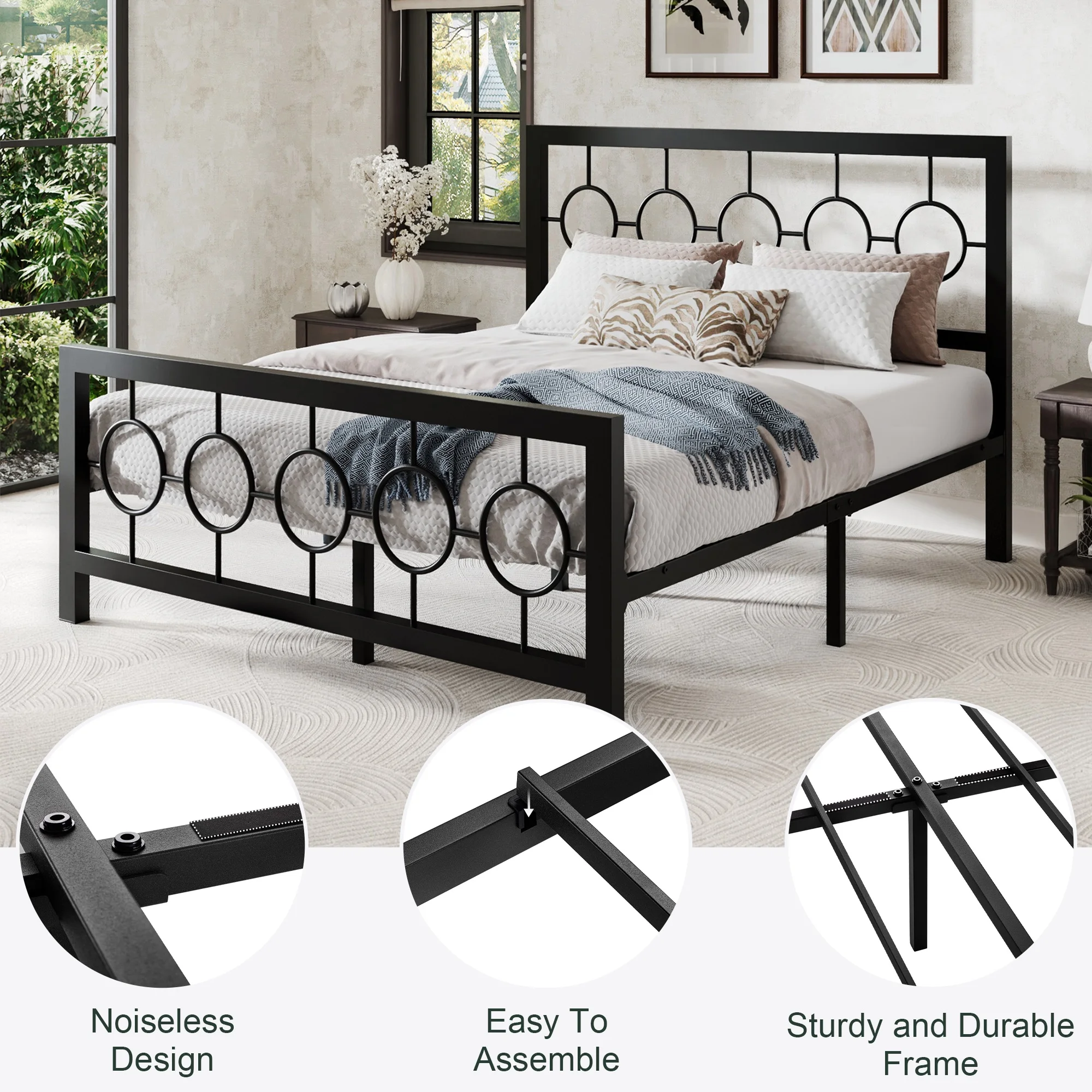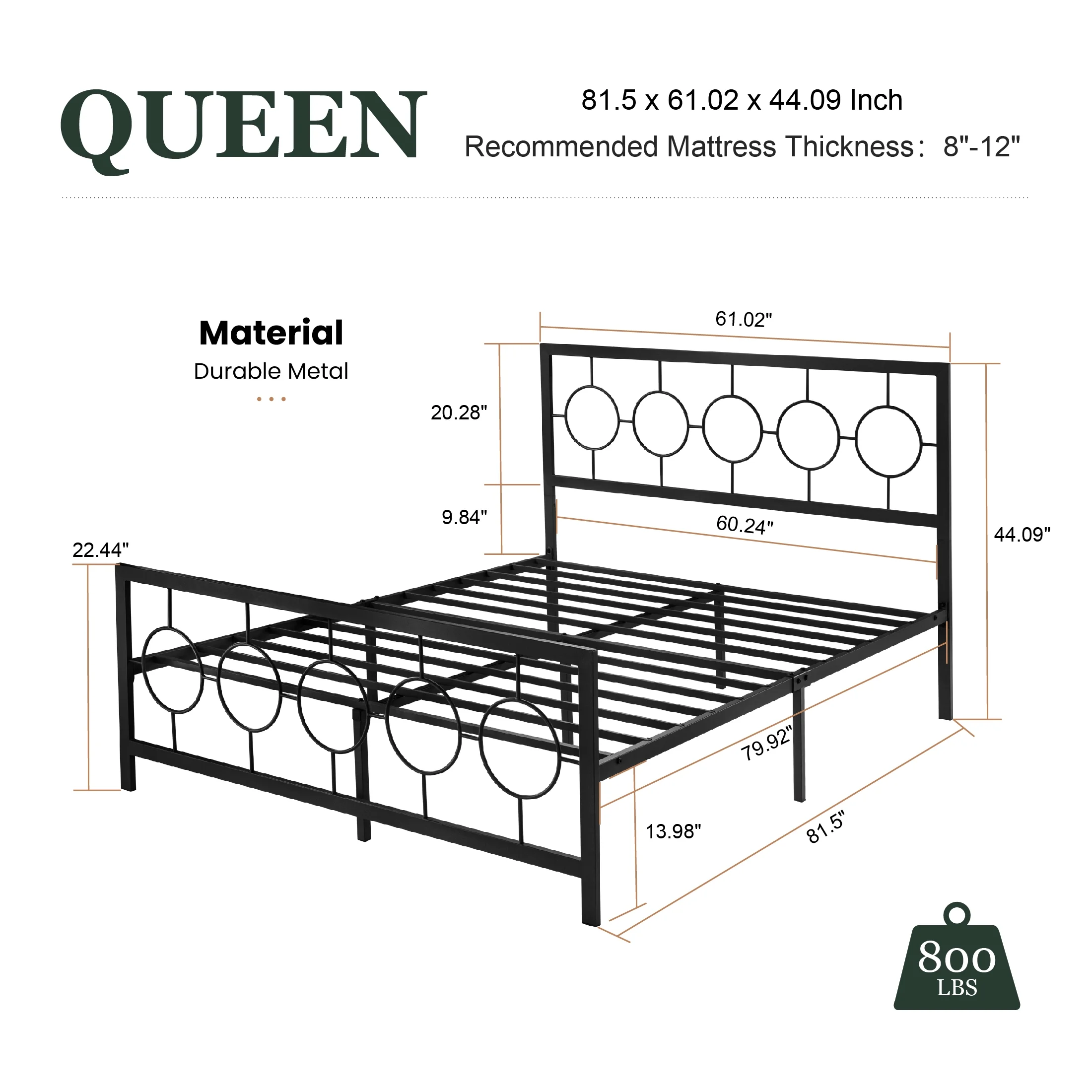 Amolife Black Queen Size Metal Platform Bed Frame with Circular Vintage Headboard & Footboard