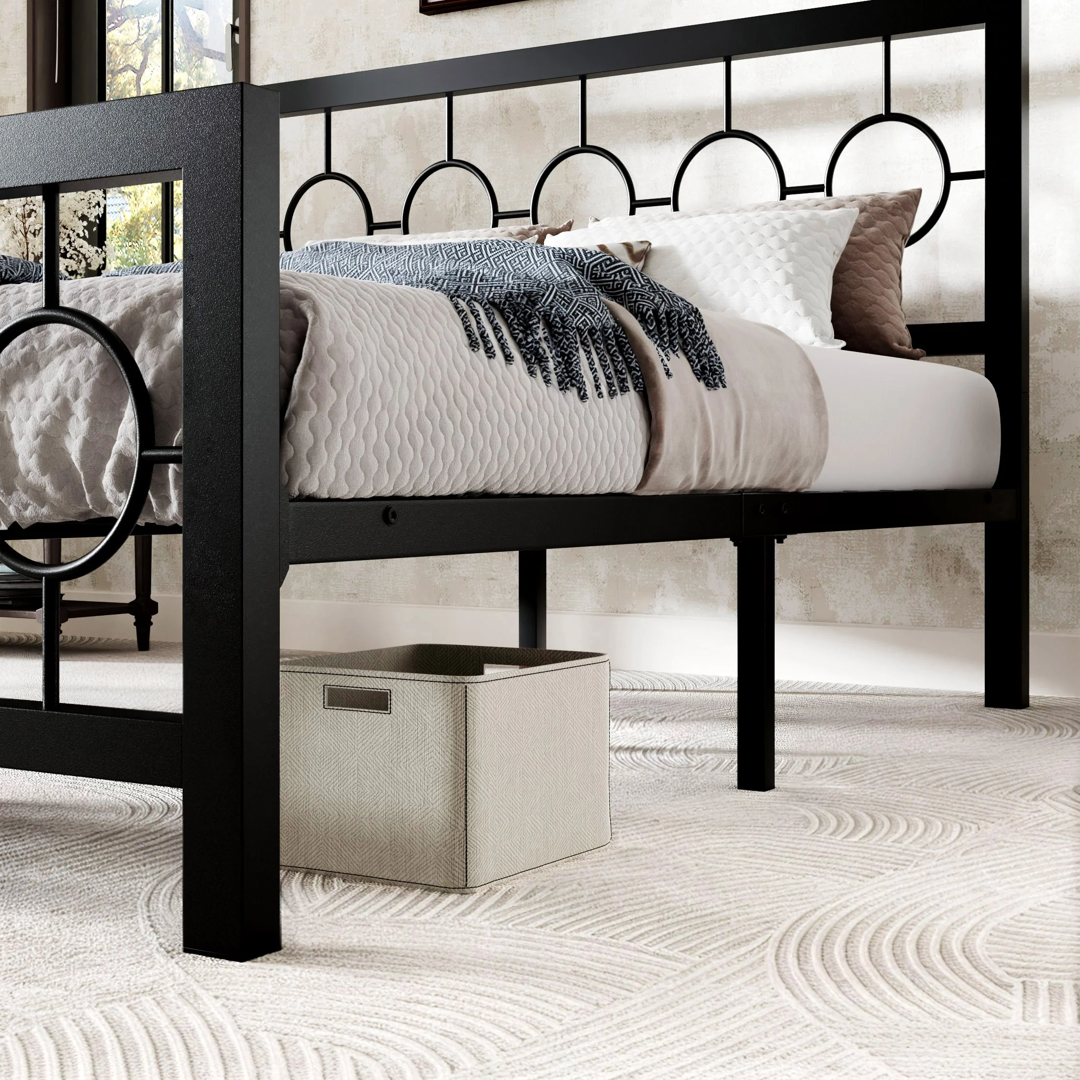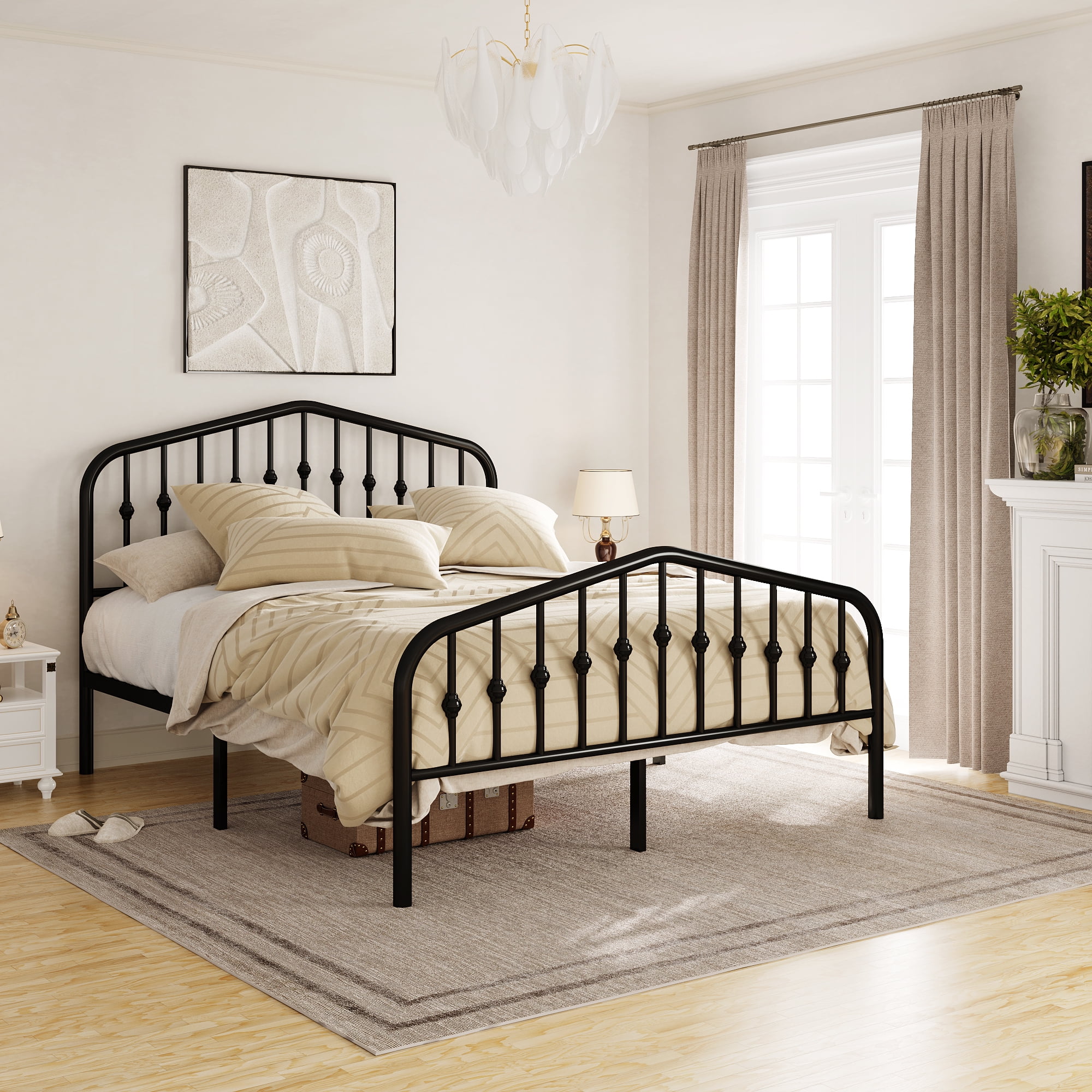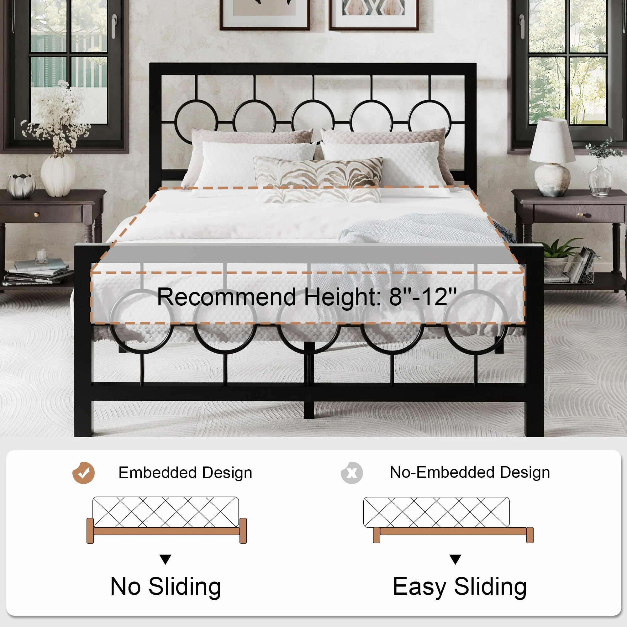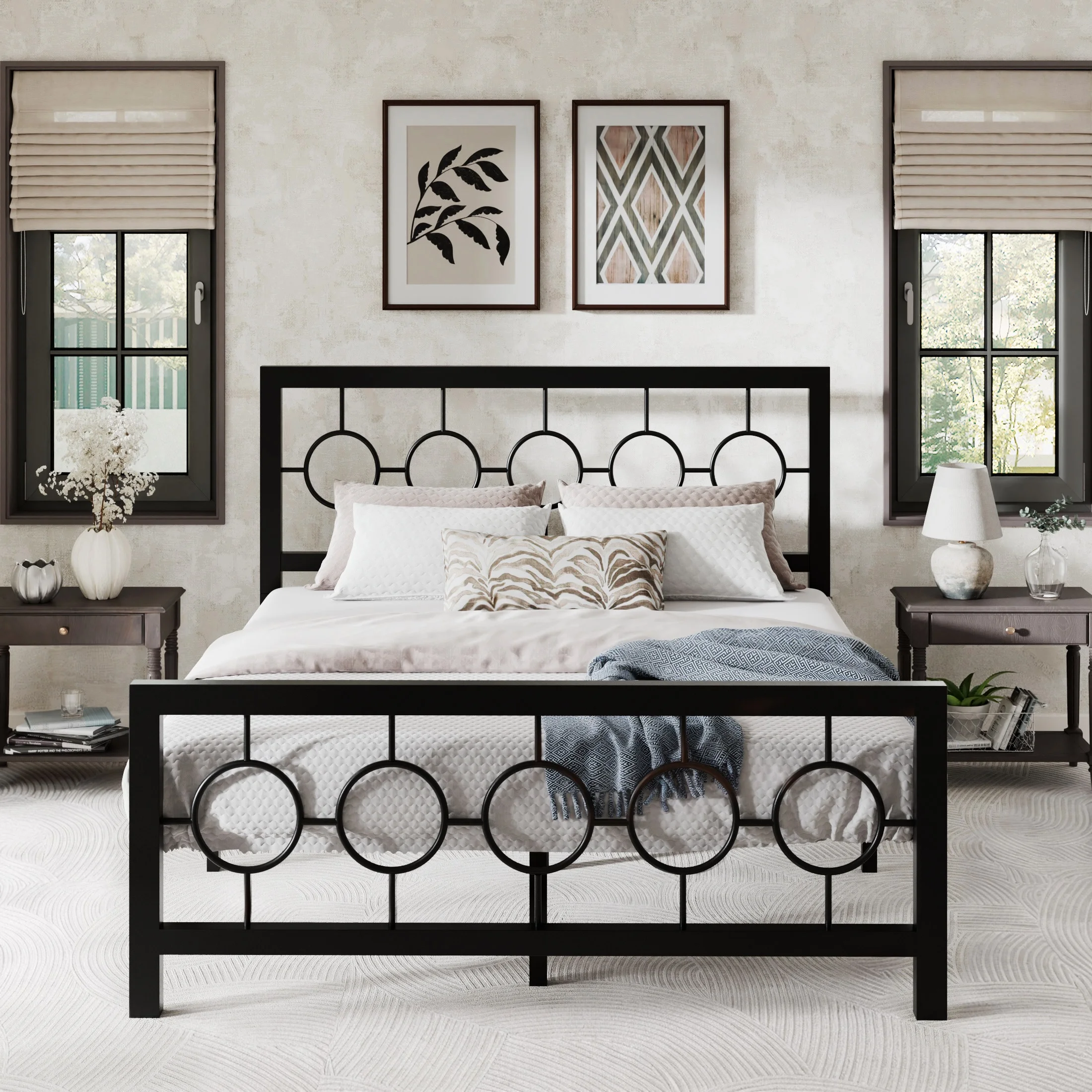 Amolife Black Queen Size Metal Platform Bed Frame with Circular Vintage Headboard & Footboard