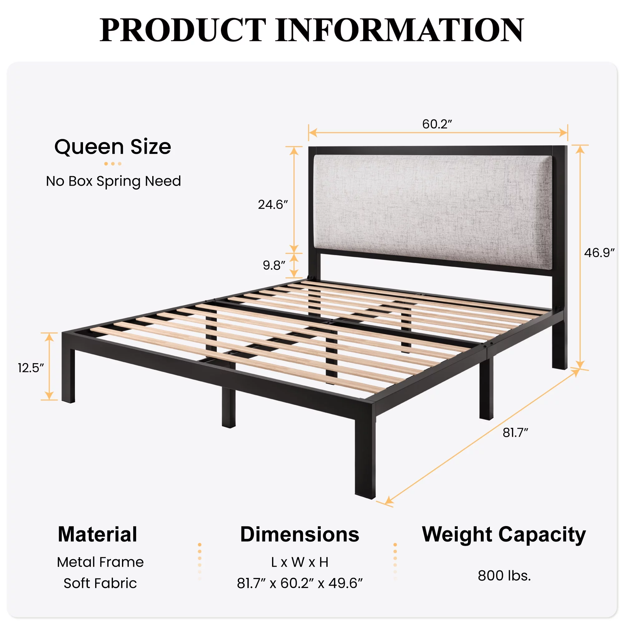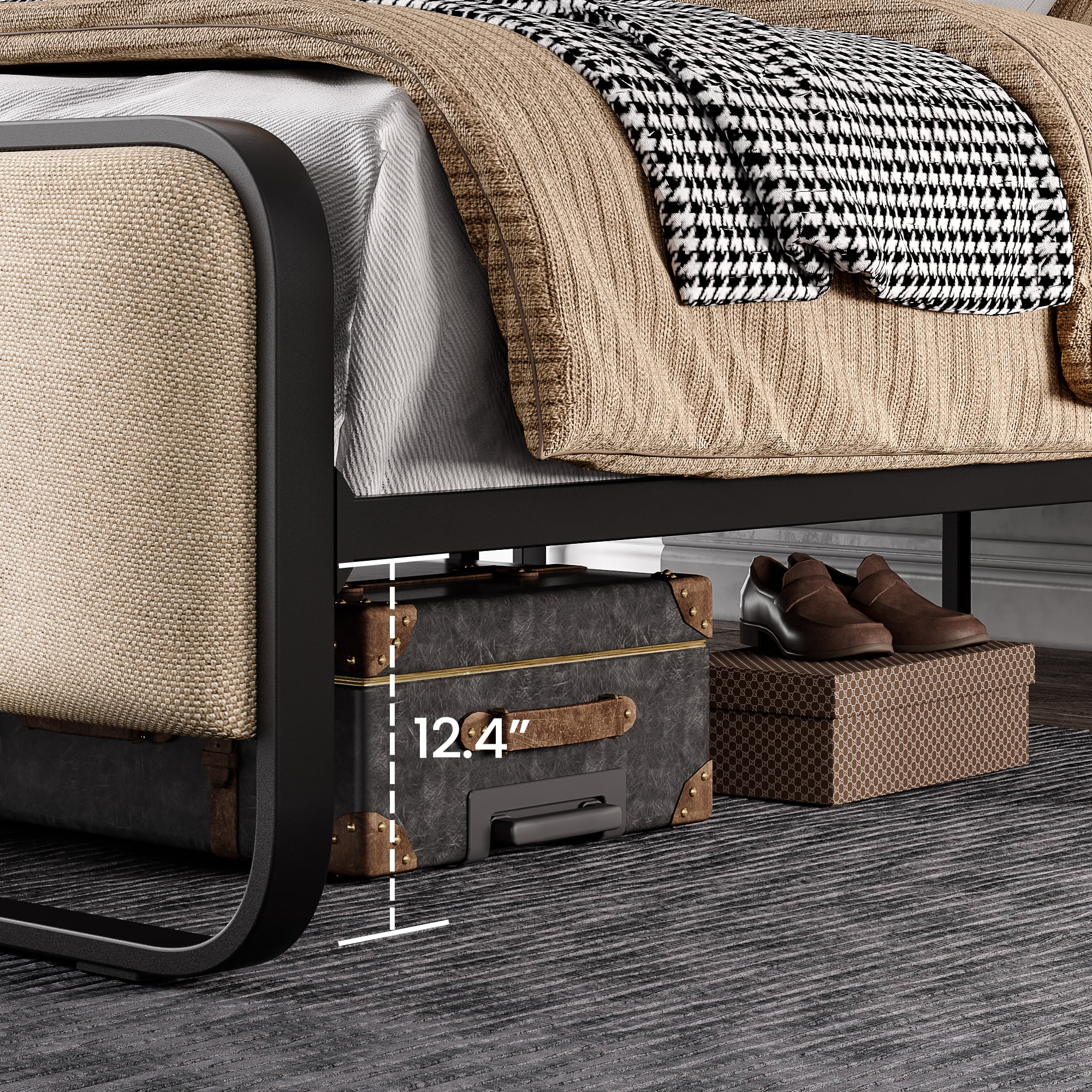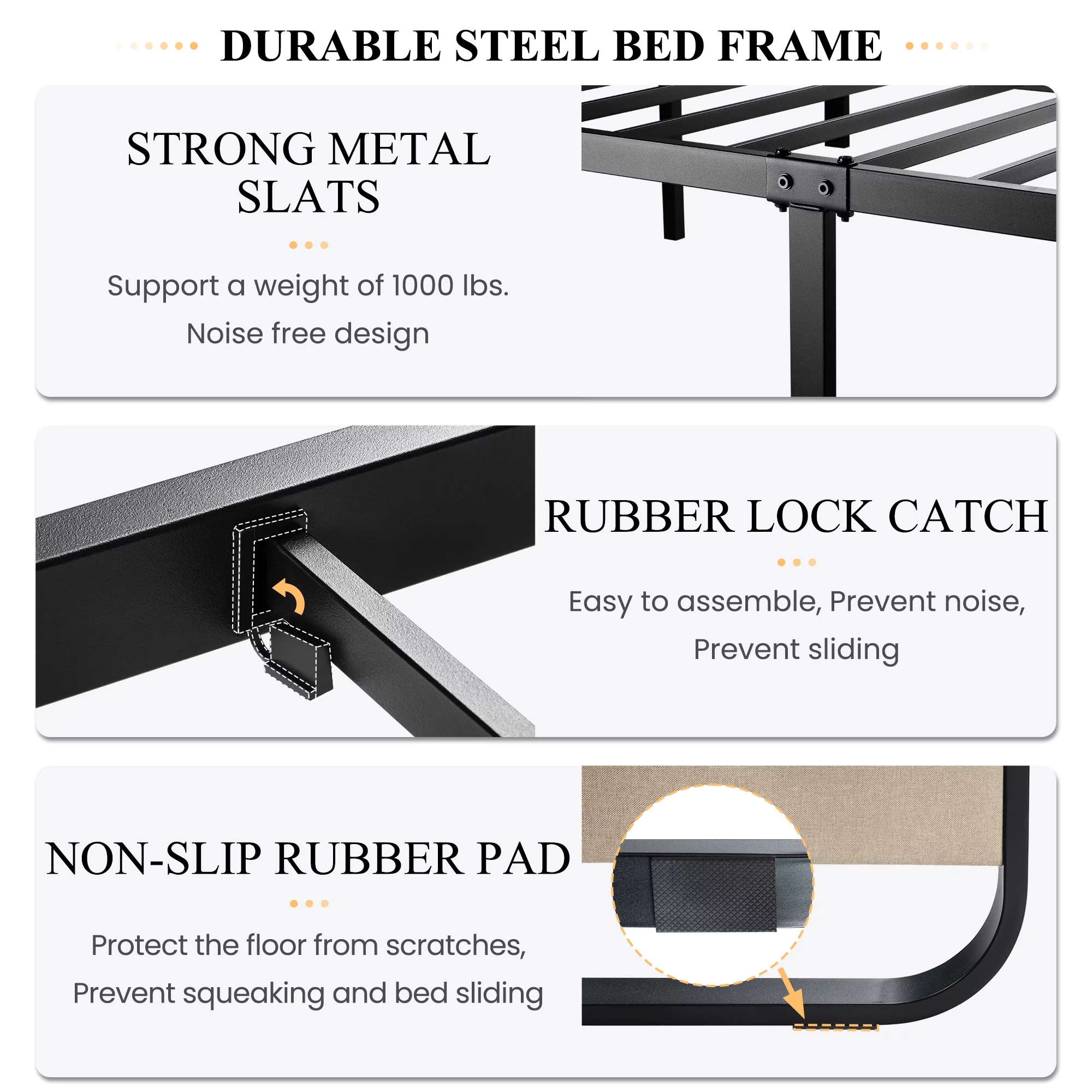 SHA CERLIN Beige Queen Size Metal Platform Bed Frame with Headboard & Underbed Storage, Adult