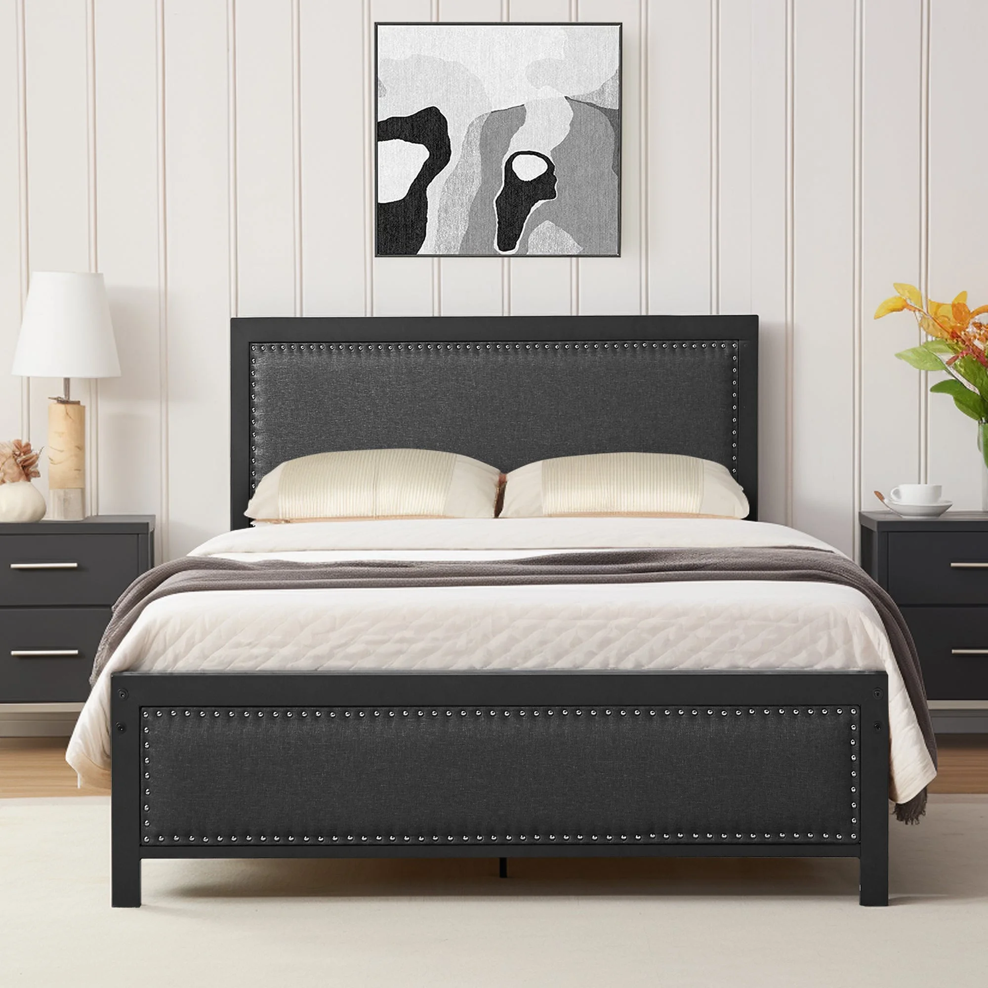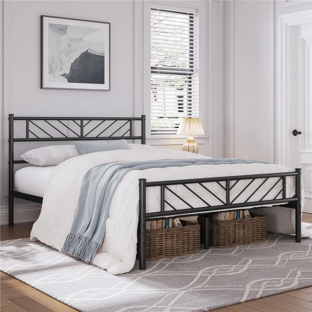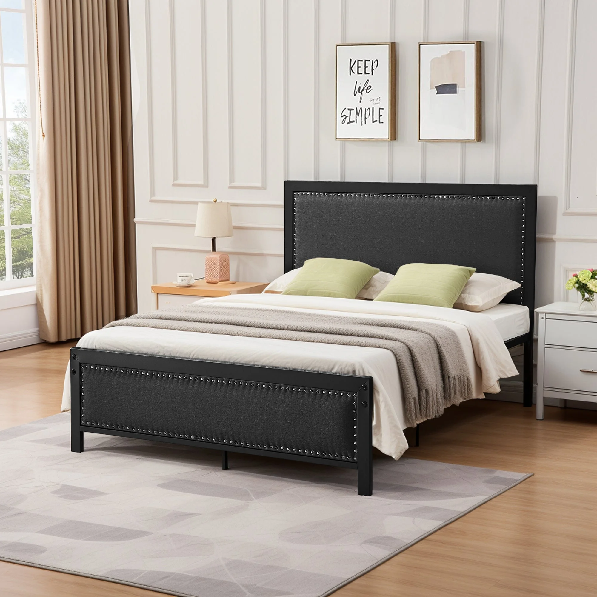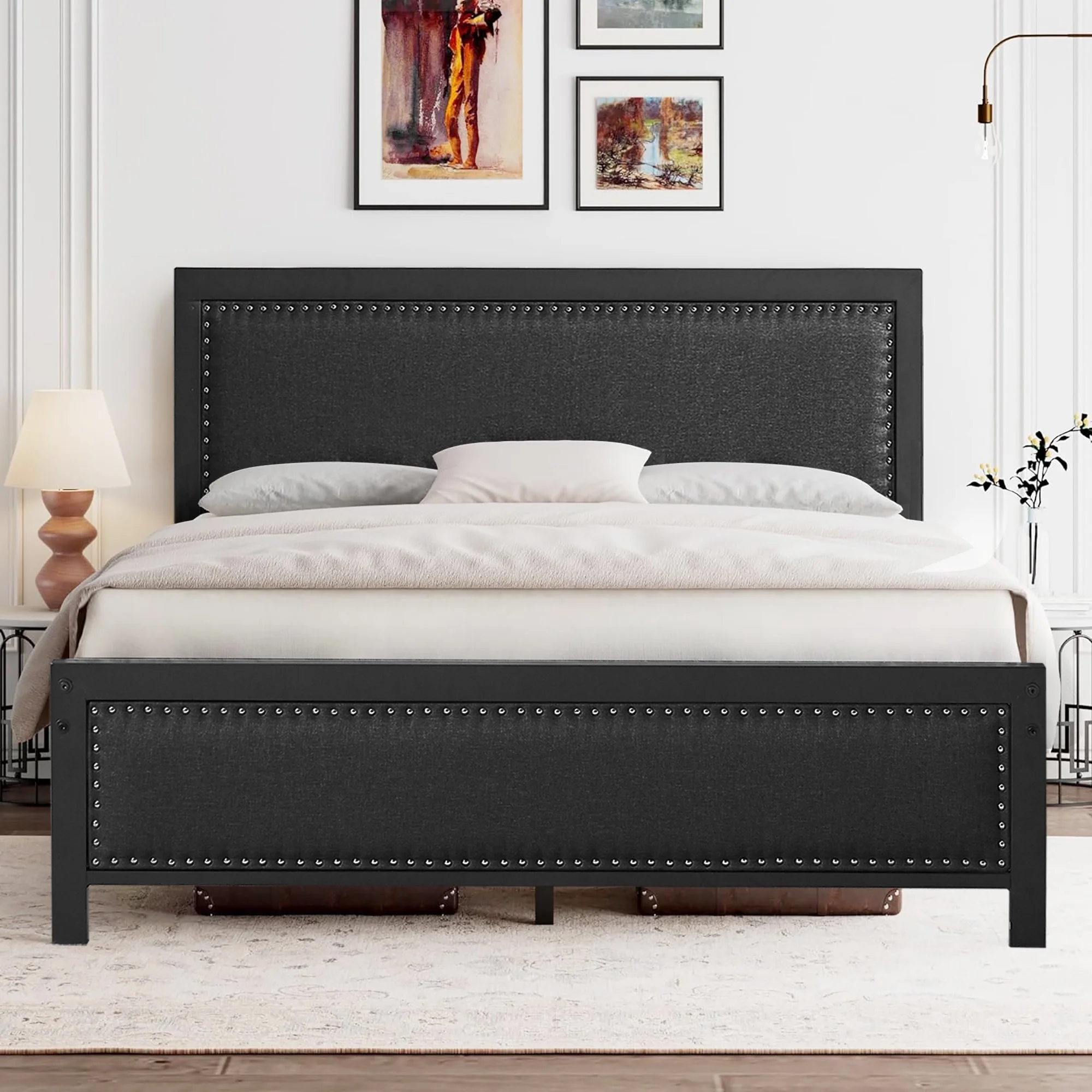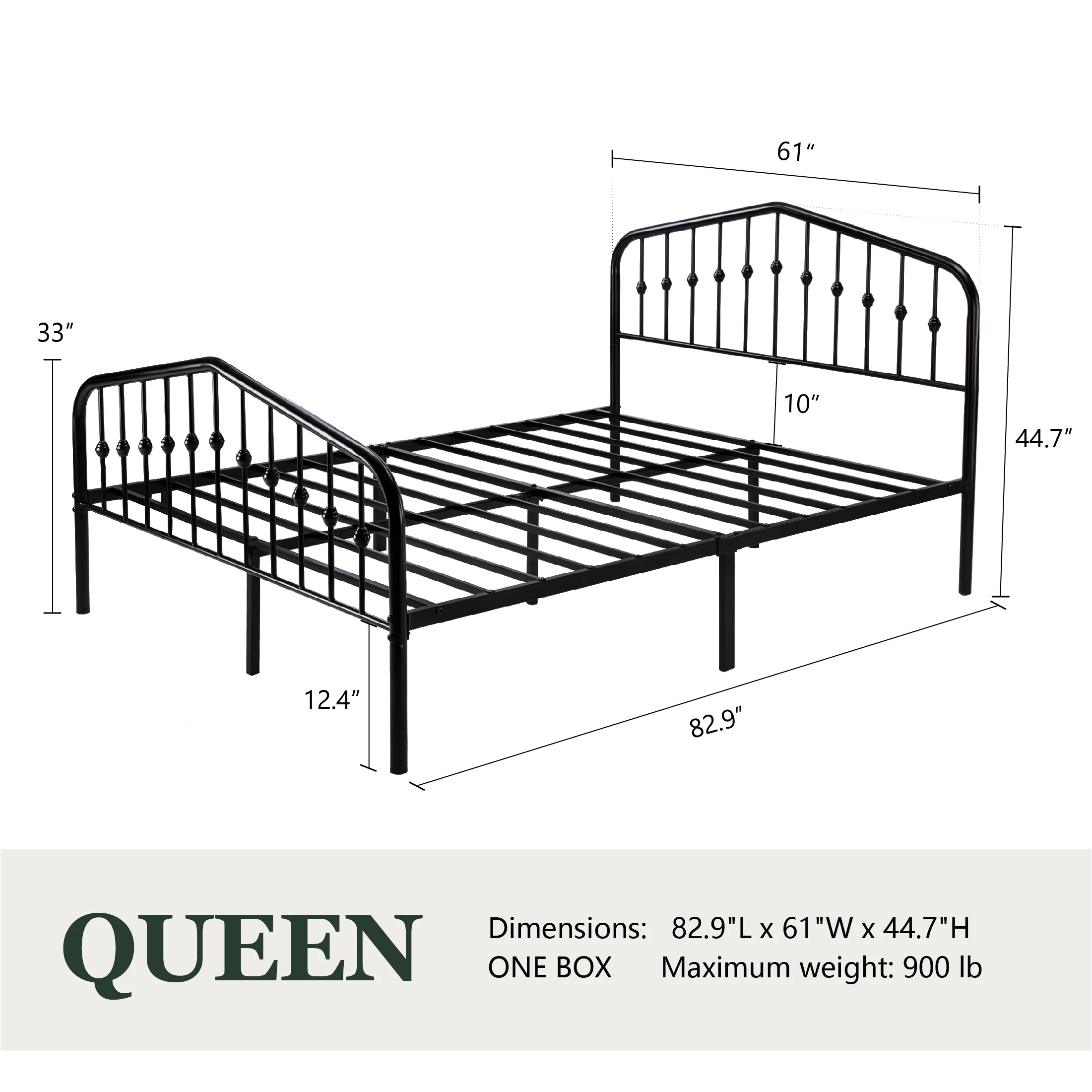 Amolife Queen Size Metal Platform Bed Frame with Vintage Headboard & Footboard, Black