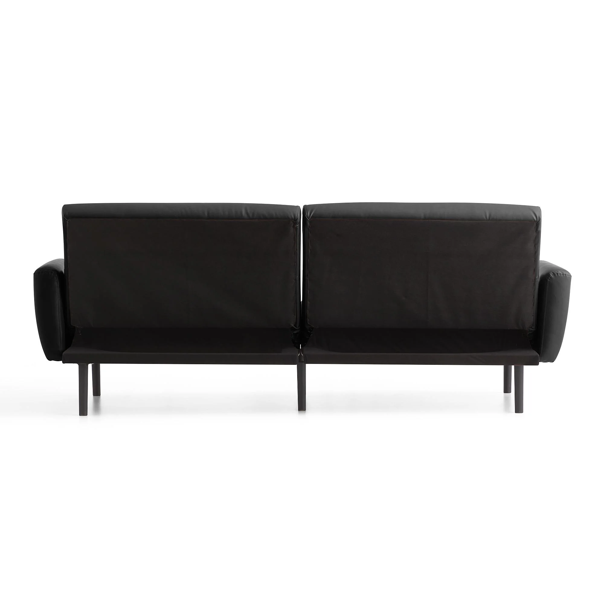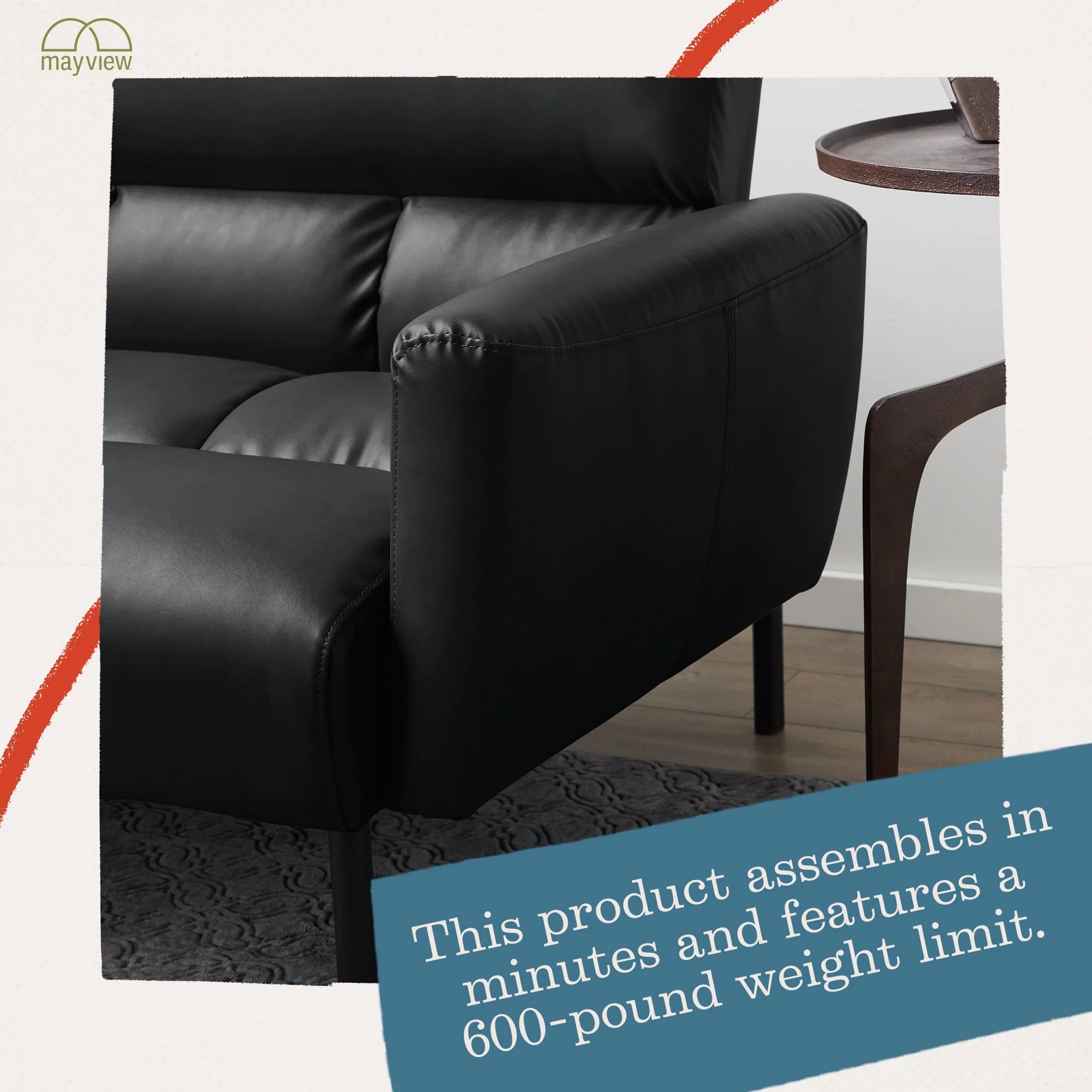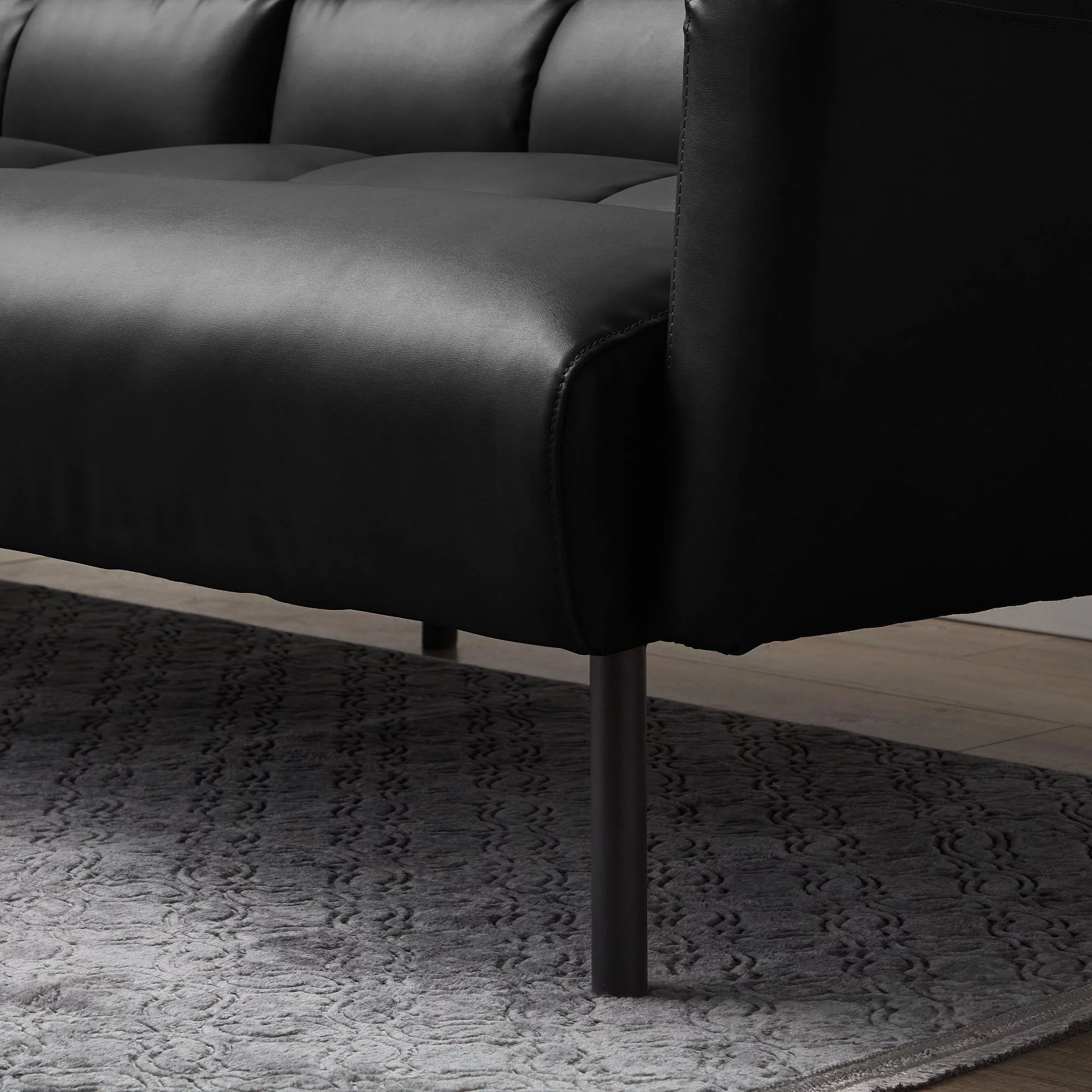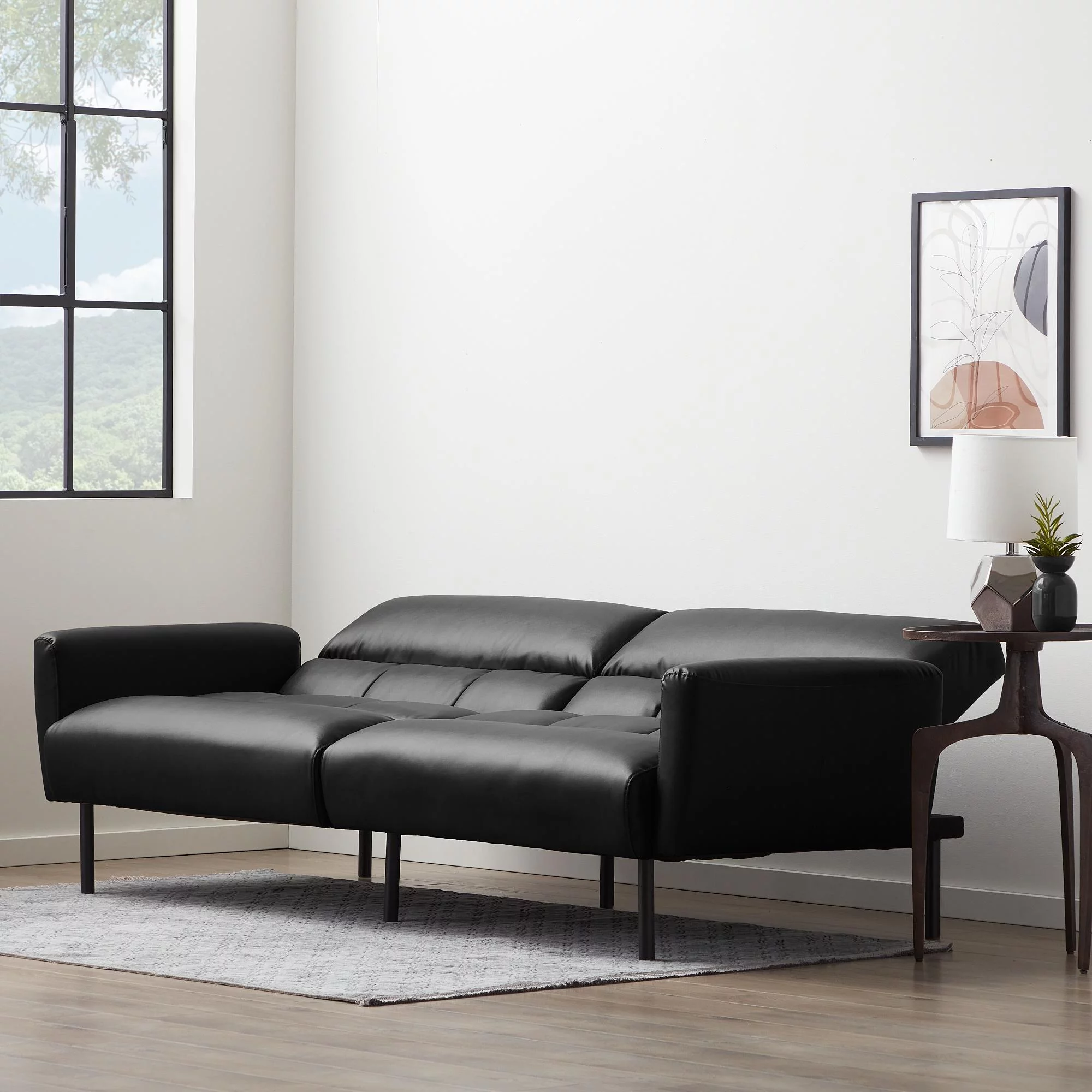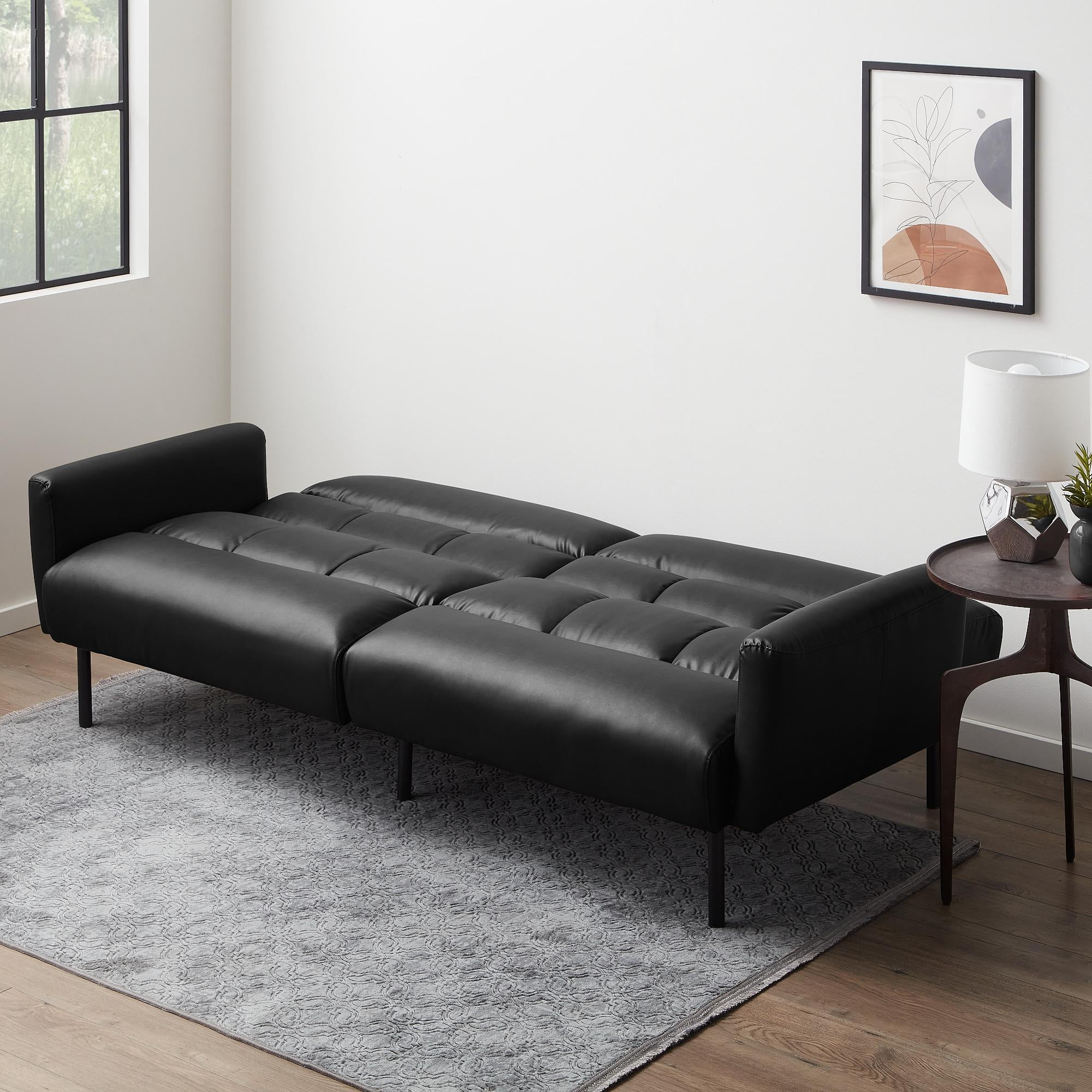 Mayview Sofa Bed with Box Tufting and Removable Arms, Black Faux Leather