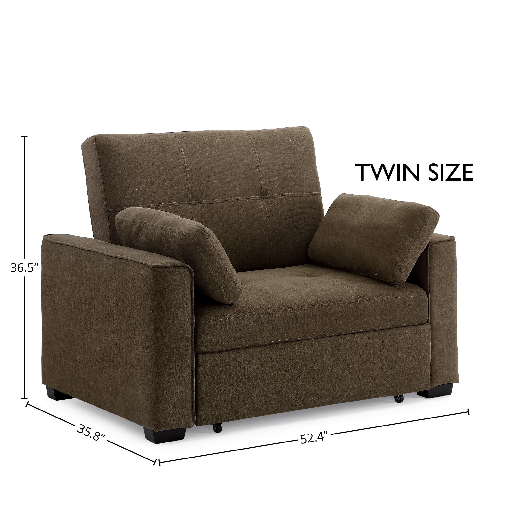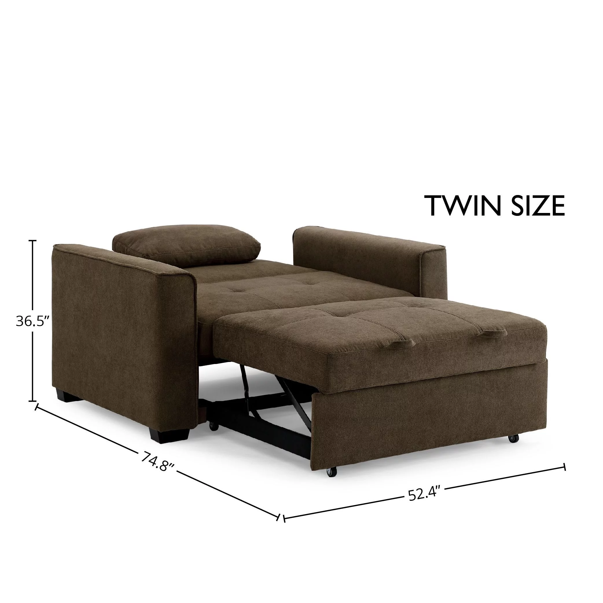 Nantucket Pull-Out Chenille Sleeper Sofa with Accent Pillows, Twin Size, Cappuccino
