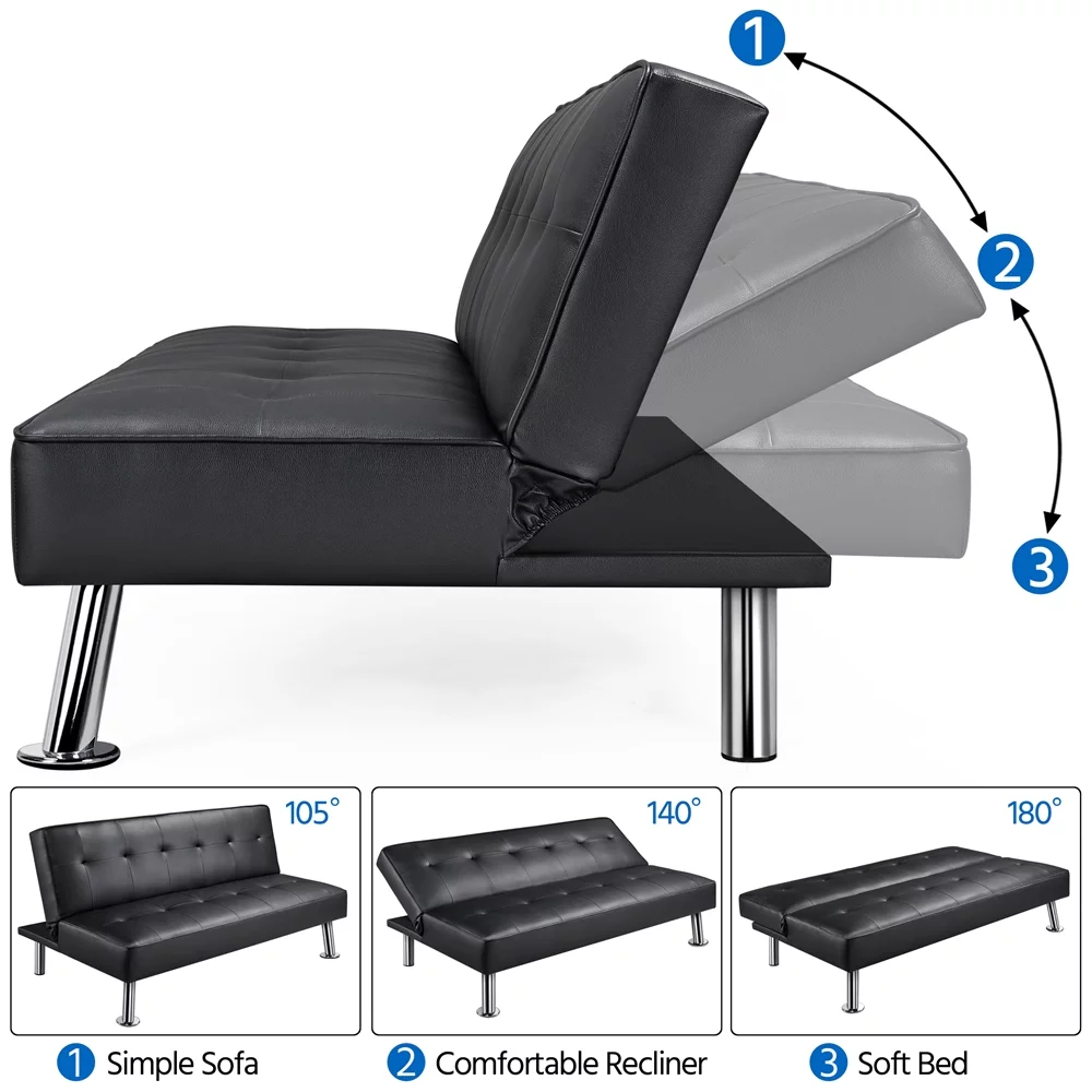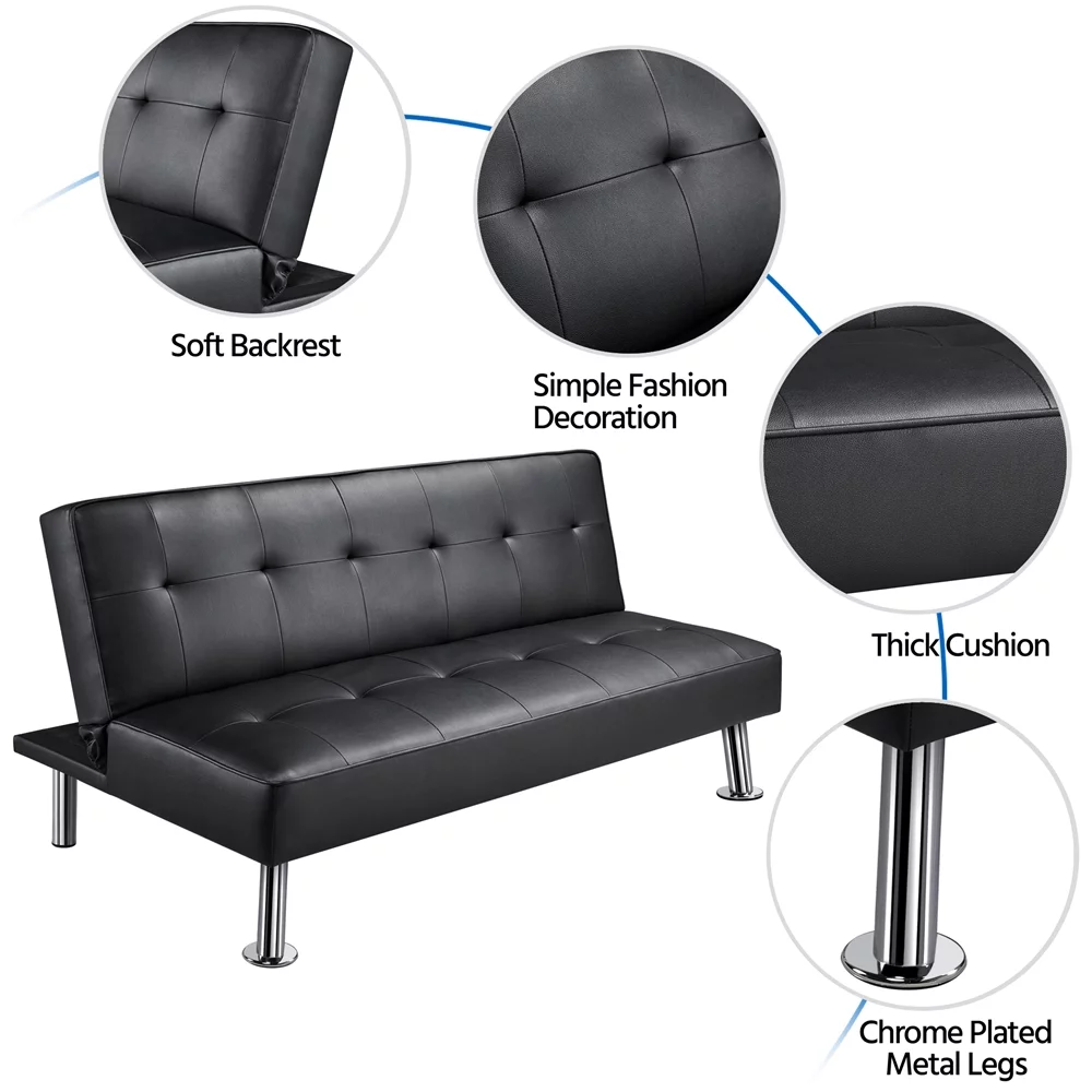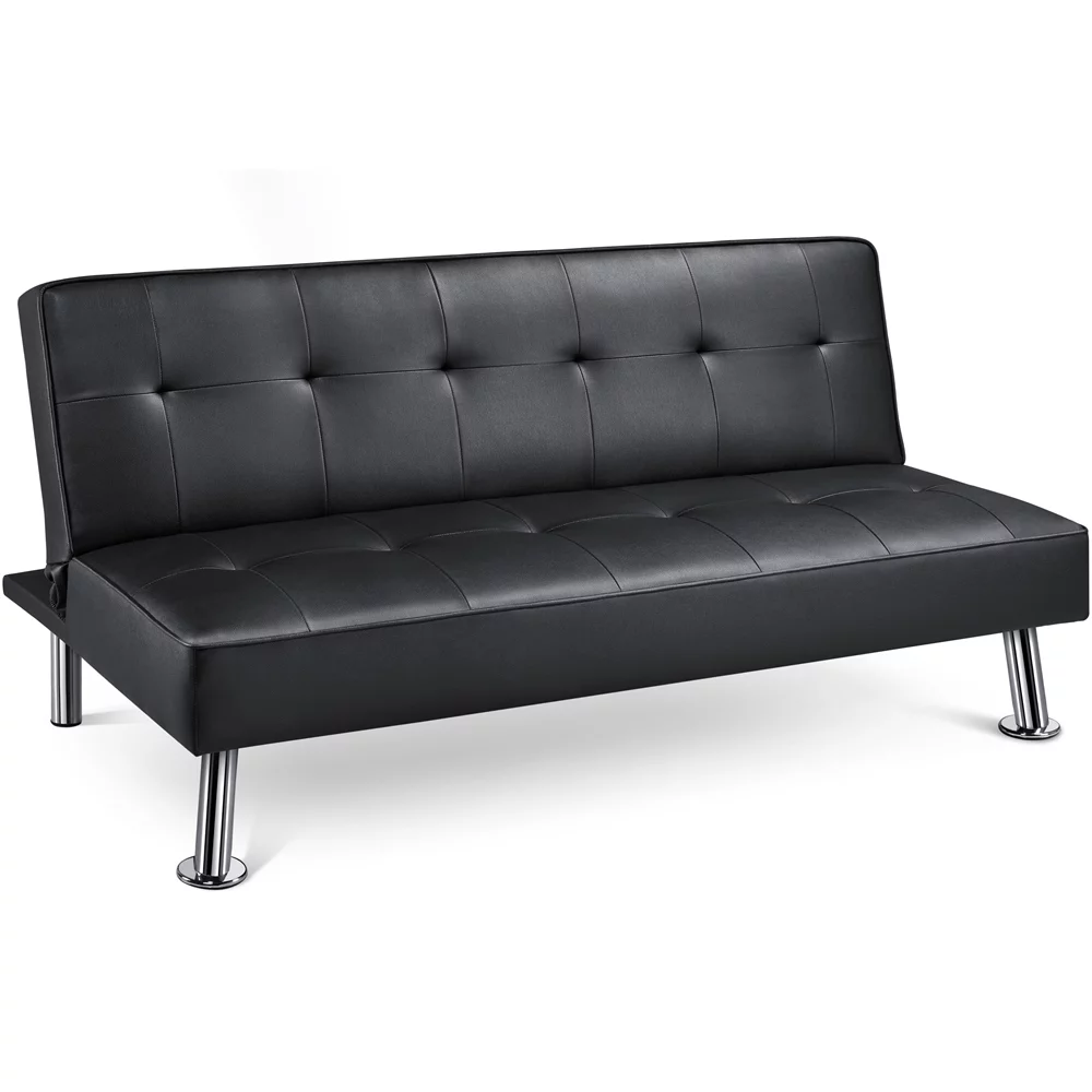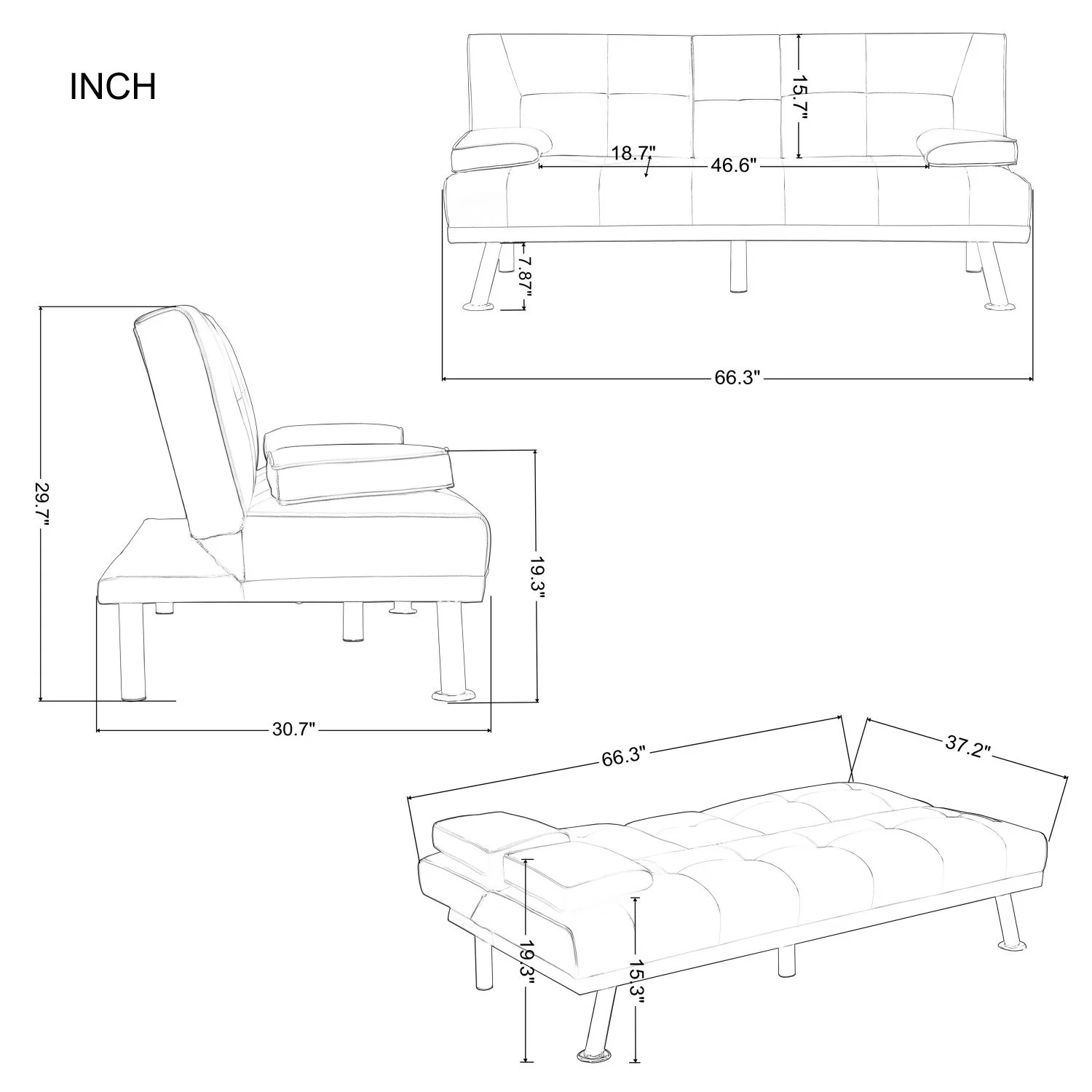 BSHTI 66.3 Ihch Adult Futon Sofa Bed,Twin Futon Sleeper Tufted Back Convertible Sofa with 2 Cup Holders