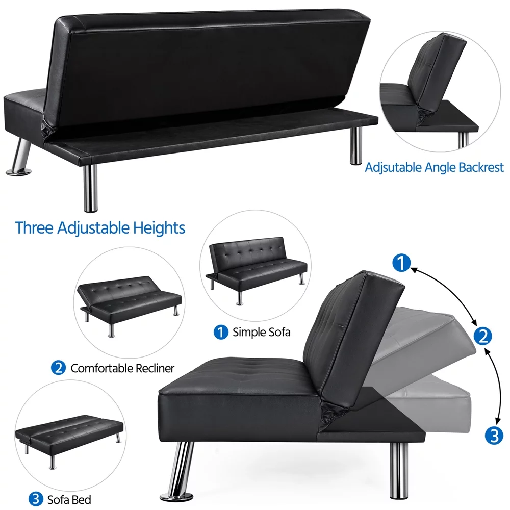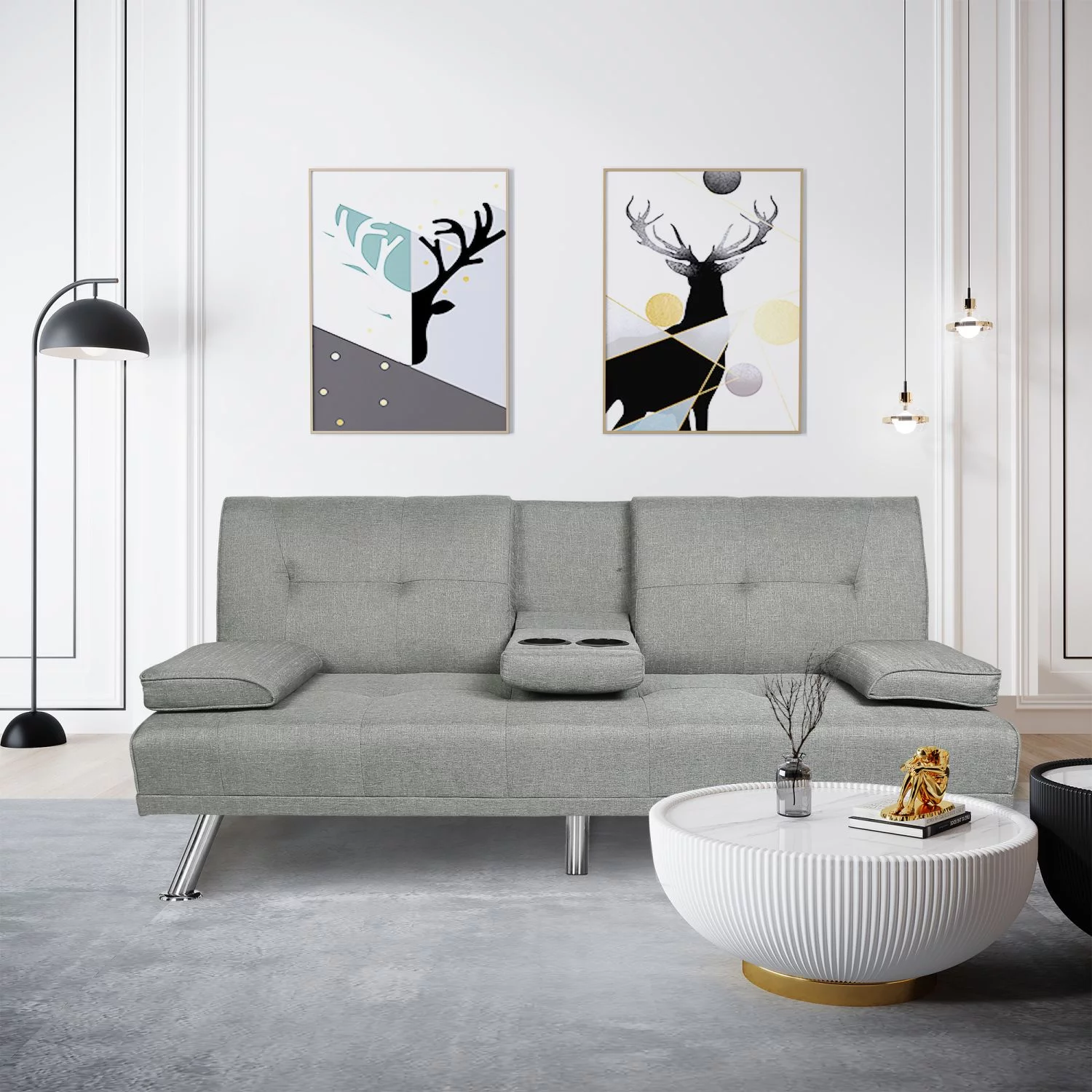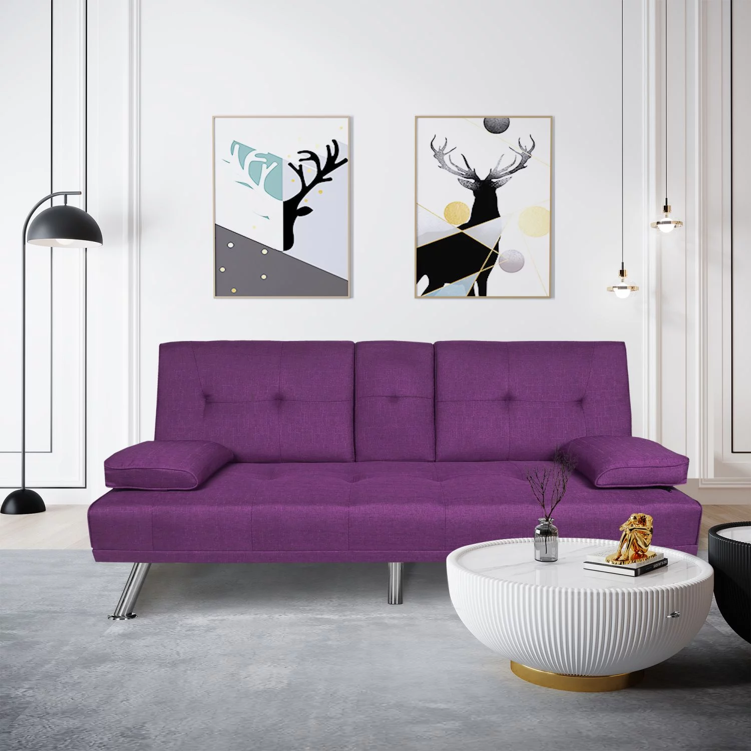 BSHTI 66.3 Ihch Adult Futon Sofa Bed,Twin Futon Sleeper Tufted Back Convertible Sofa with 2 Cup Holders